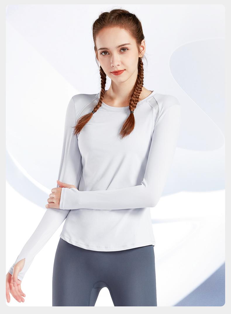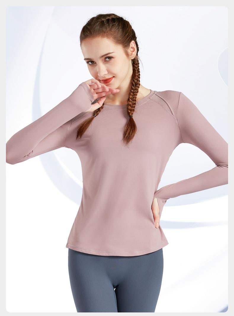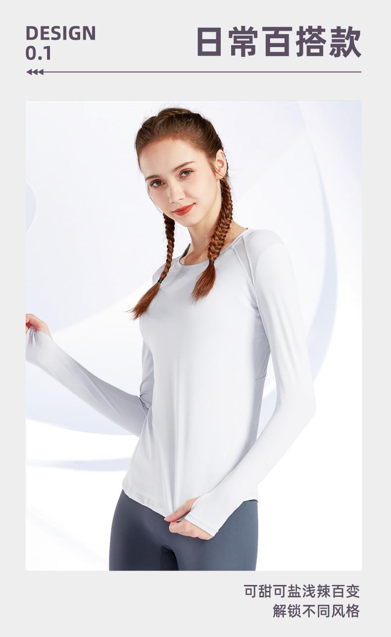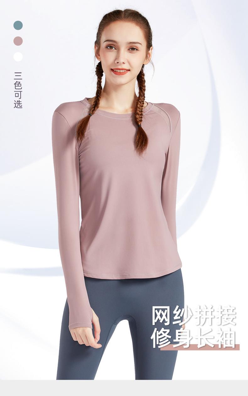 现货运动上衣女显瘦长袖t恤健身服大码瑜伽服春秋跑步速干健身衣
