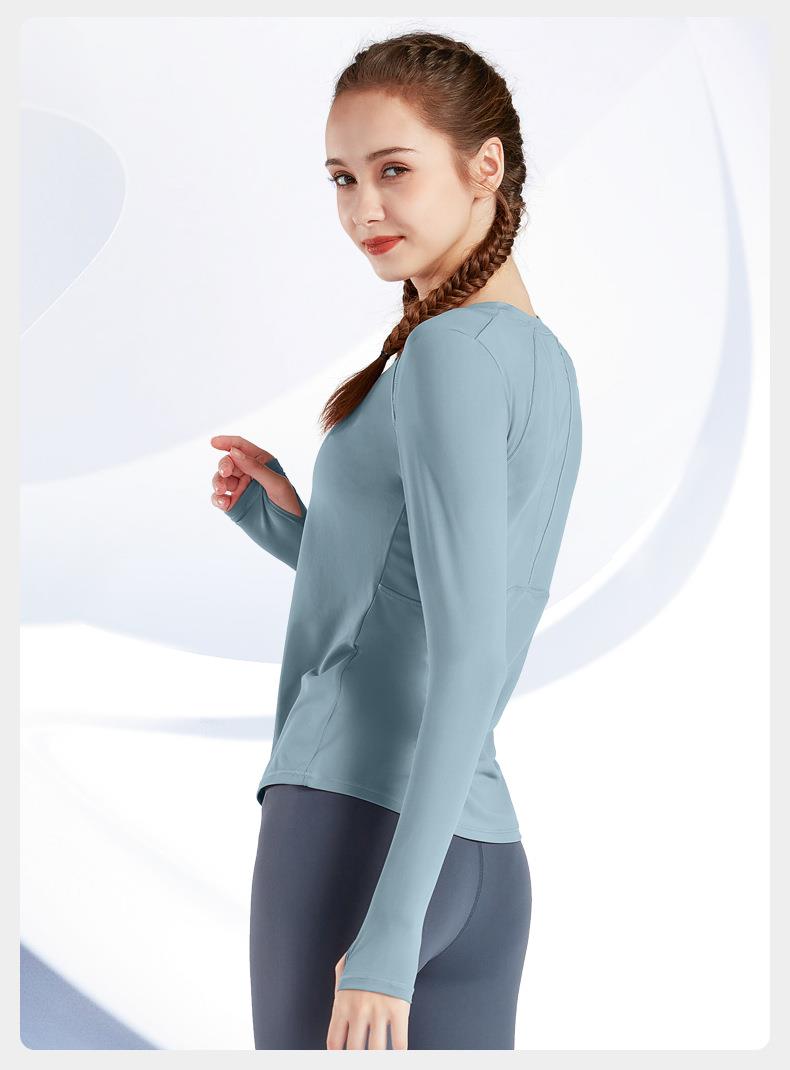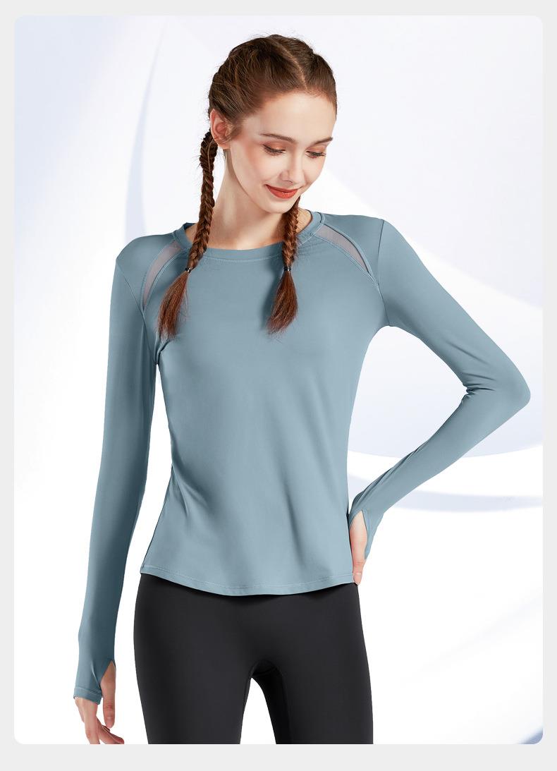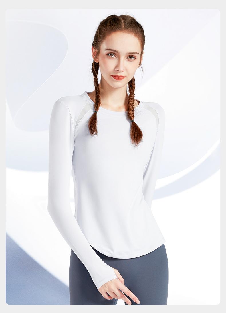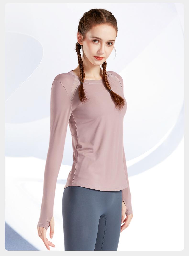 现货运动上衣女显瘦长袖t恤健身服大码瑜伽服春秋跑步速干健身衣