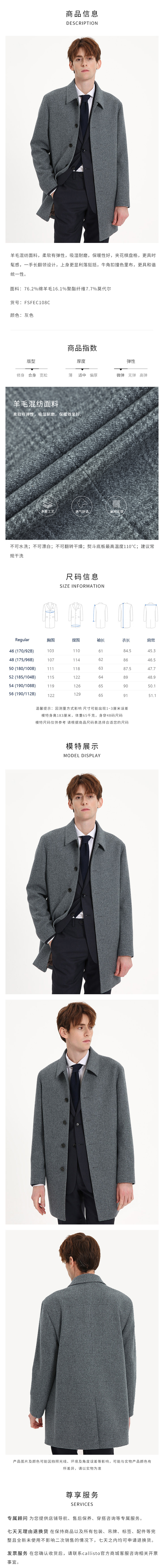 callisto灰色绵羊毛棋盘格翻领大衣 FSFEC108C GY