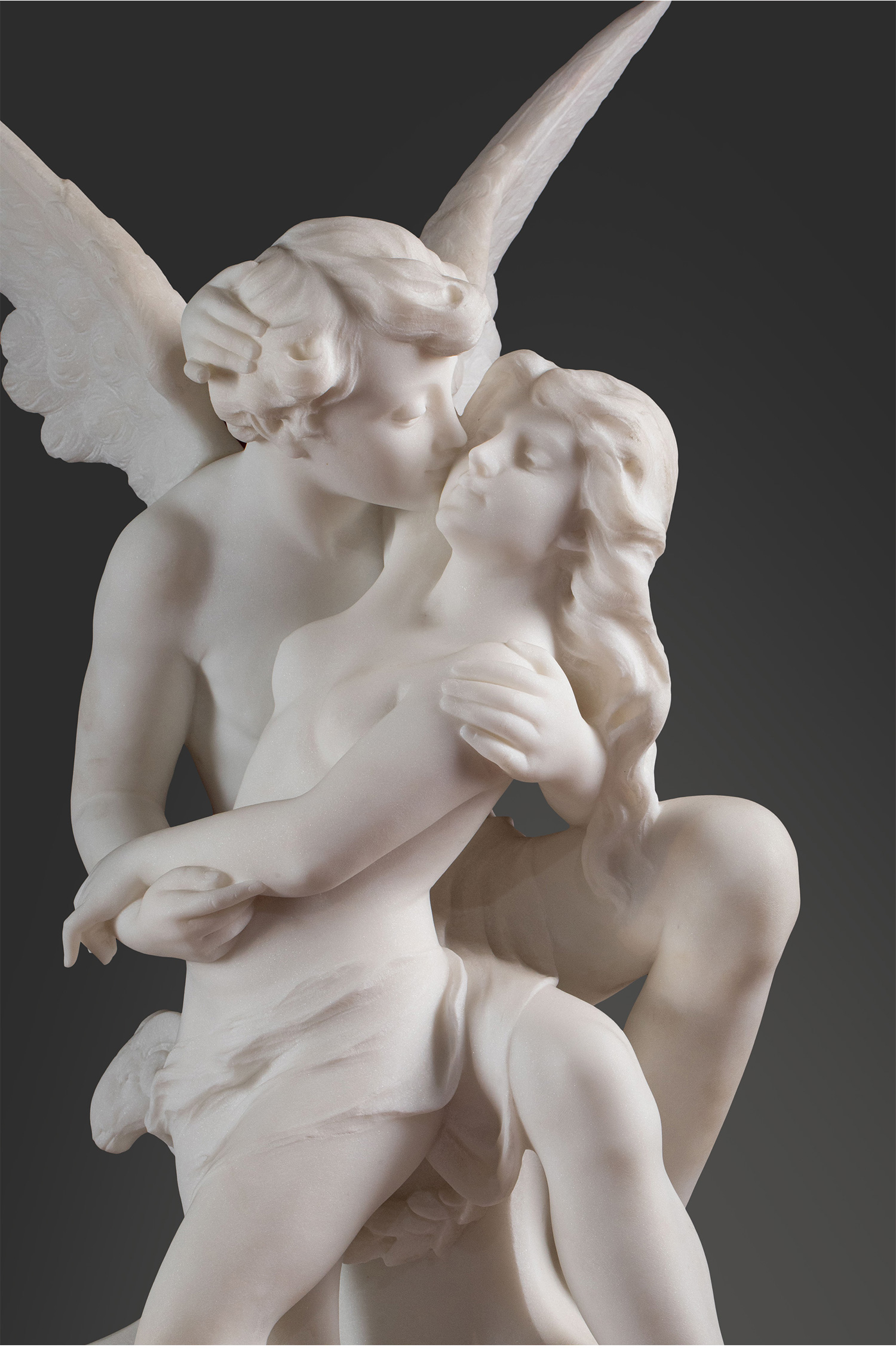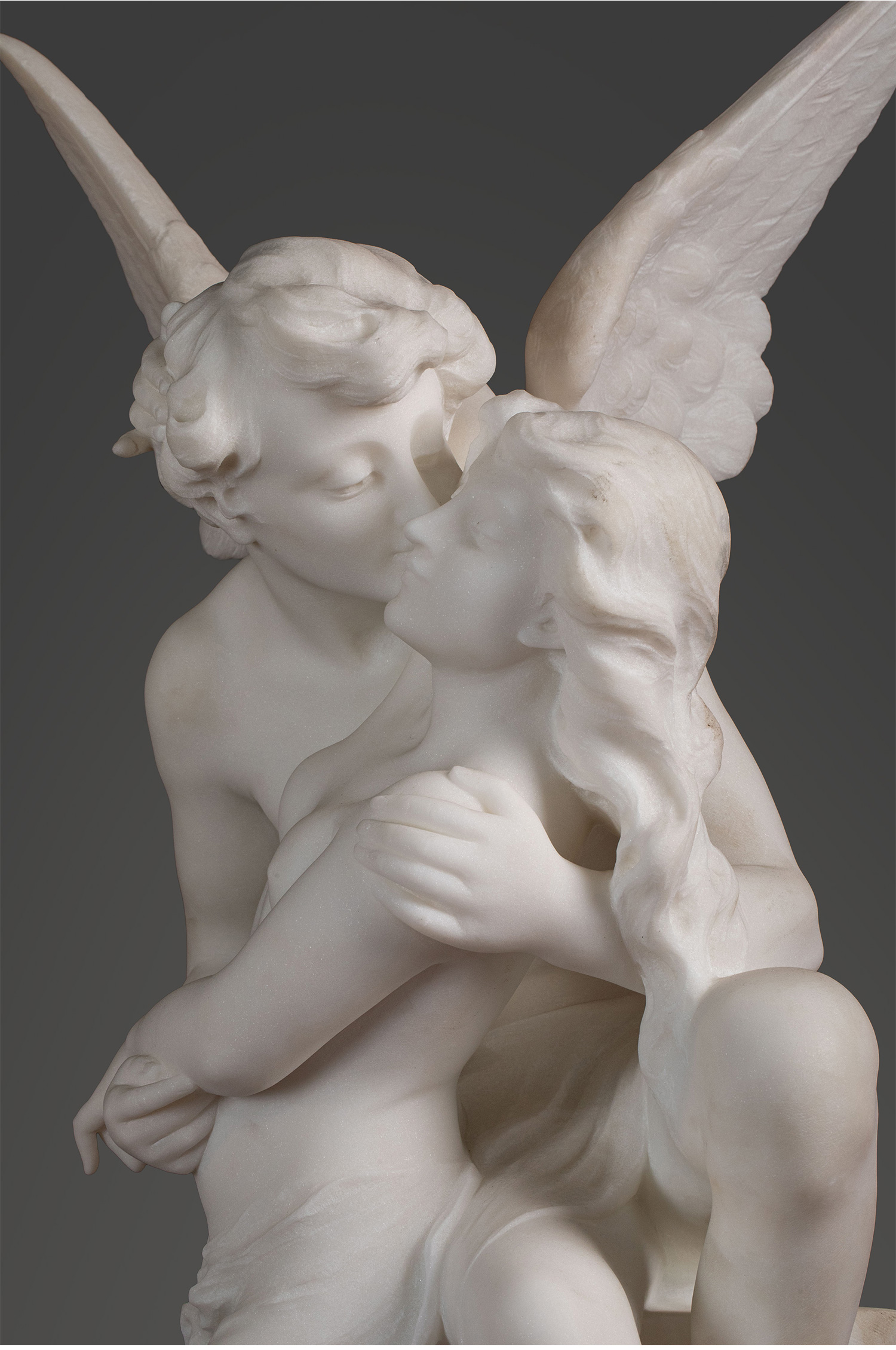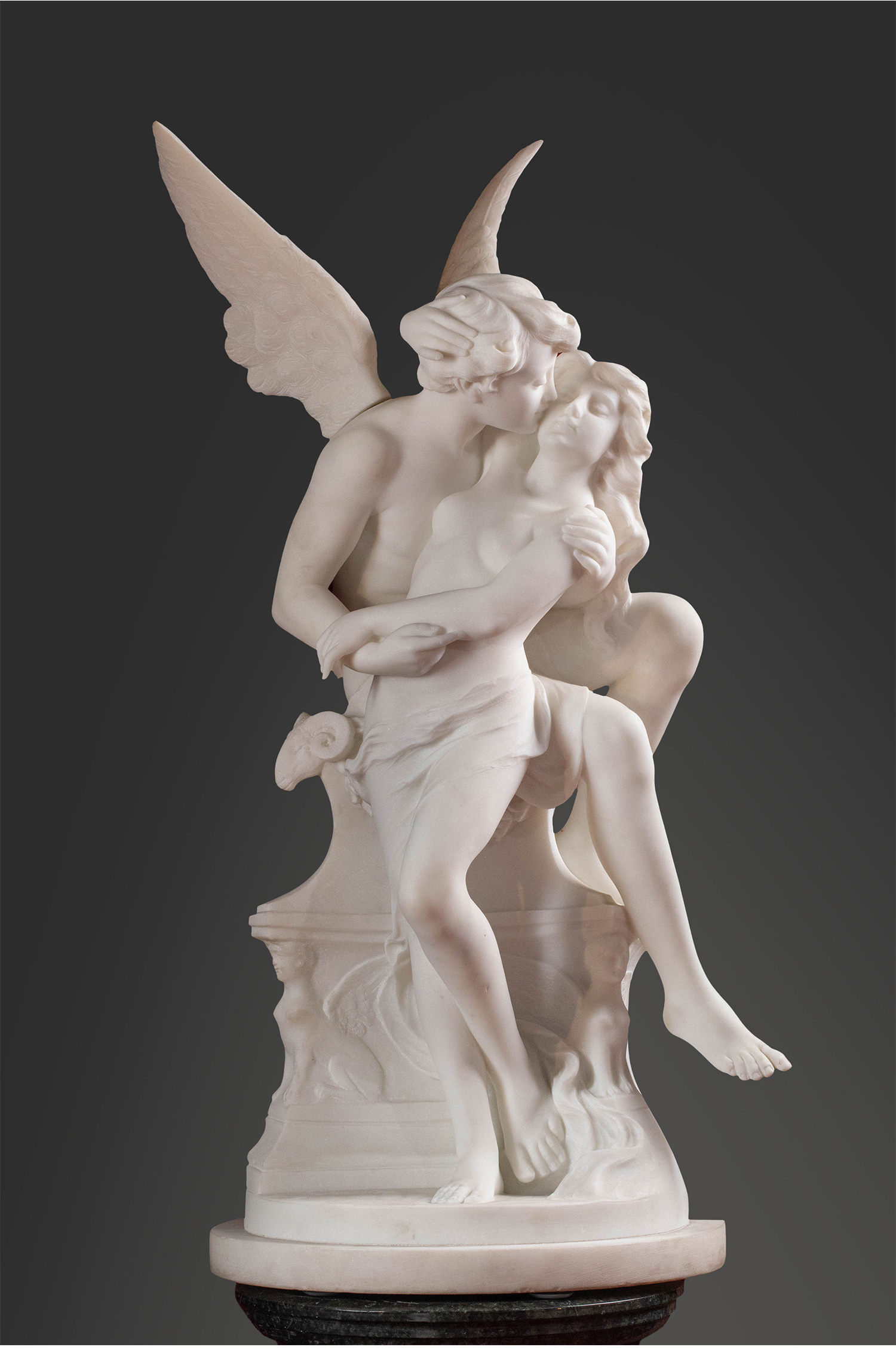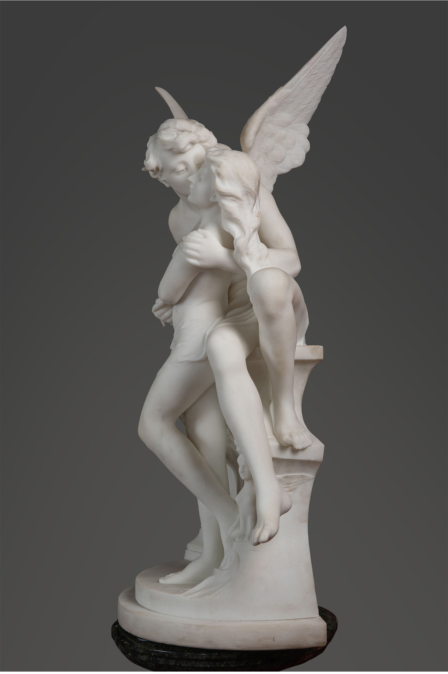 19世纪下半叶意大利雕塑家Adolfo Cipriani签名创作古典神话主题大理石雕塑作品《丘比特与普绪克》