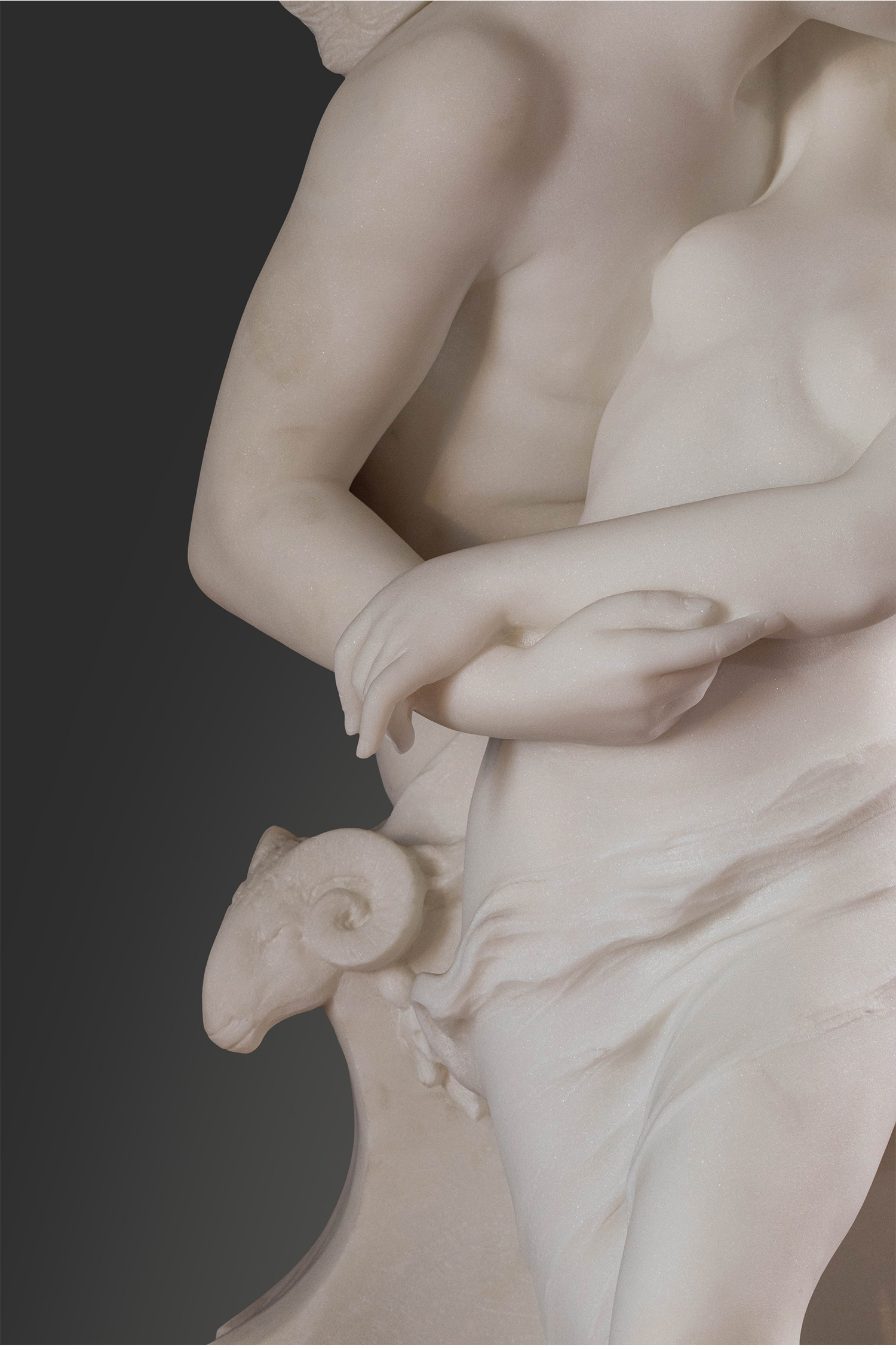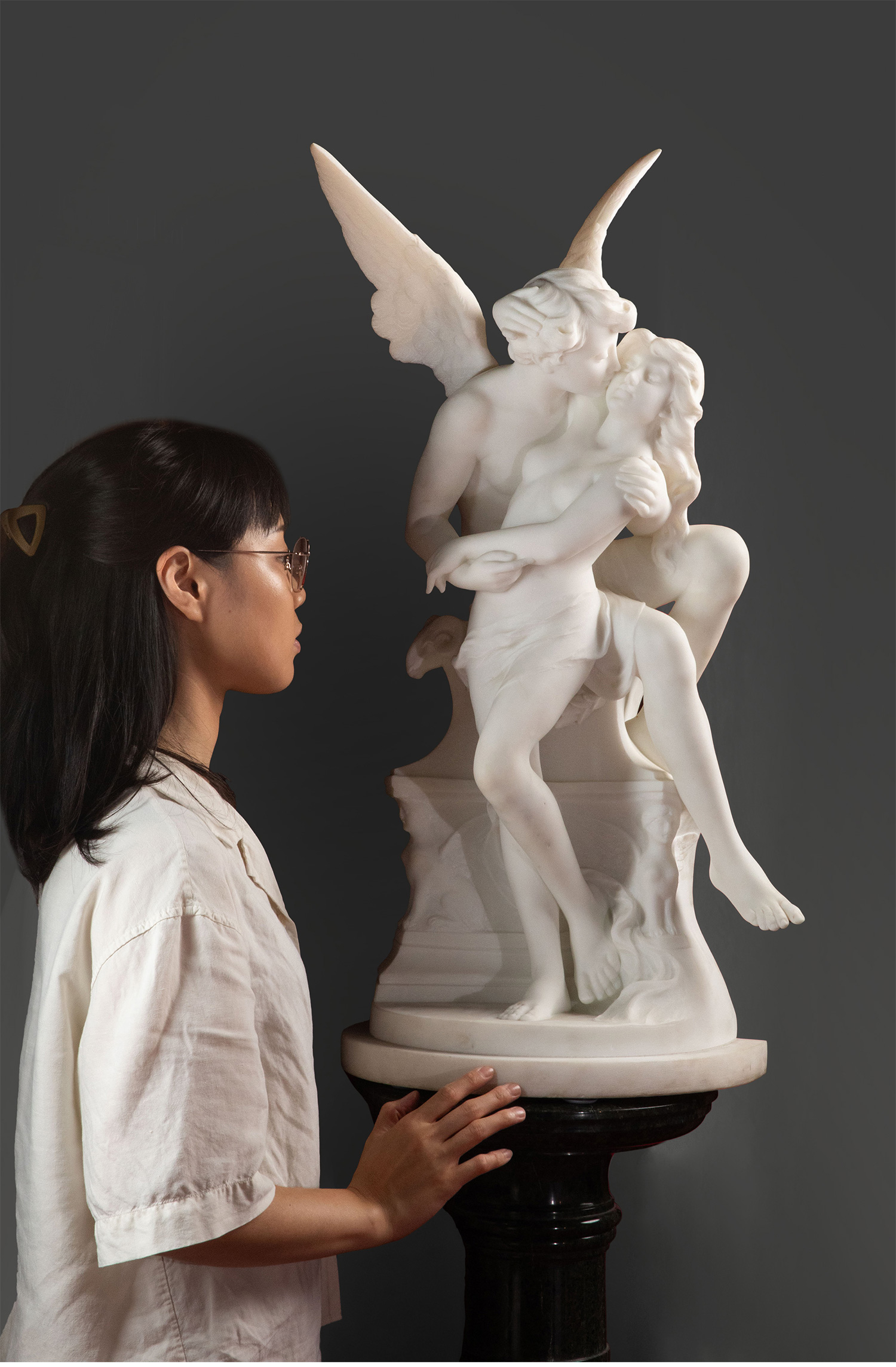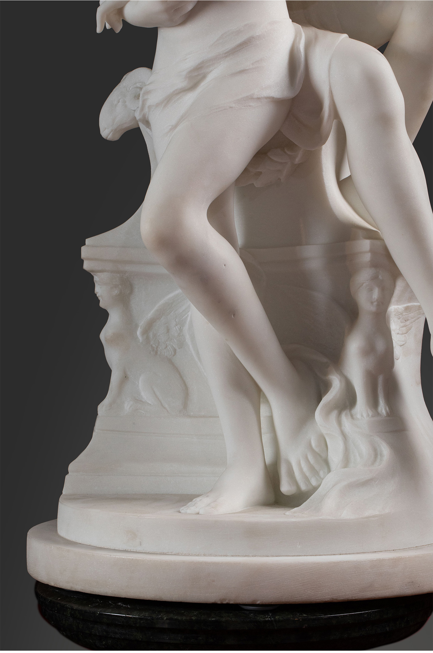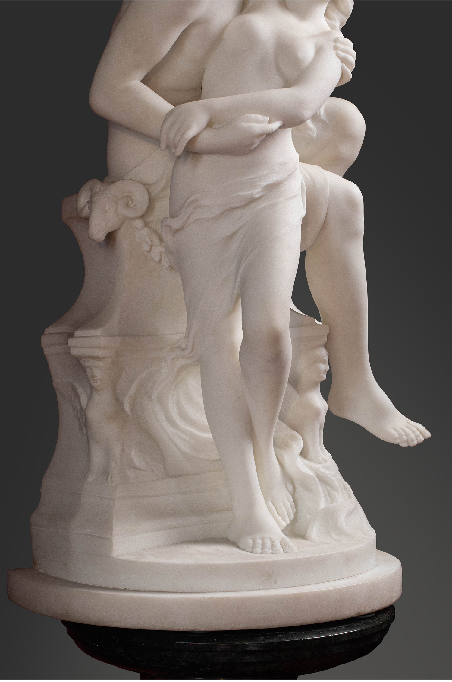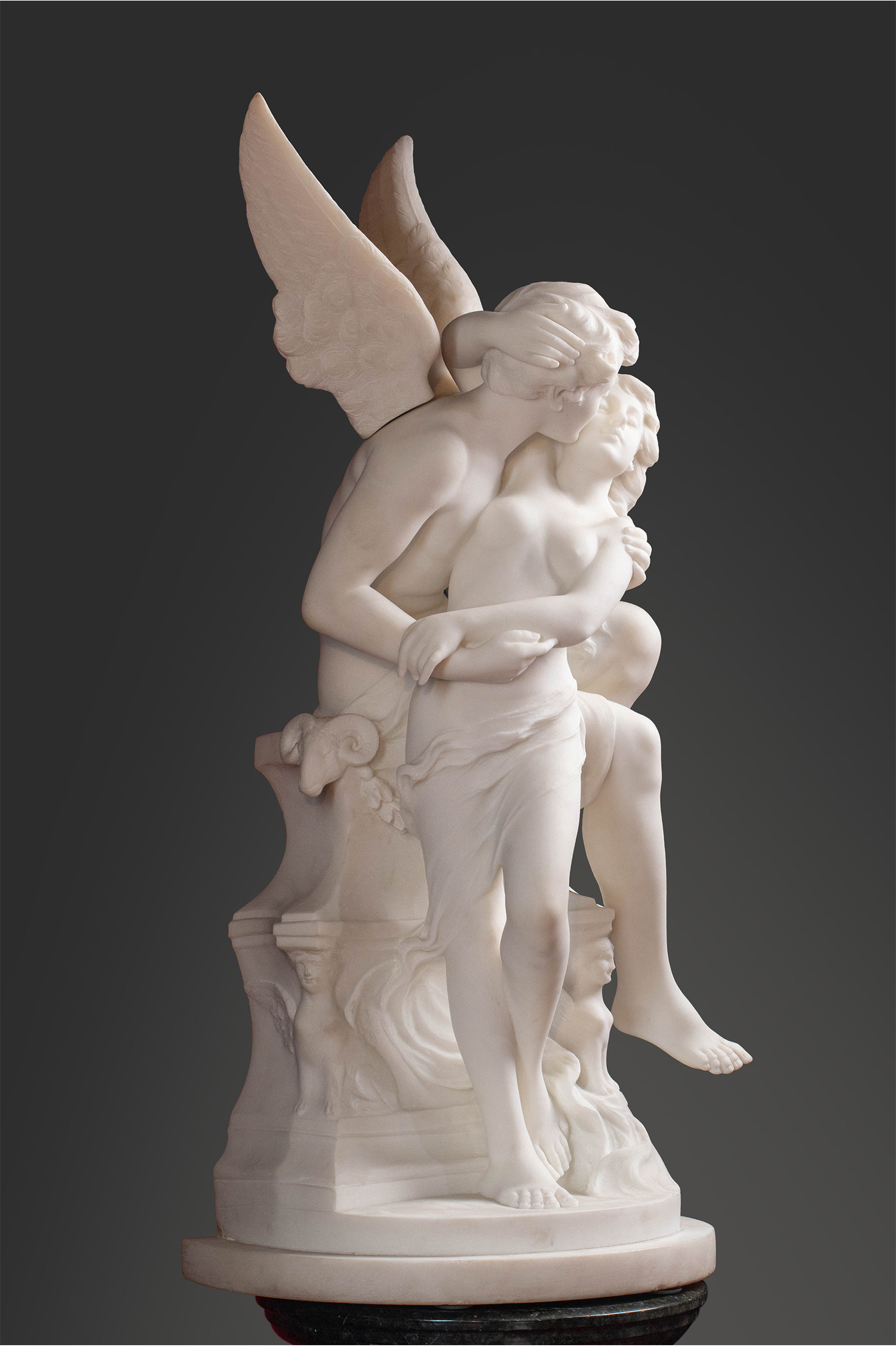 19世纪下半叶意大利雕塑家Adolfo Cipriani签名创作古典神话主题大理石雕塑作品《丘比特与普绪克》