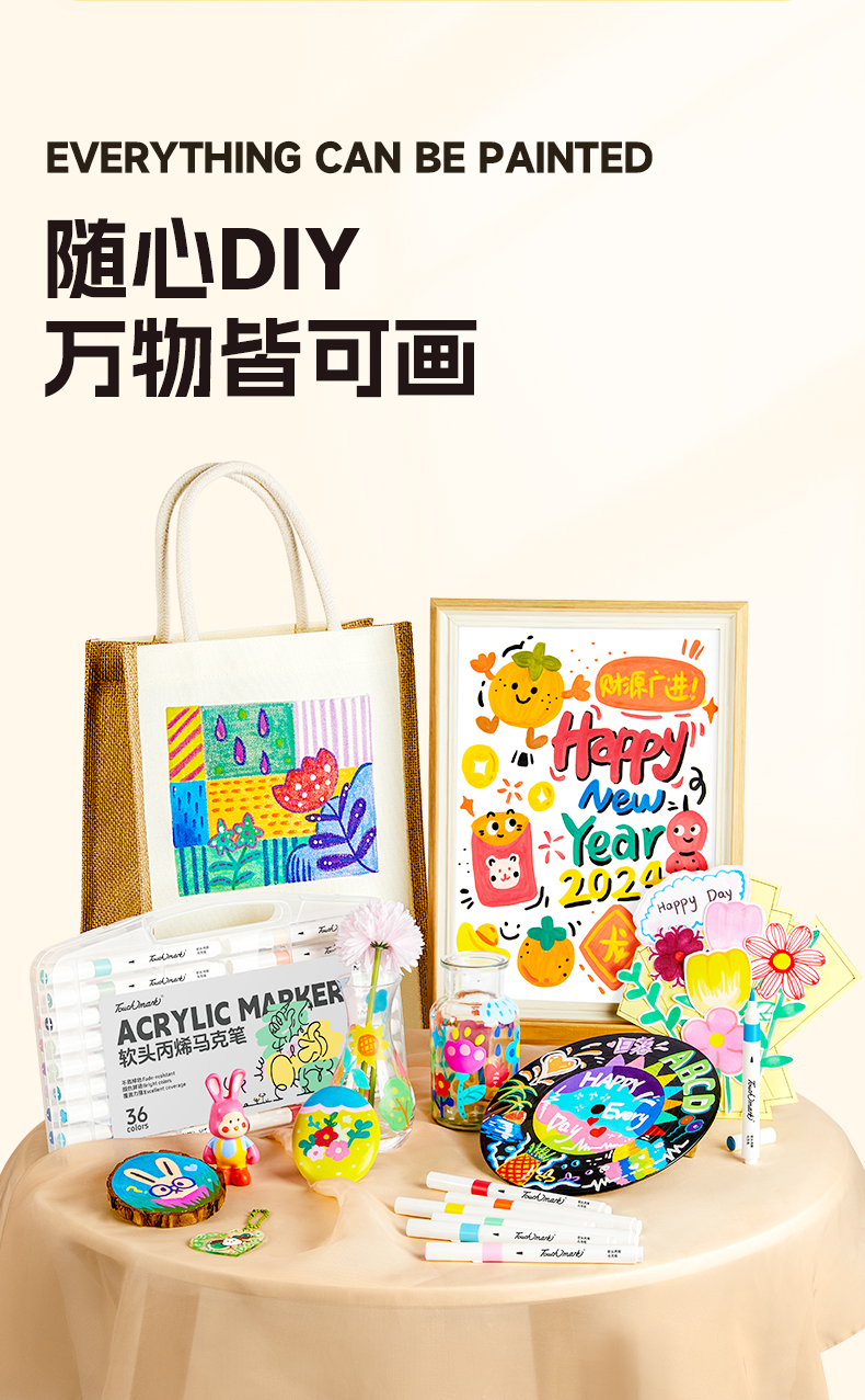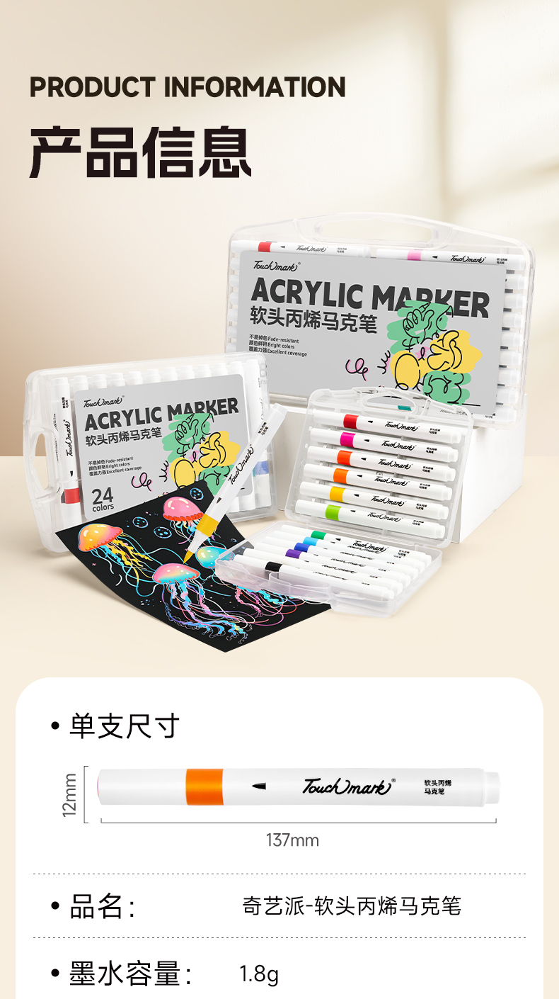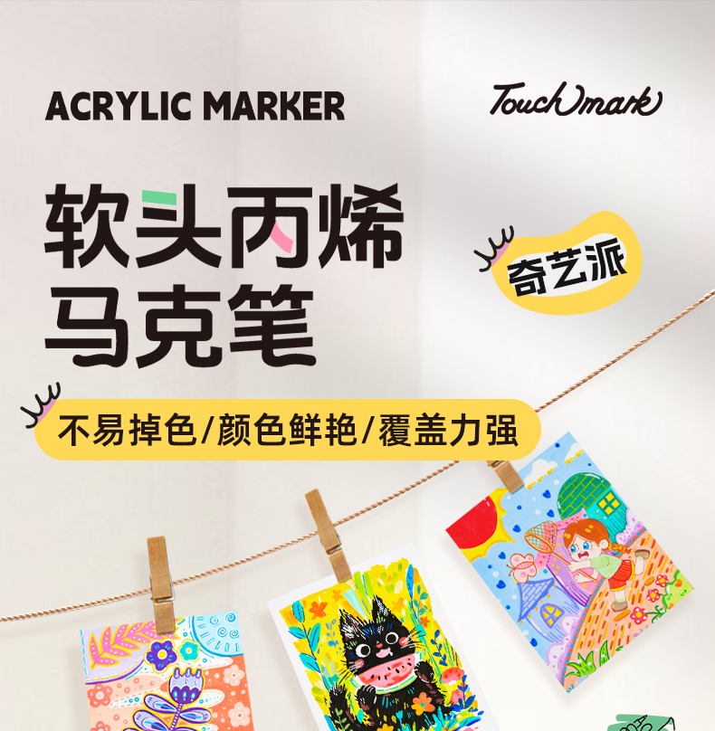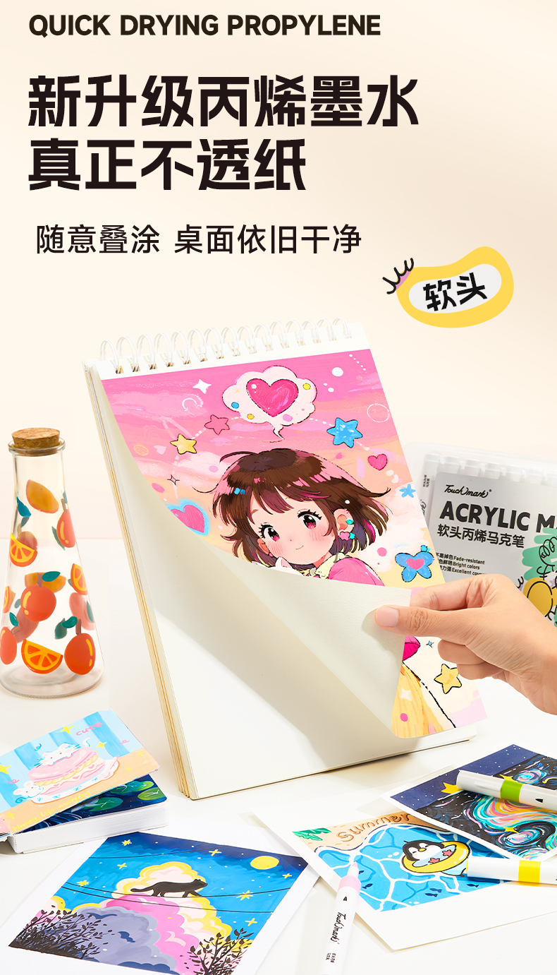 Touchmark泰驰马克软头丙烯马克笔小学生美术彩笔DIY手绘翻翻乐画笔