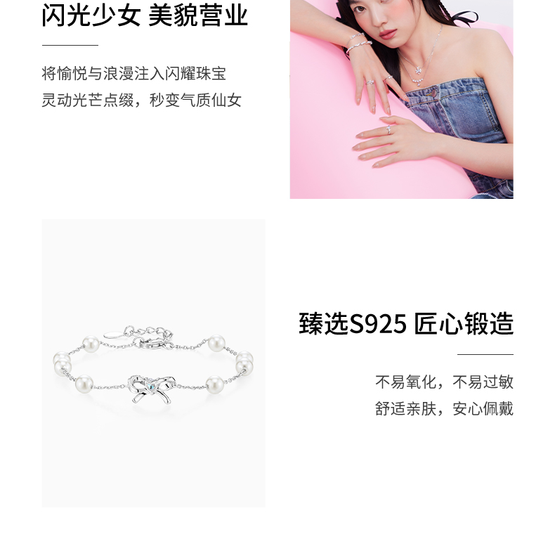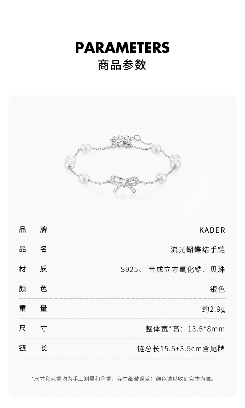 KADER卡蒂罗 流光蝴蝶结手链 925银优雅丝带轻奢时尚可调节设计配饰 甜美春日梦幻精致时尚 礼物