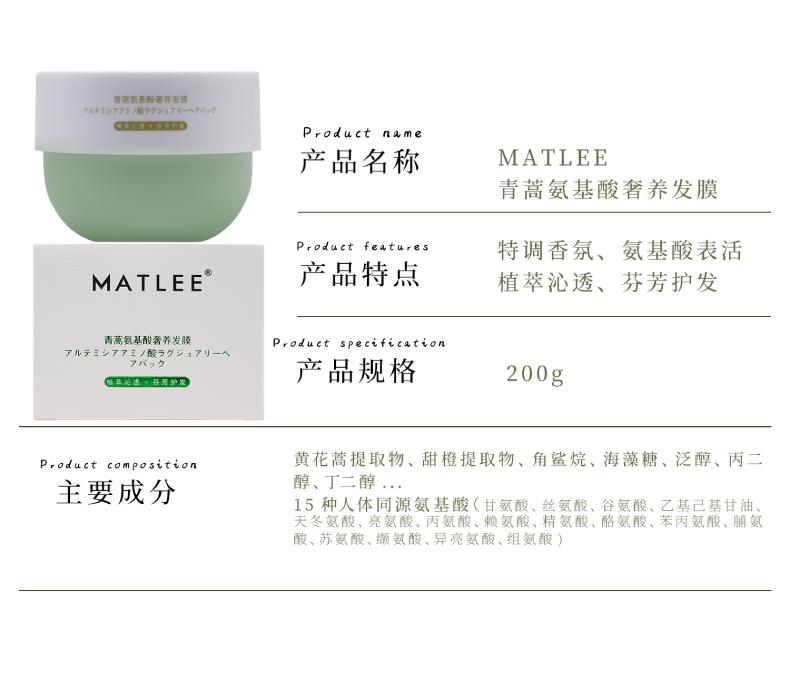 【中欧班列精选】MAT LEE蜜梨青蒿氨基酸奢养发膜200g/瓶