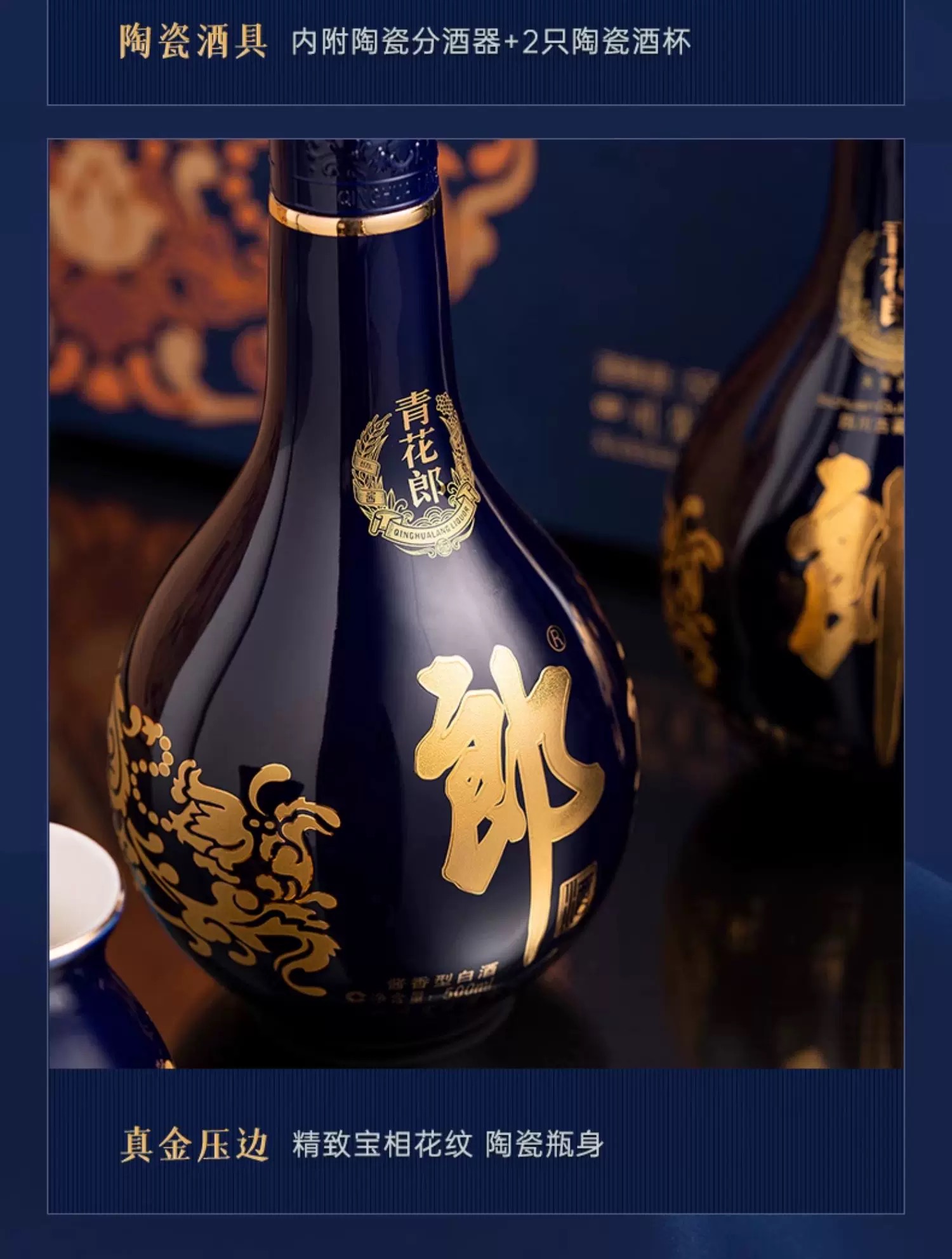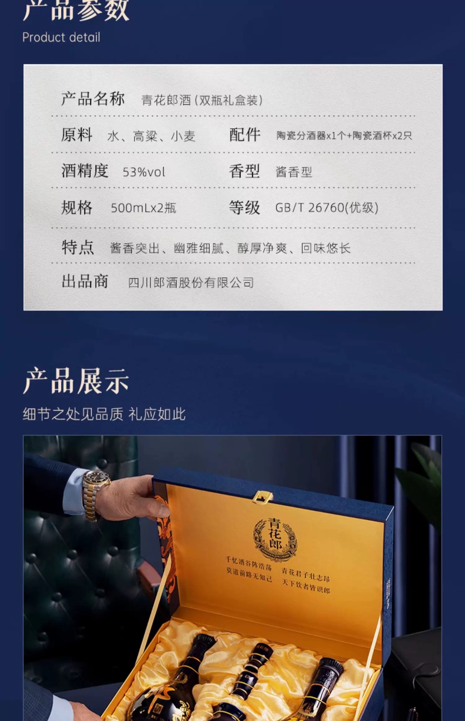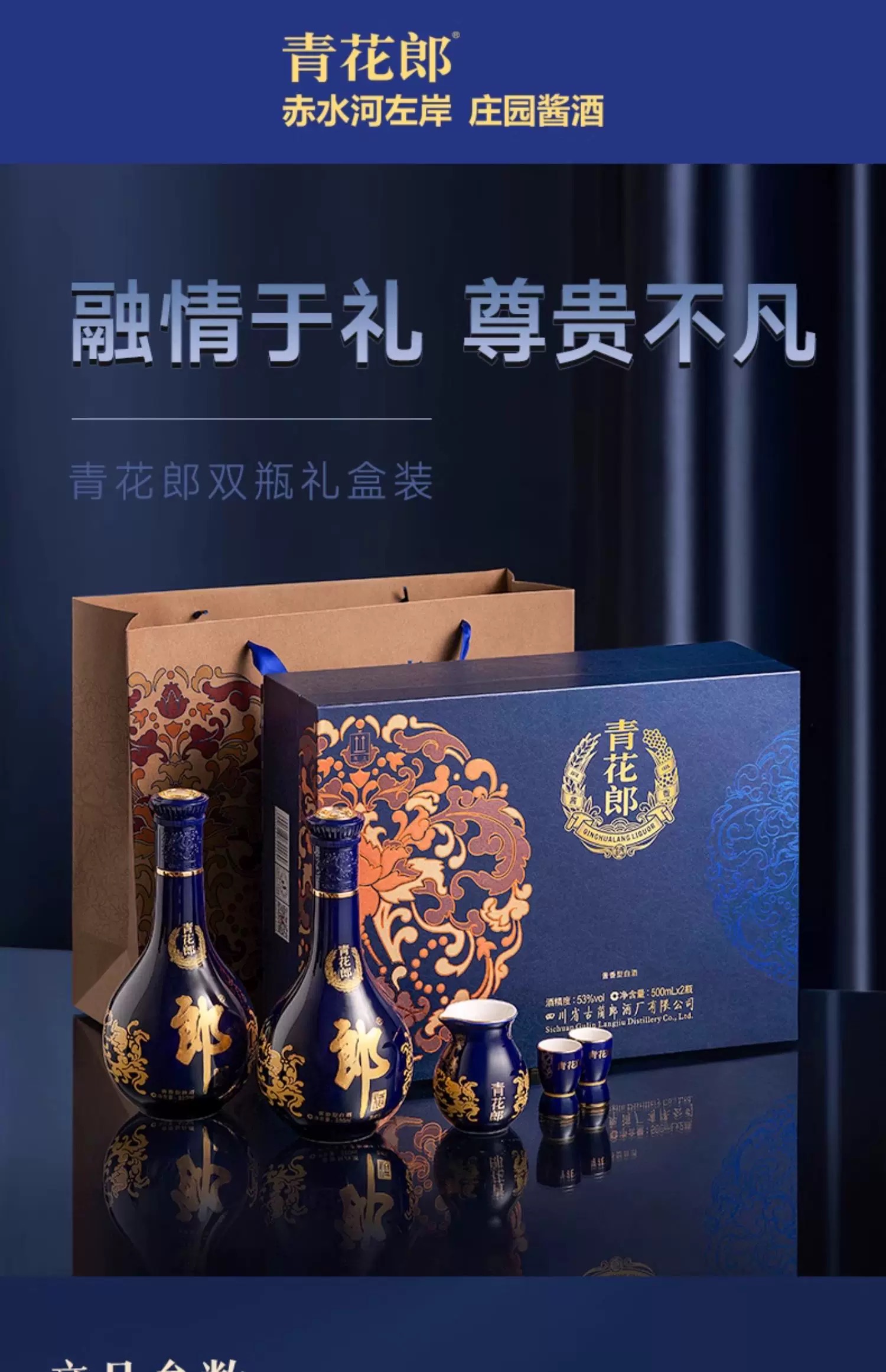 郎酒 青花郎 双瓶礼盒 53度酱香型白酒 500ml*2