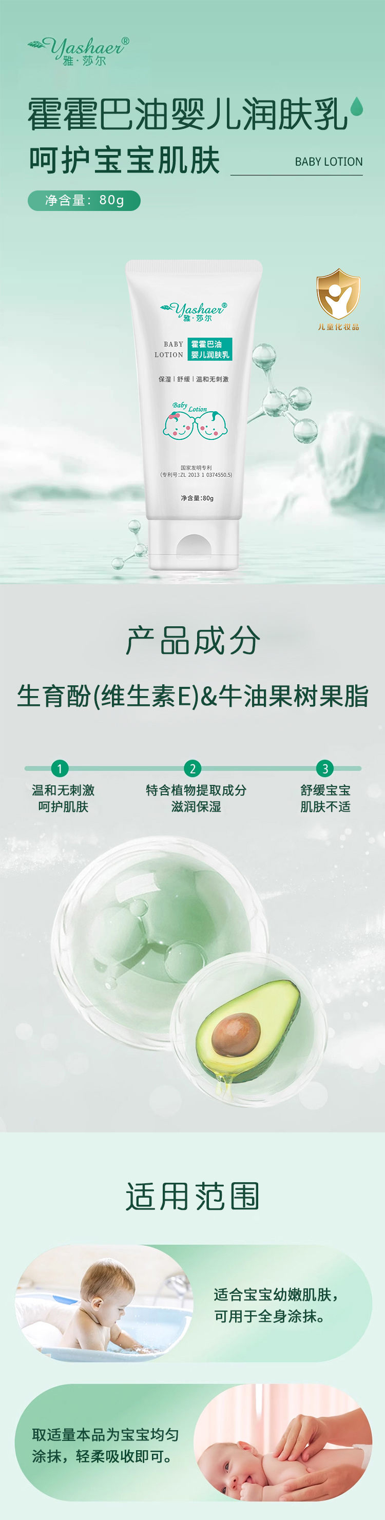 雅莎尔霍霍巴油婴儿润肤乳 舒缓保湿滋润肌肤