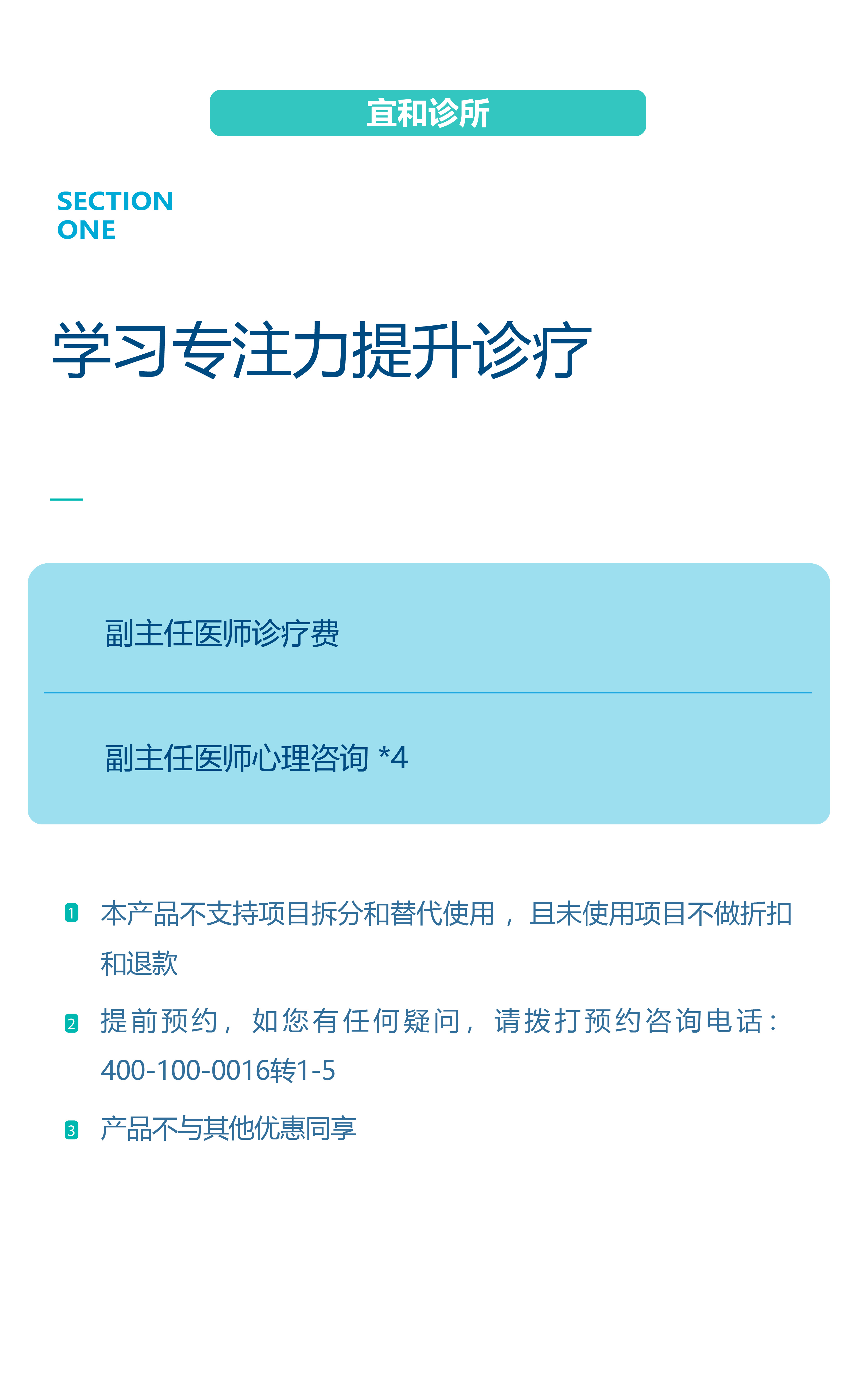 【综合门诊&新中关宜和门诊适用】暑期专享 学习专注力提升诊疗