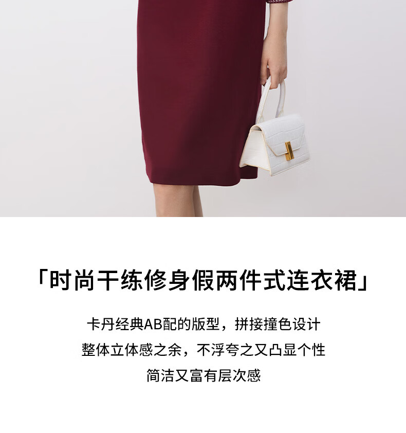 皮尔卡丹女装连衣裙通勤知性气质通勤假两件连衣裙P3431E3994T0