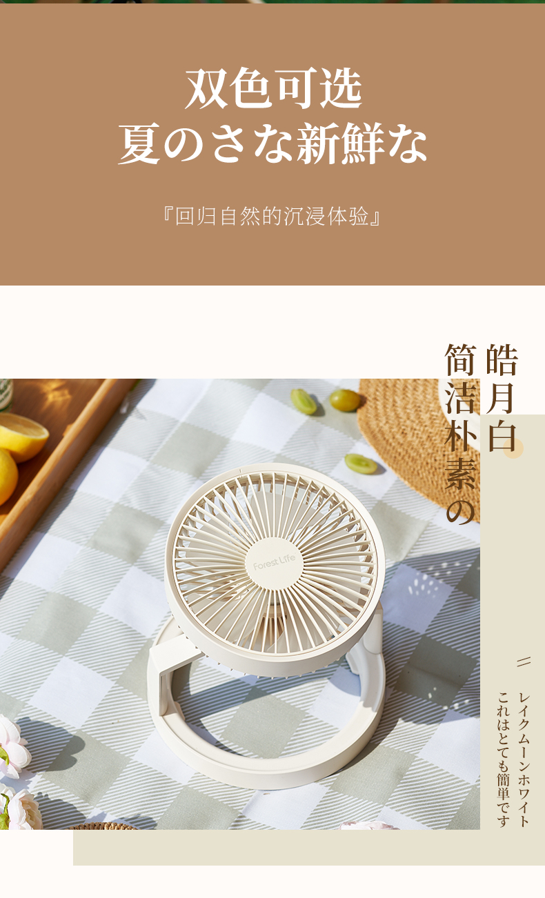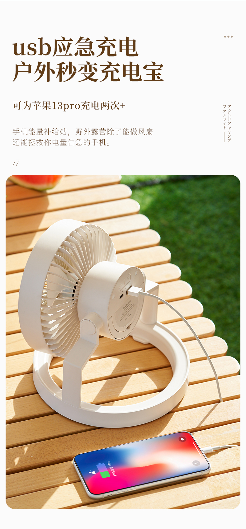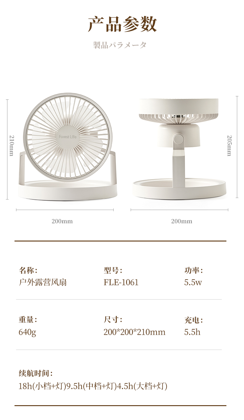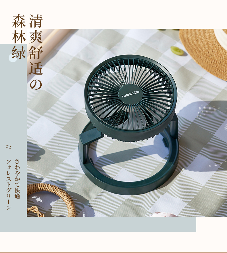 【户外多功能风扇+柔光灯】forestlife帐篷风扇FLE-1061 三档风速 三档环形柔光灯 挂立两用 180度可调节支架 内置8000mAh电池 USB移动充电宝