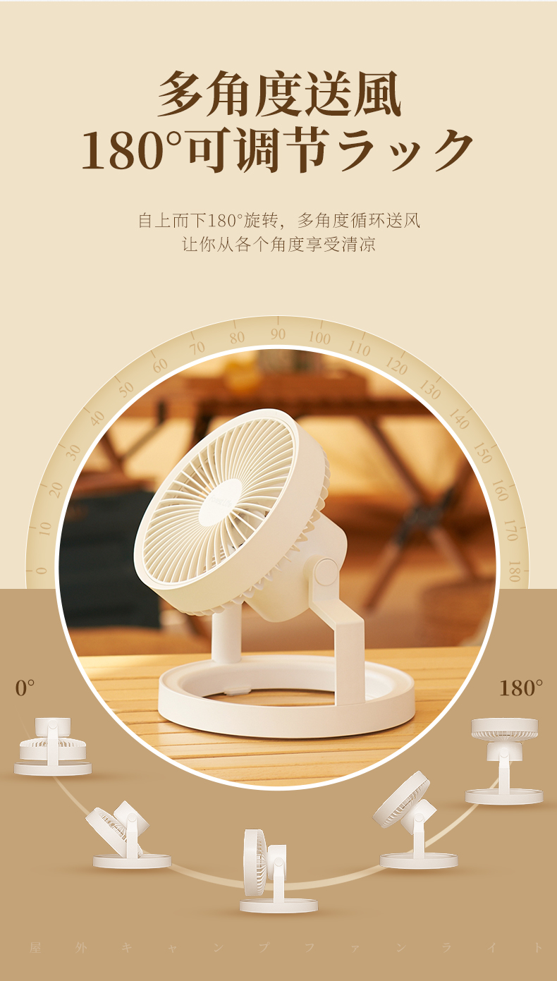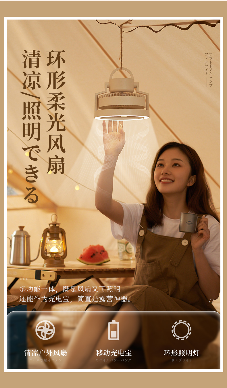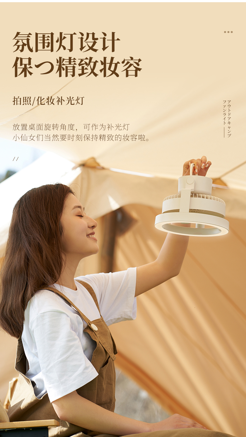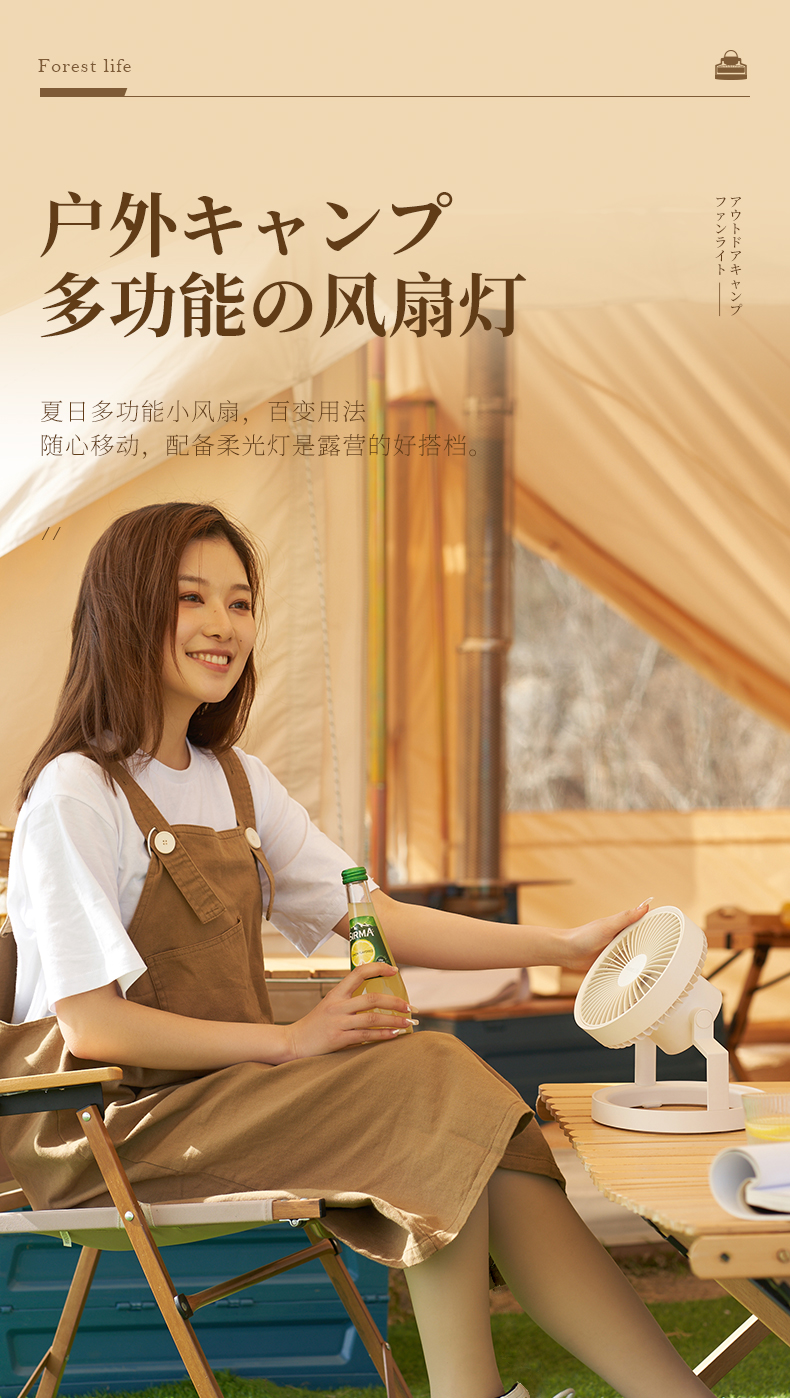 【户外多功能风扇+柔光灯】forestlife帐篷风扇FLE-1061 三档风速 三档环形柔光灯 挂立两用 180度可调节支架 内置8000mAh电池 USB移动充电宝