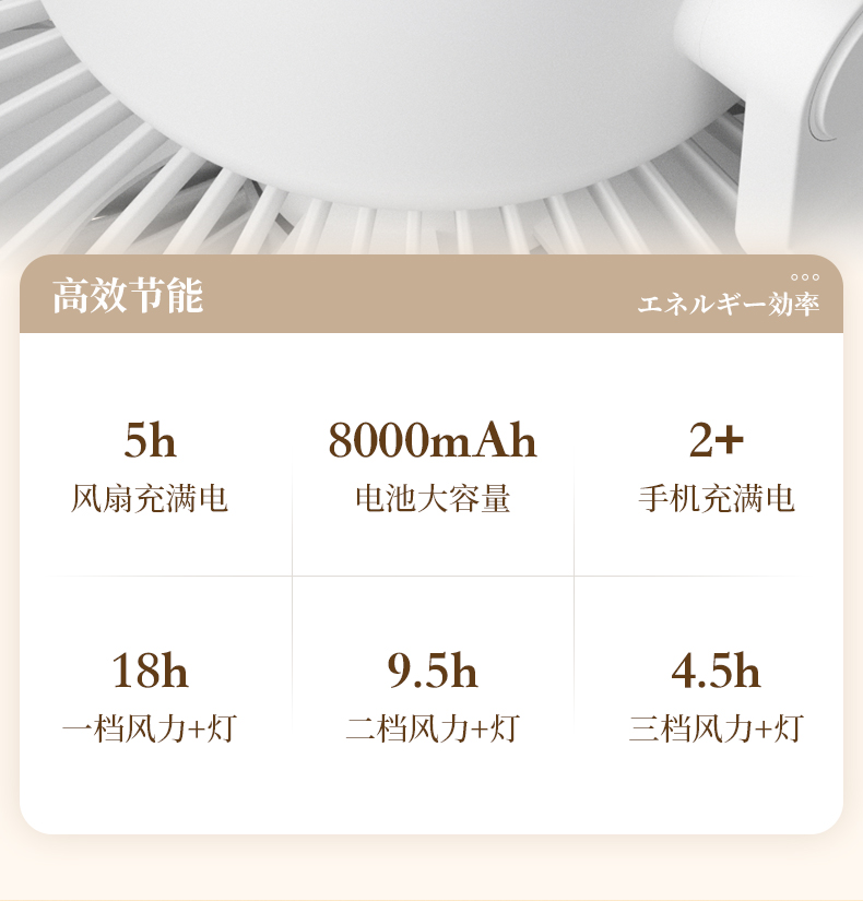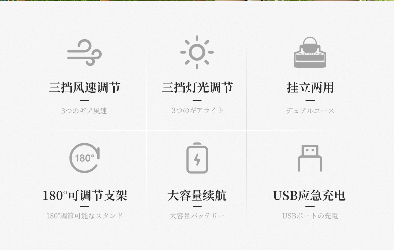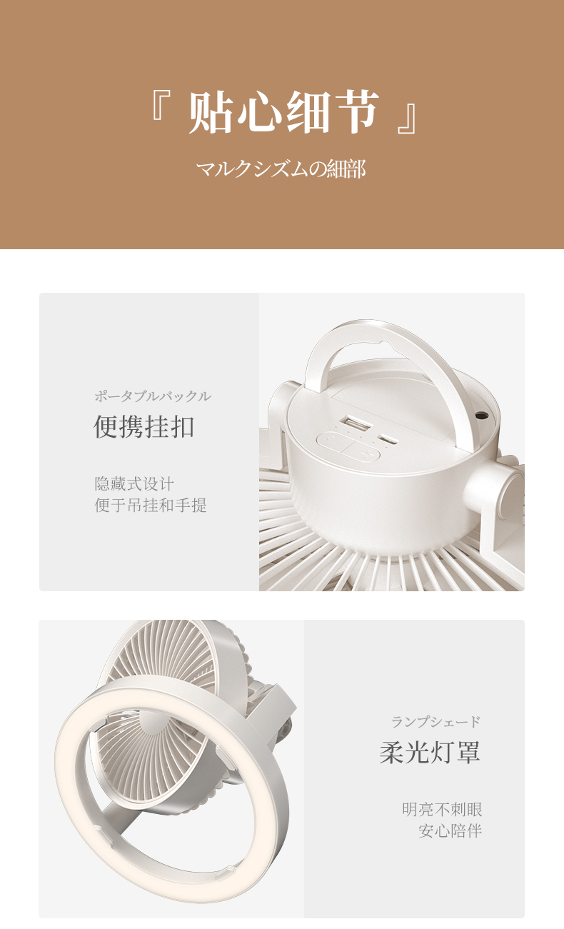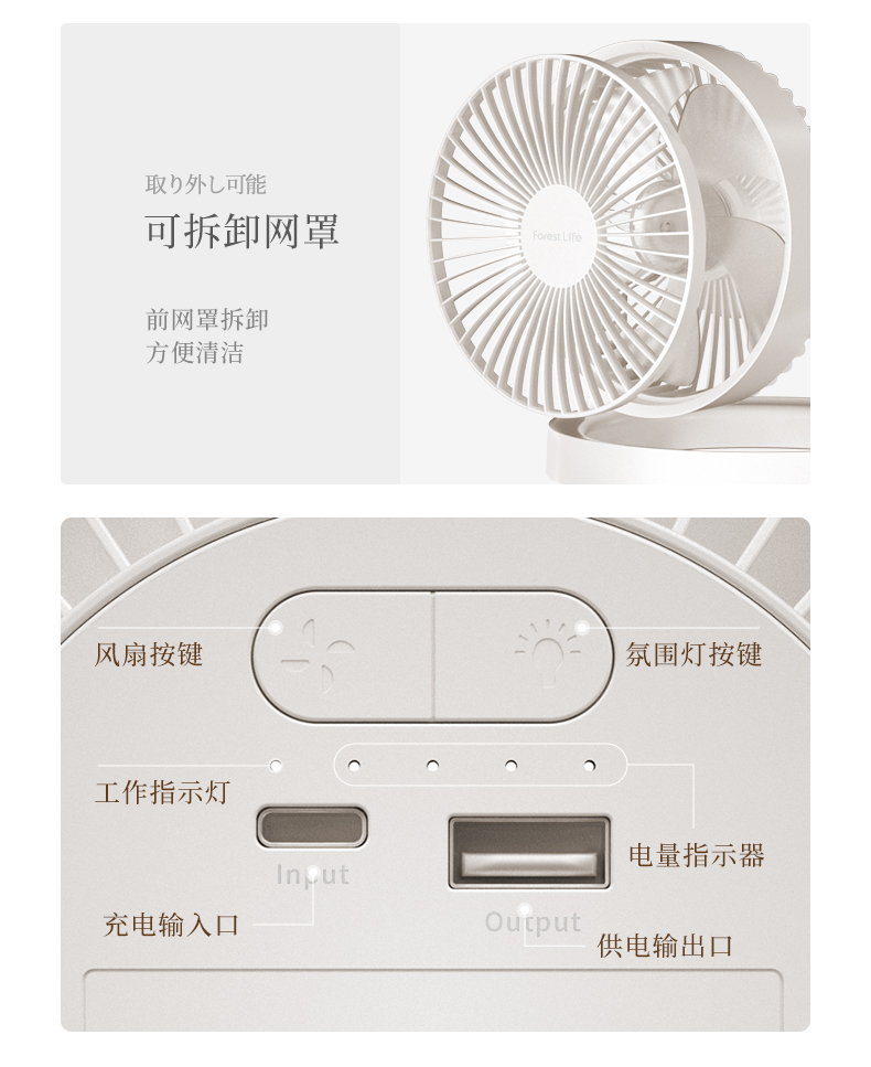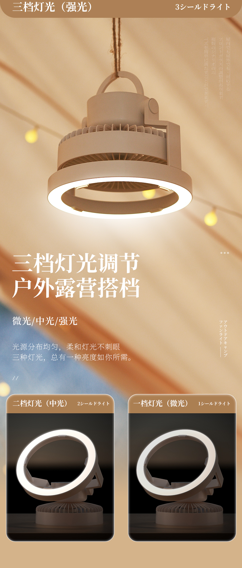 【户外多功能风扇+柔光灯】forestlife帐篷风扇FLE-1061 三档风速 三档环形柔光灯 挂立两用 180度可调节支架 内置8000mAh电池 USB移动充电宝