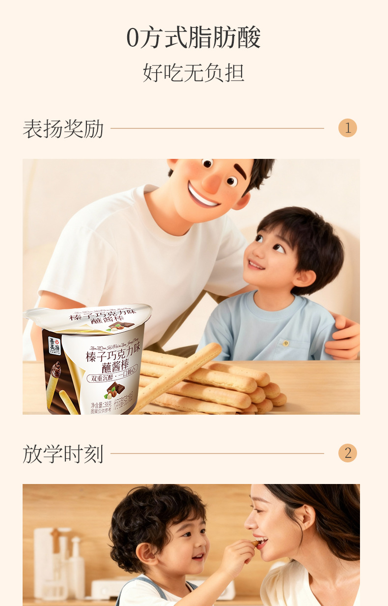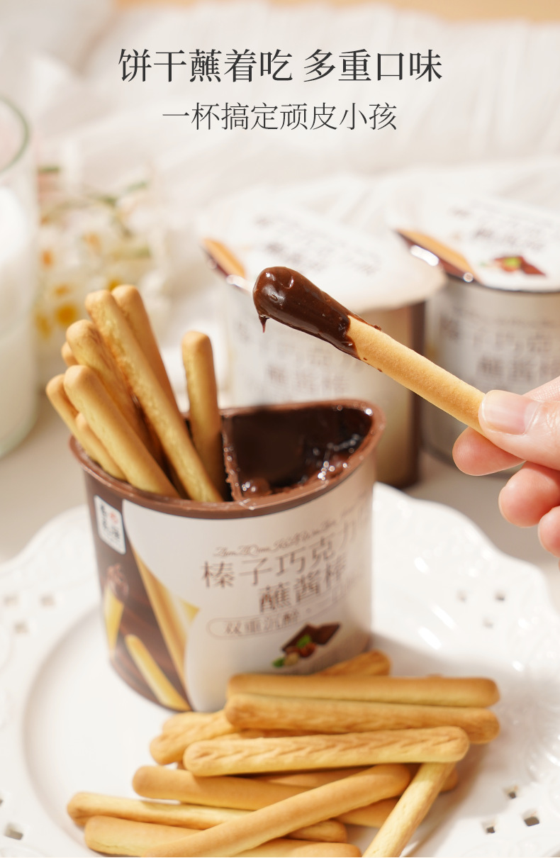 【一杯搞定“顽皮”小孩❗榛子巧克力味蘸酱棒】甄选品质原料制作,选用进口可可粉,好吃无负担,醇香恰到好处,解馋小吃手指饼干儿童零食盒装L
