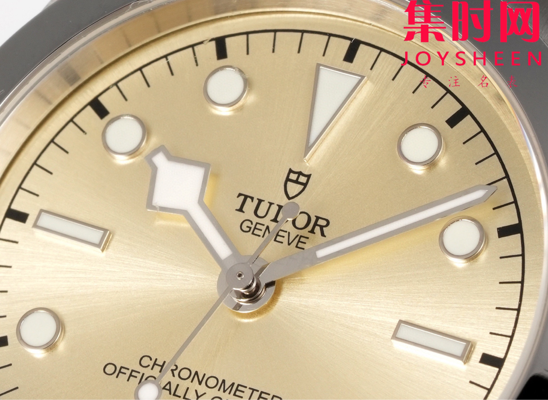 - 指针与时标:经典的"雪花"指针,灵感源自1950年代帝舵潜水表,时标和指针涂覆Super-LumiNova夜光材料,确保夜间清晰读时。