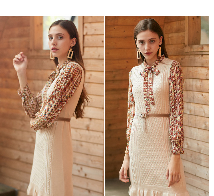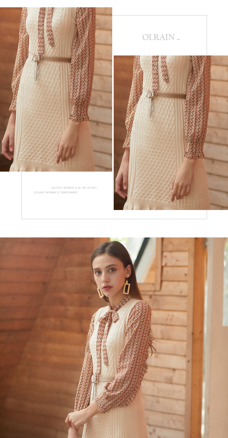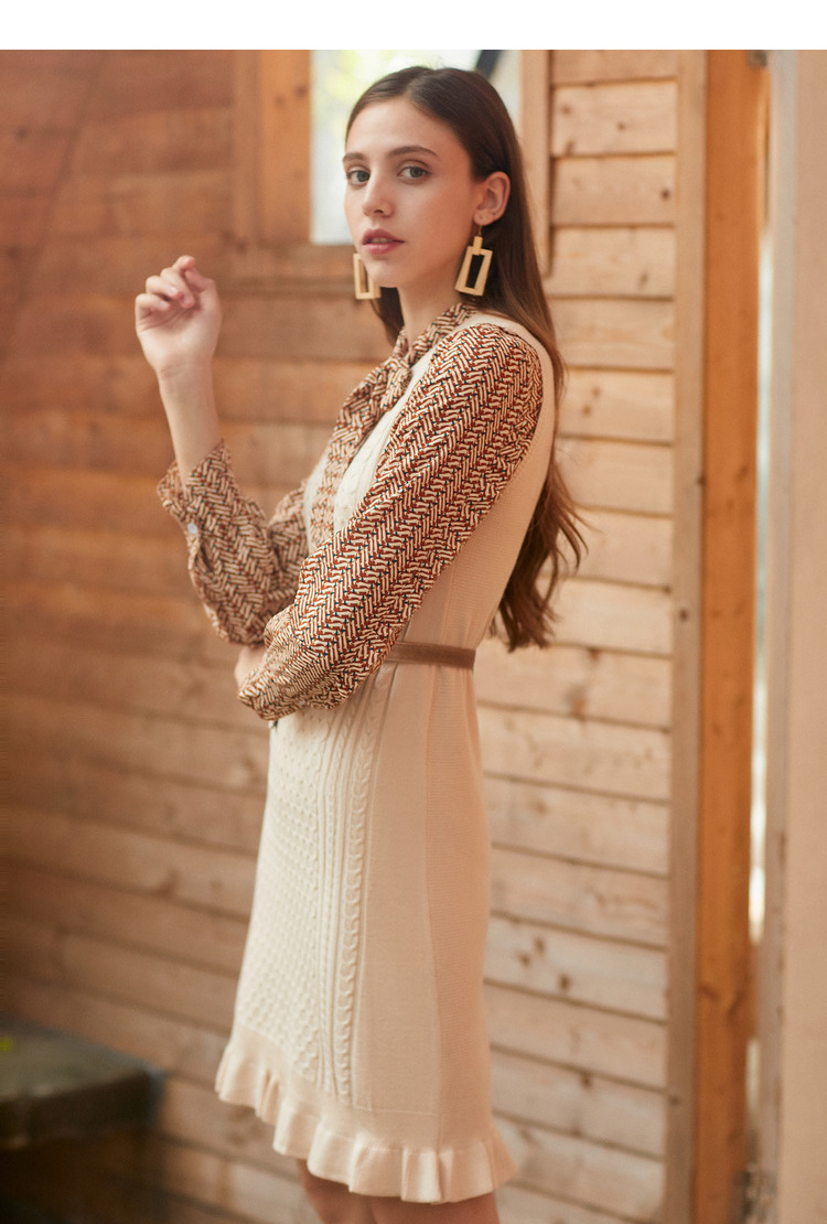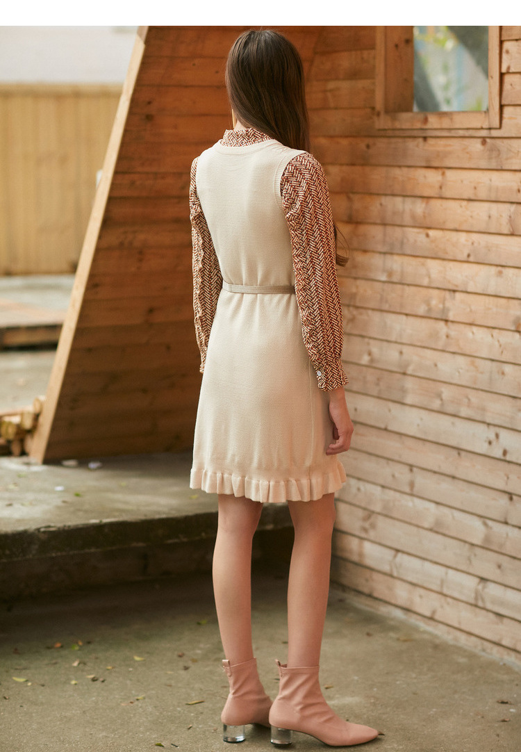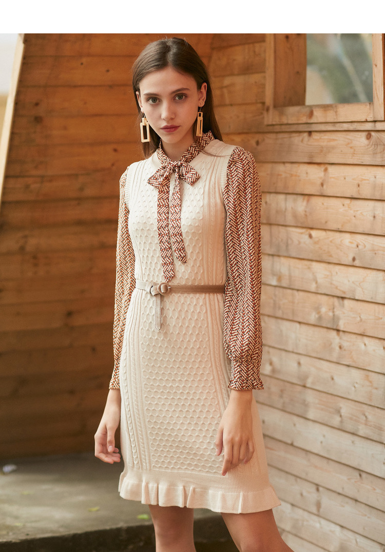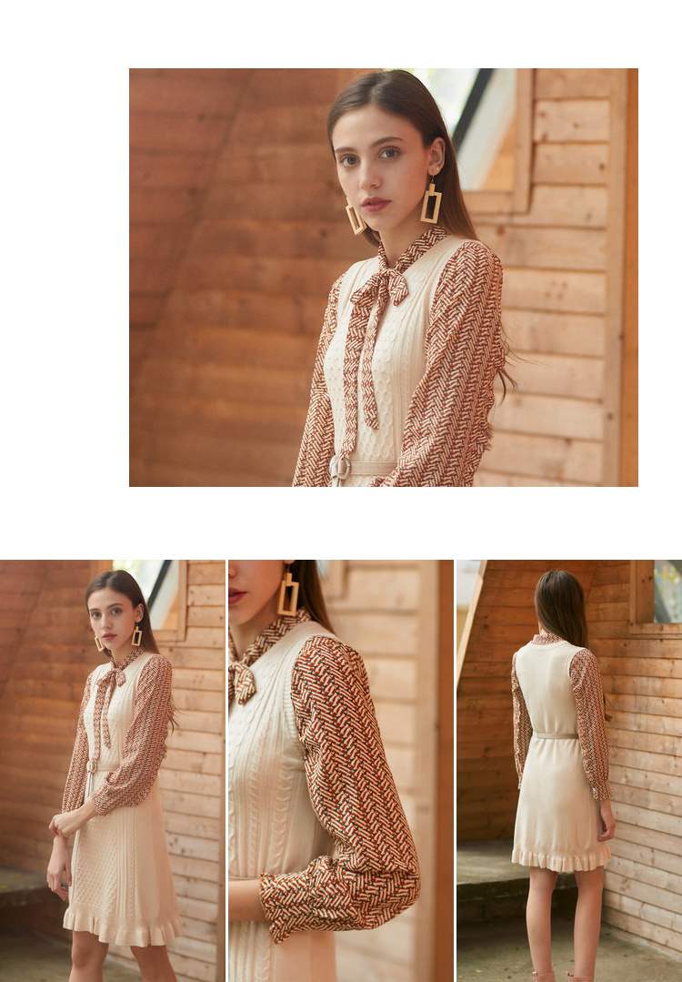 欧芮儿冬装针织背心裙+蝴蝶结碎花雪纺衬衫套装裙子