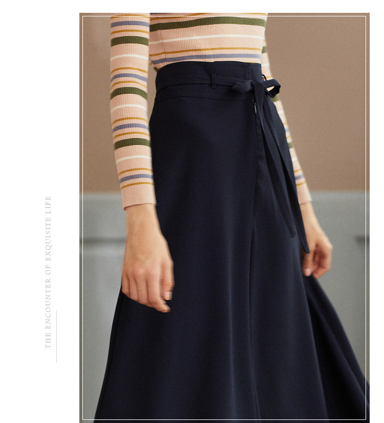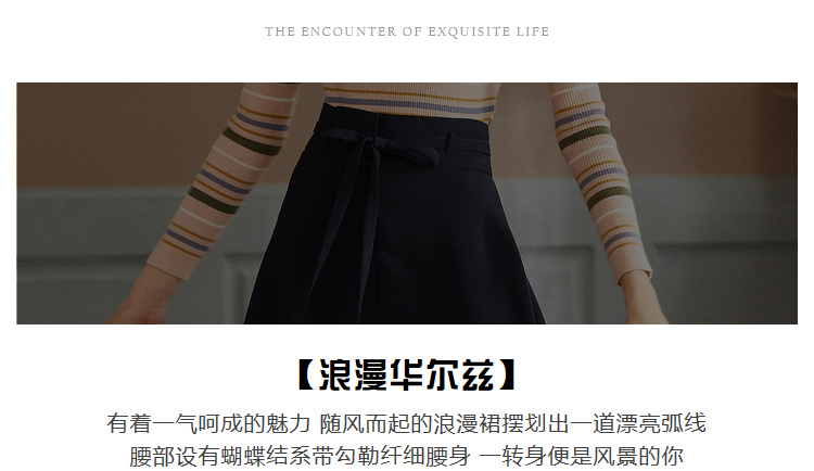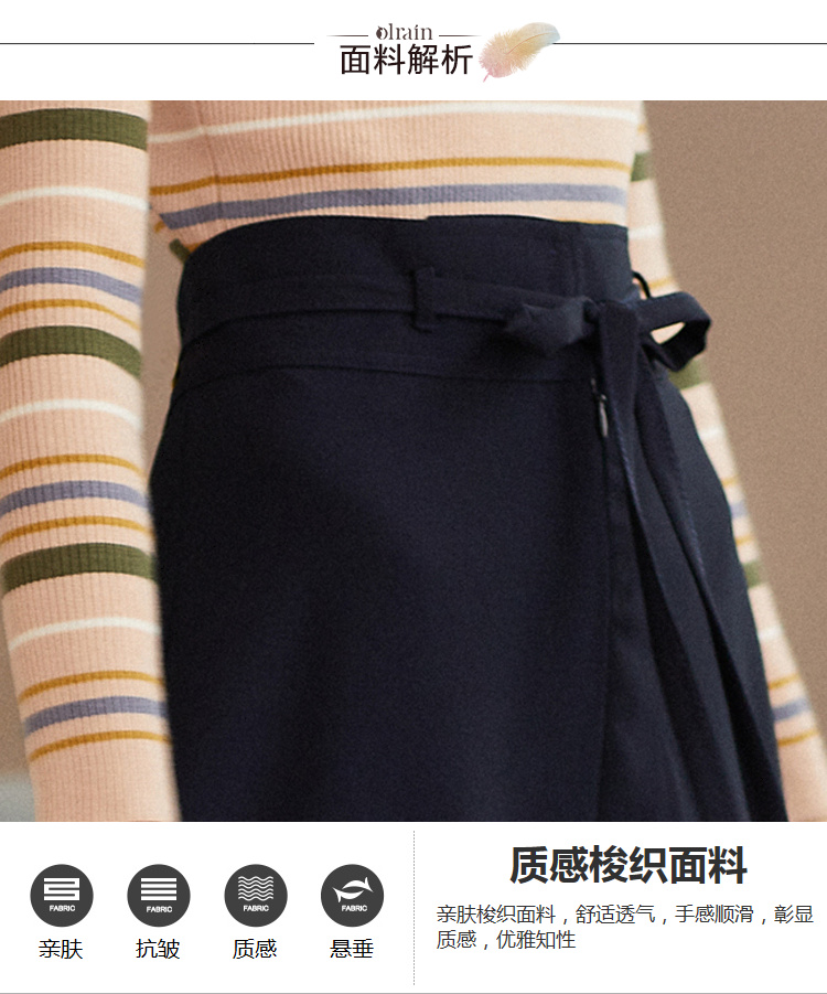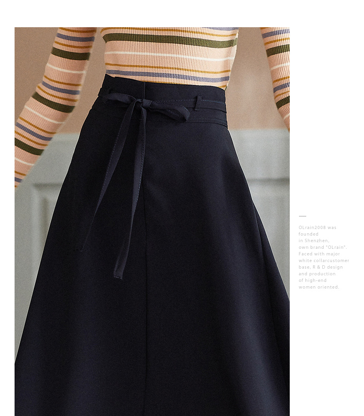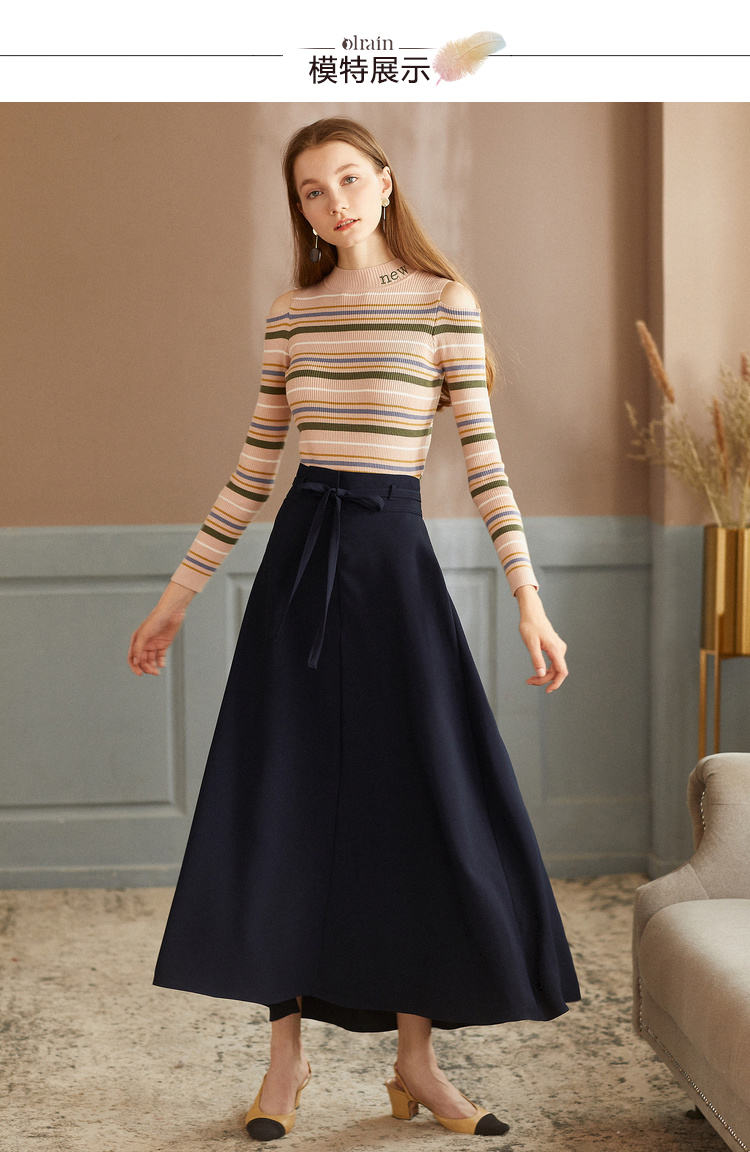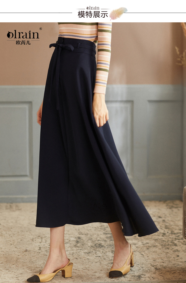欧芮儿2018秋装新款收腰蝴蝶结不规则针织半身裙女中长款潮