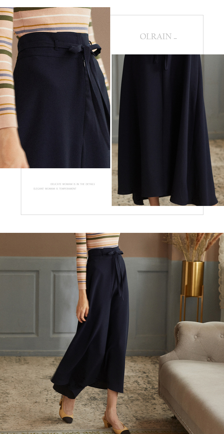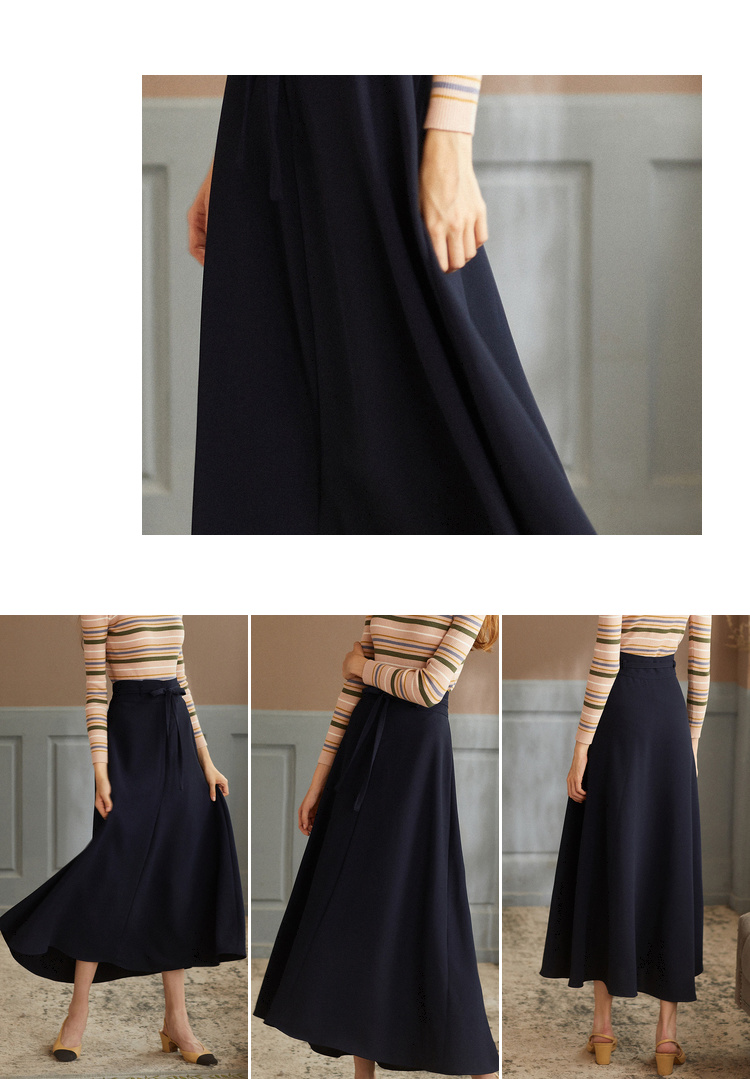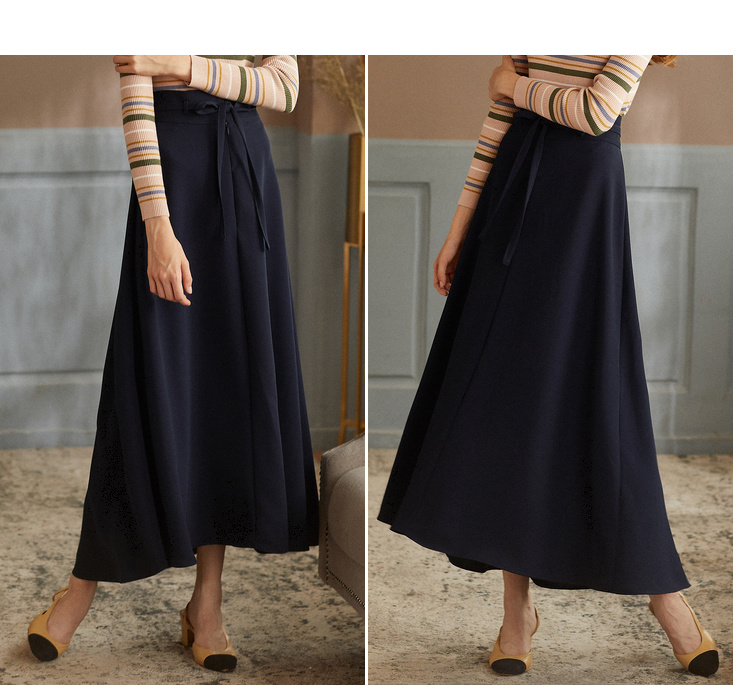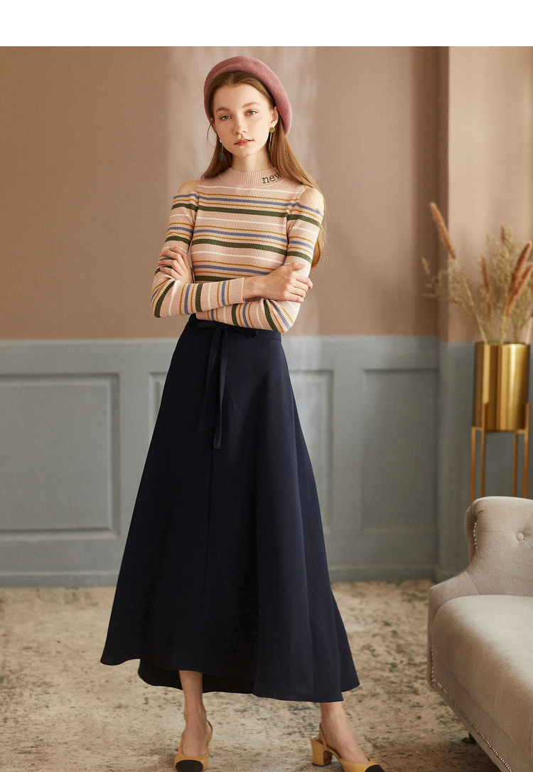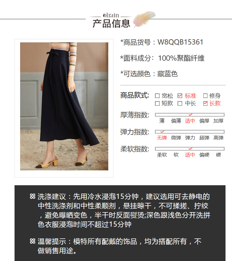 欧芮儿2018秋装新款收腰蝴蝶结不规则针织半身裙女中长款潮