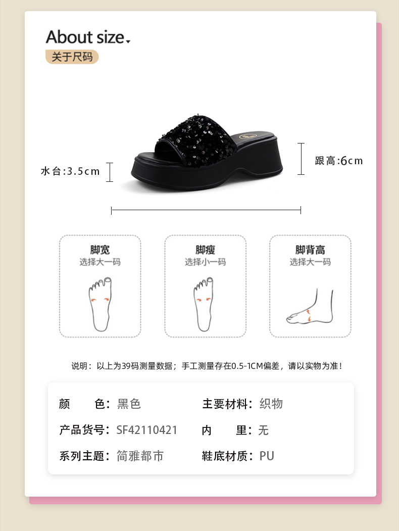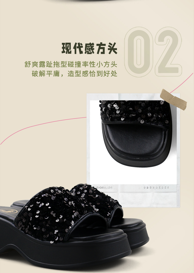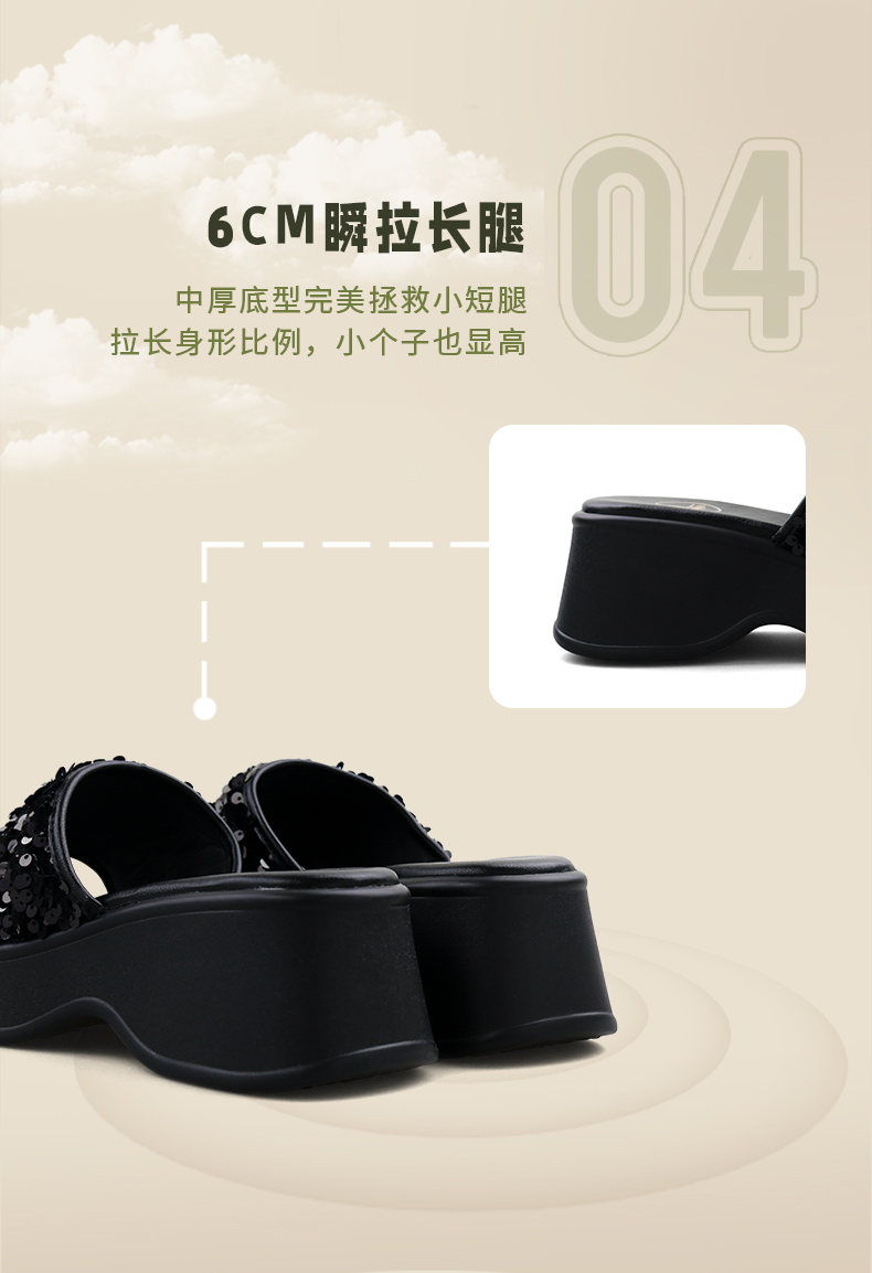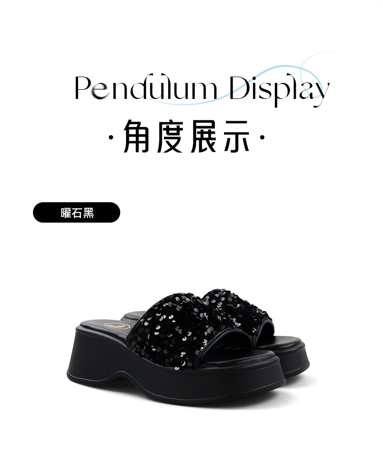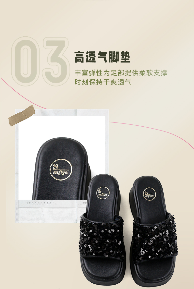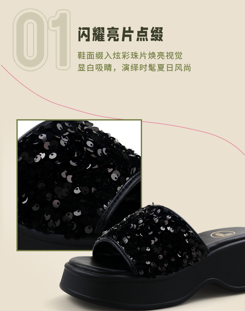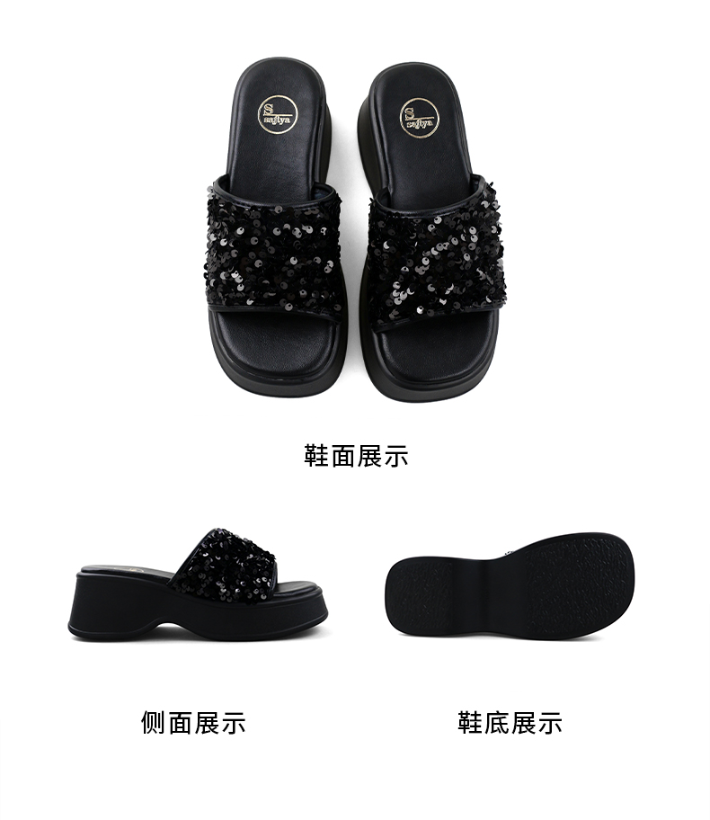 Safiya/索菲娅2024夏 松糕露趾亮片休闲厚底拖鞋 SF42110421