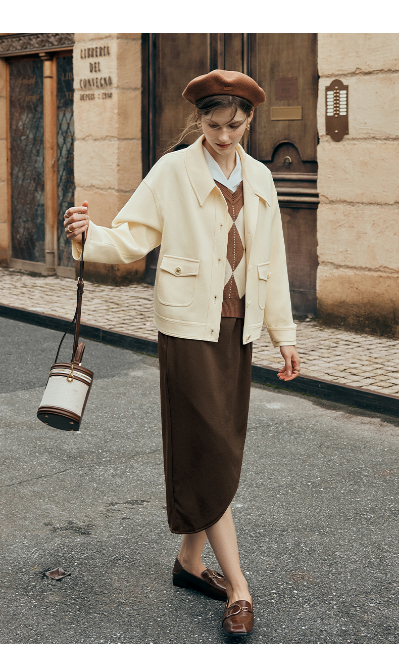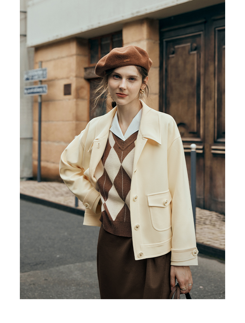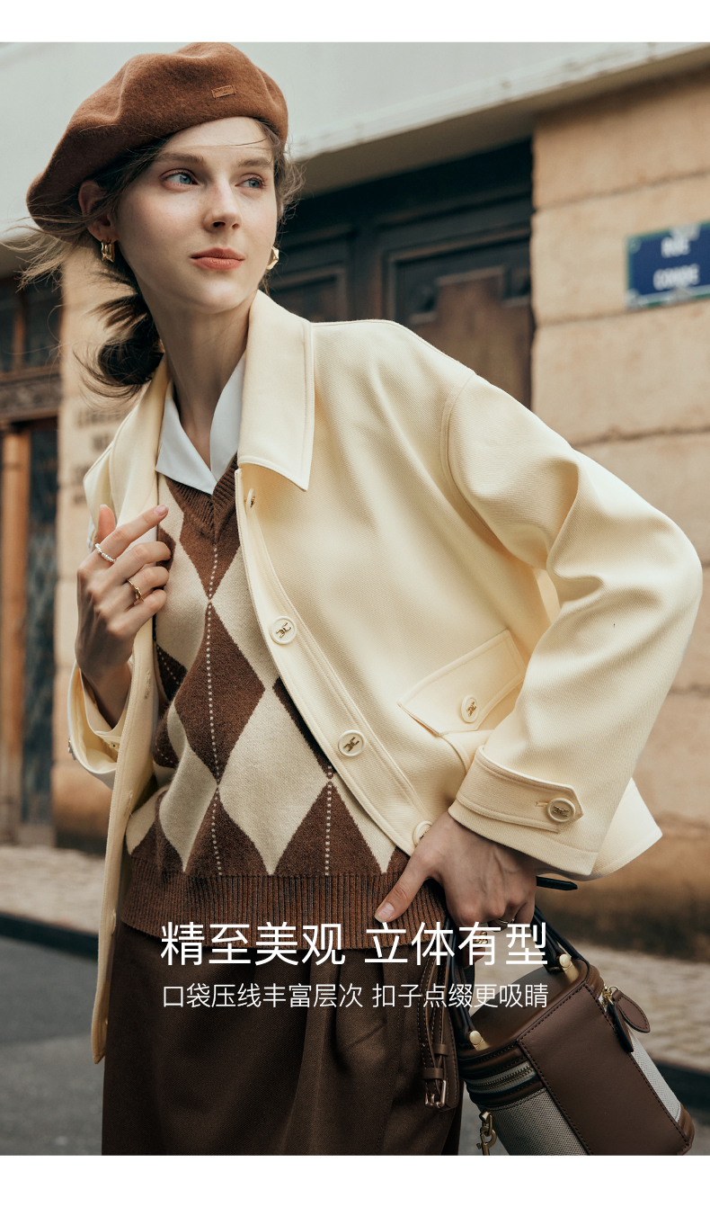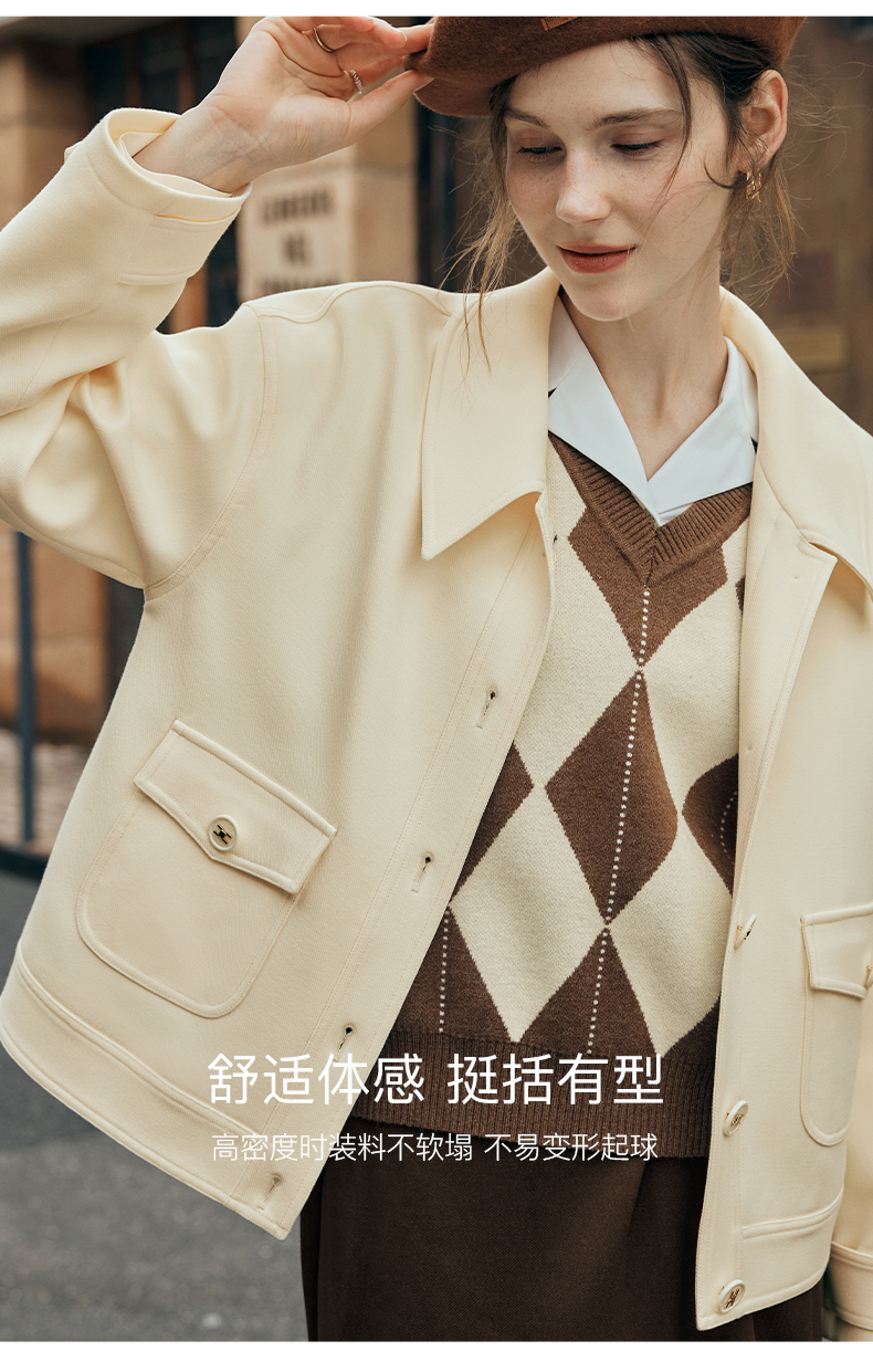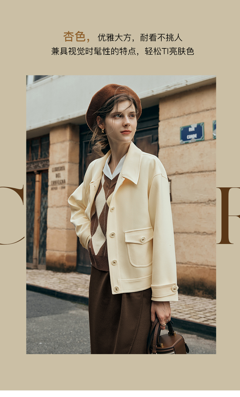 OLrain欧芮儿杏色短外套女夏季2023新款宽松气质减龄百搭休闲上衣