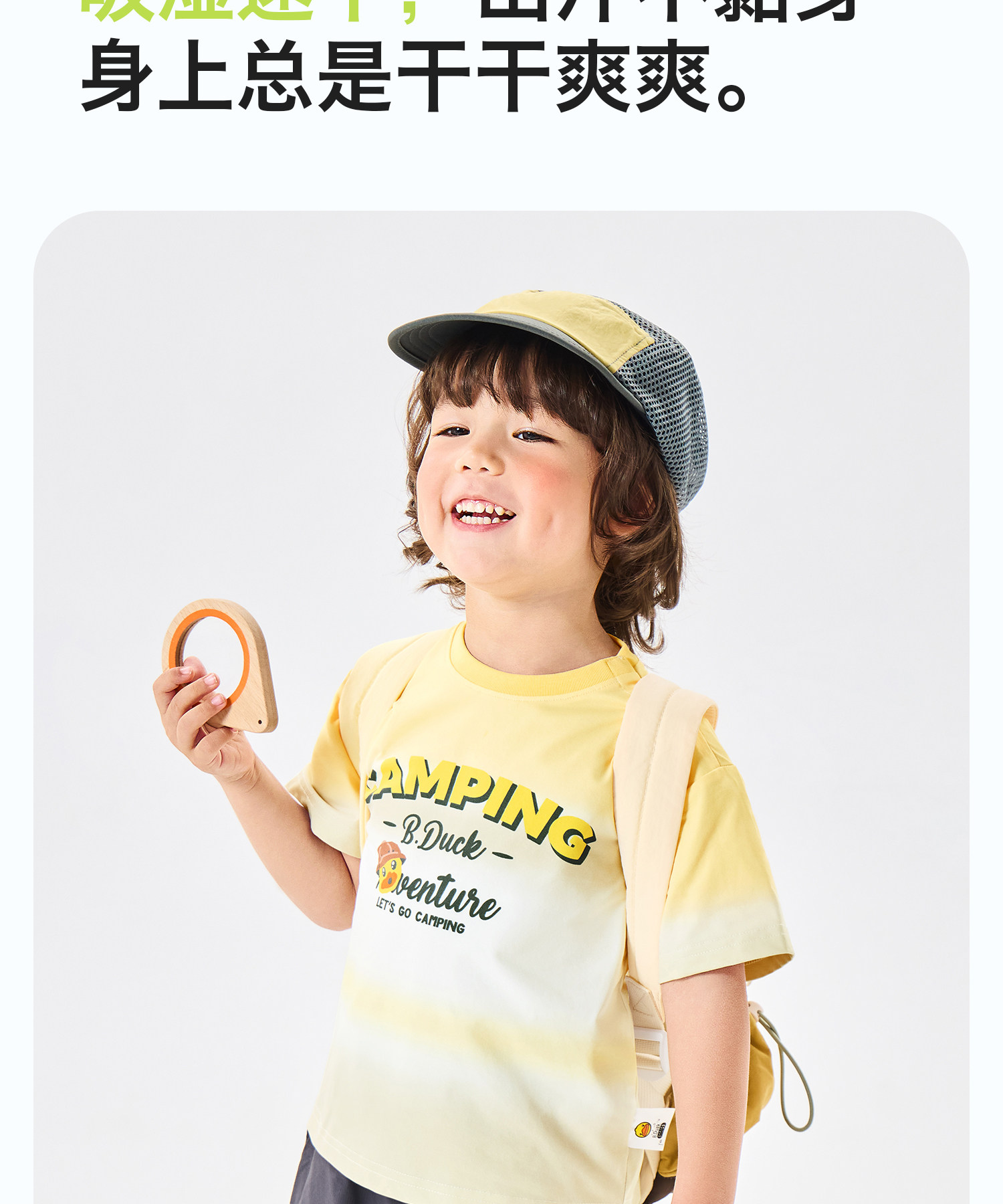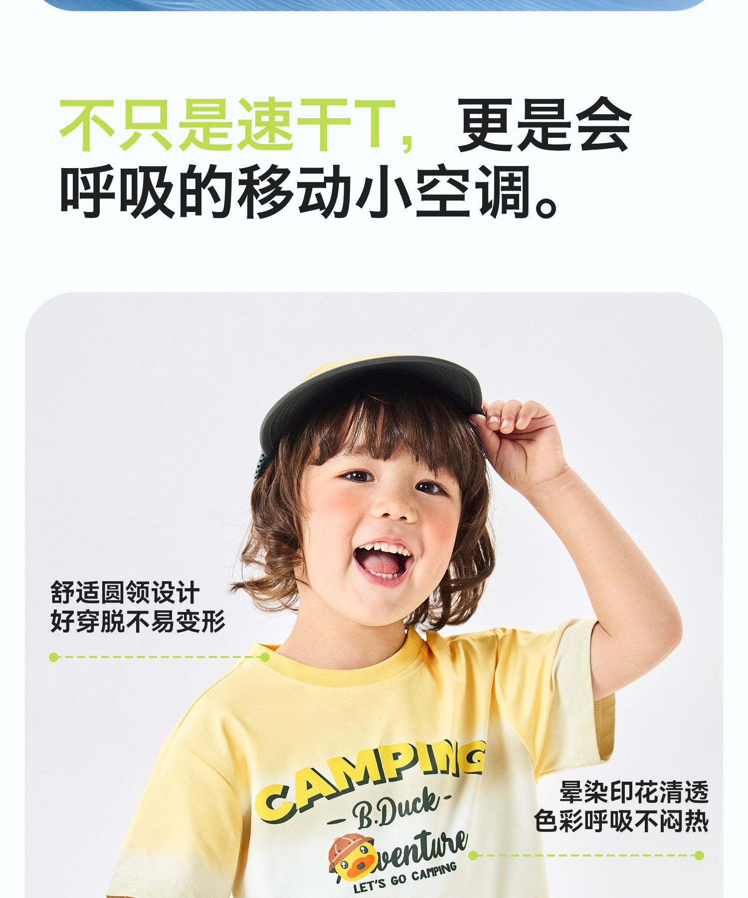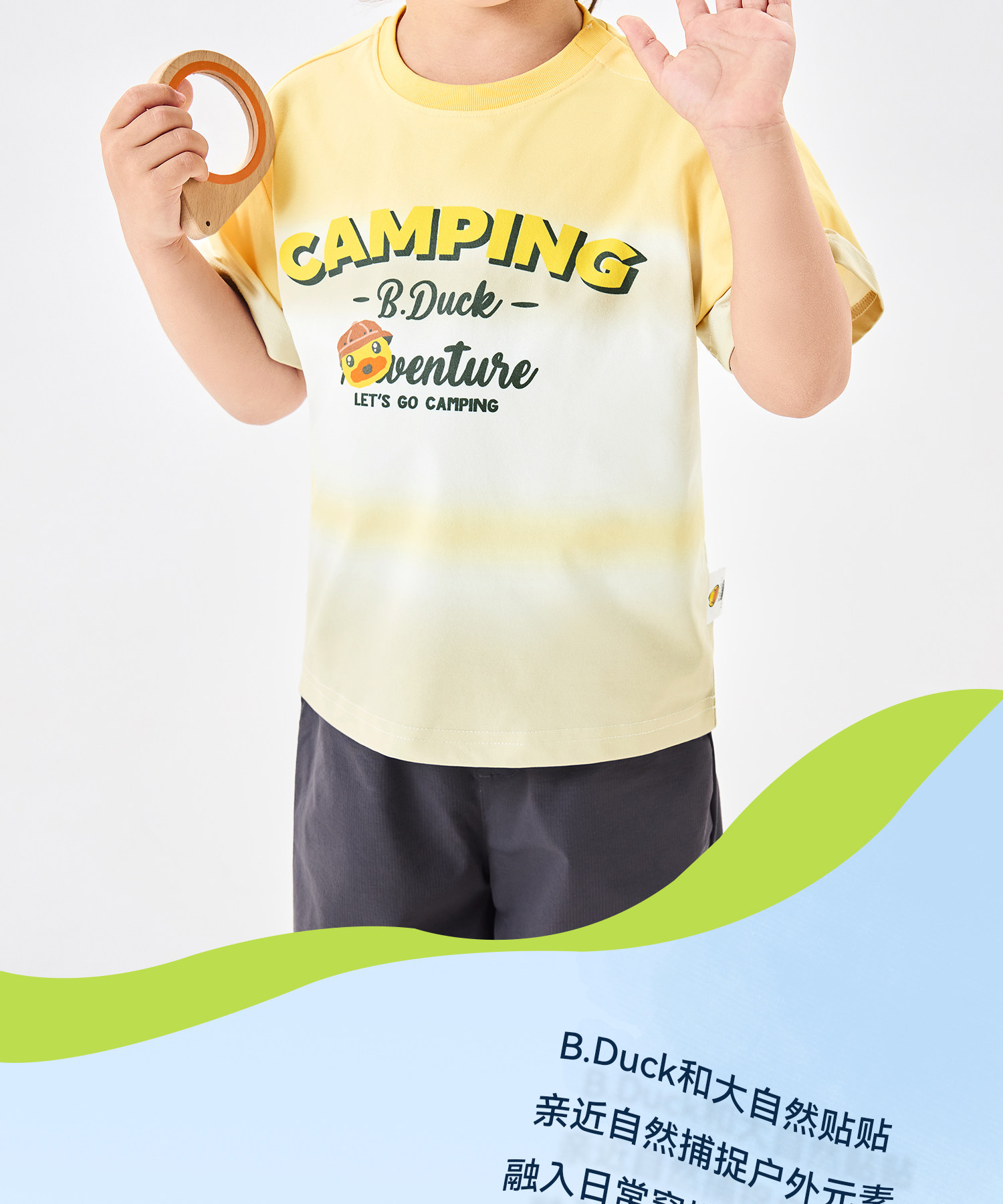 [冰感速干]bduck小黄鸭童装男童短袖T恤儿童夏装上衣渐变半袖上衣90-150 BF2701025