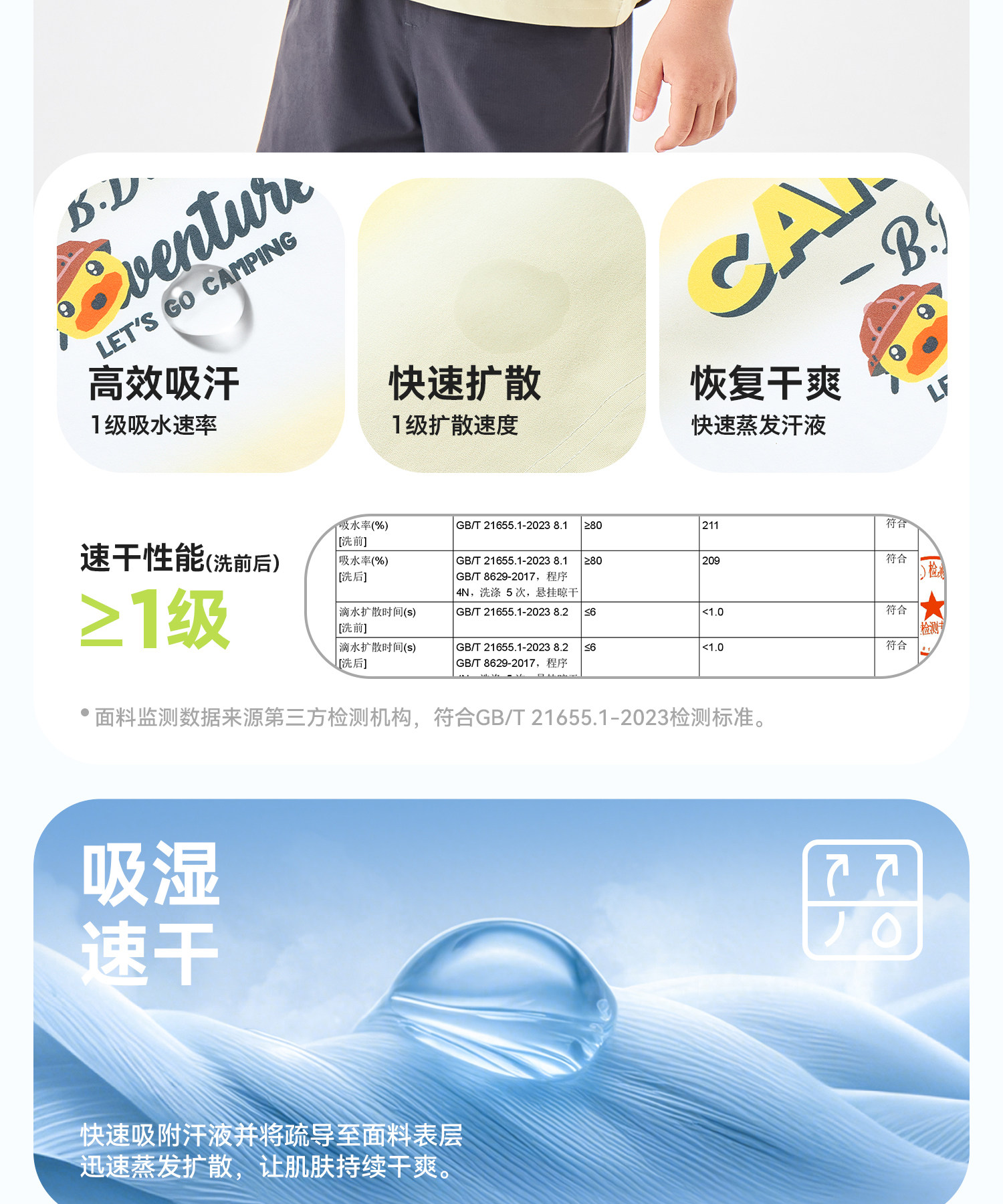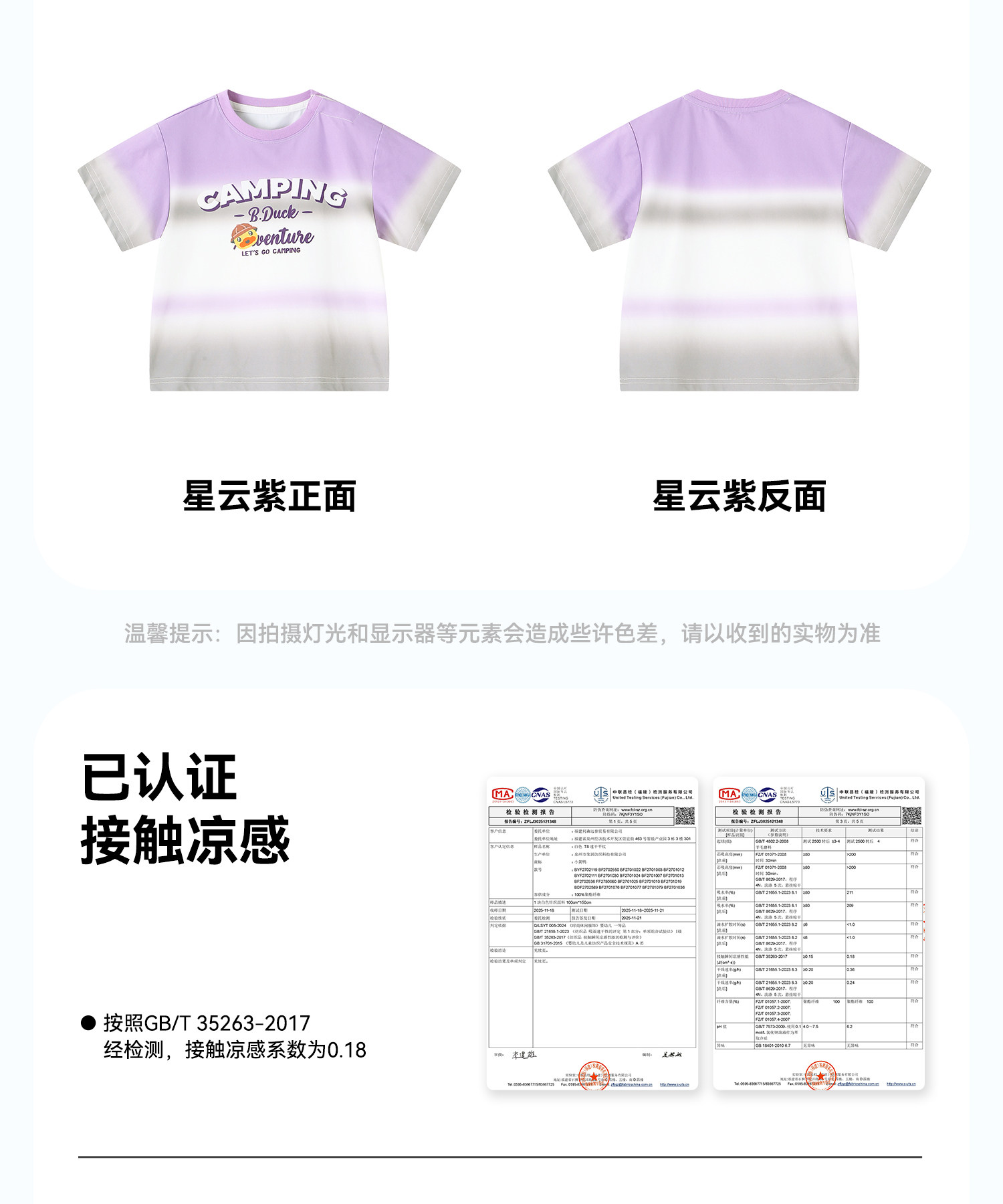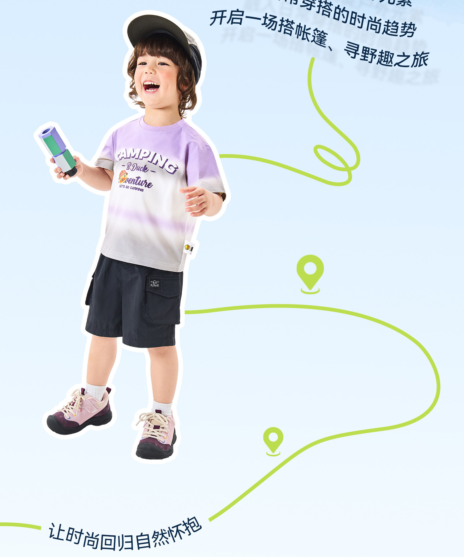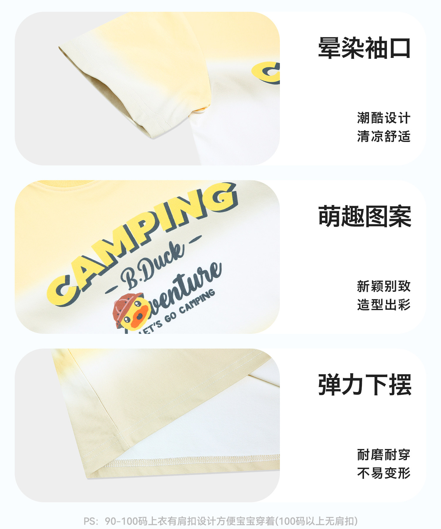 [冰感速干]bduck小黄鸭童装男童短袖T恤儿童夏装上衣渐变半袖上衣90-150 BF2701025