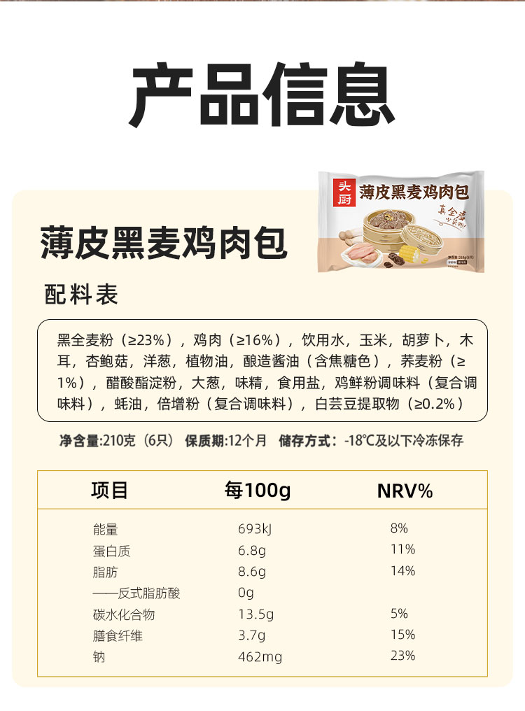 薄皮黑麦鸡肉包*1袋装(210G/6只/袋)