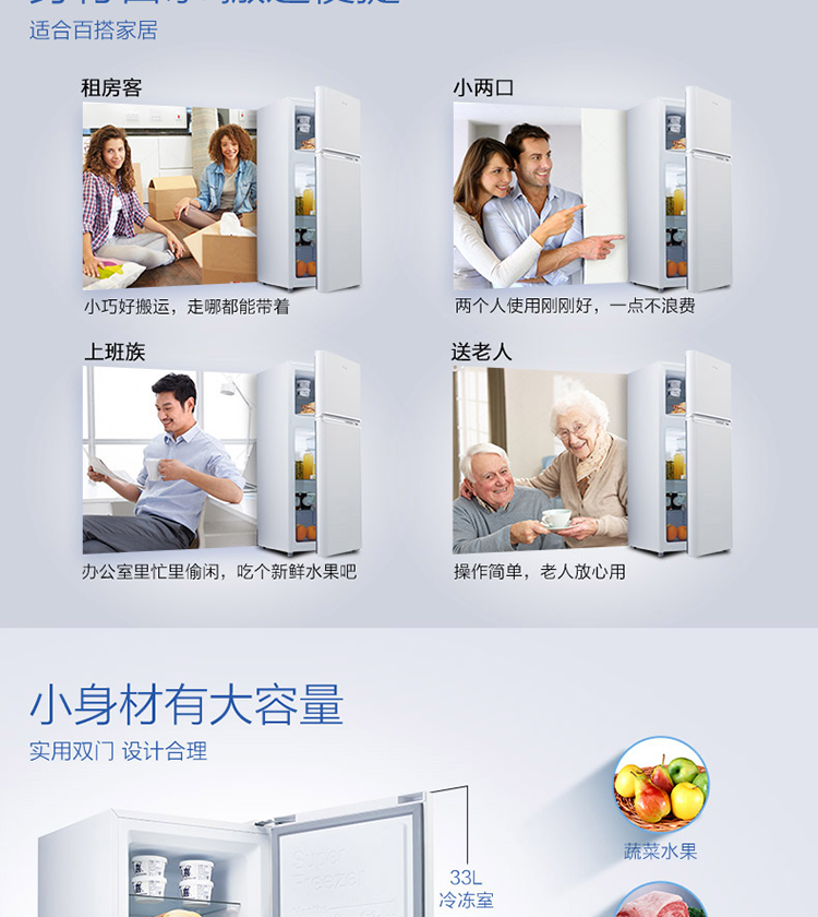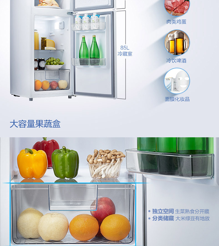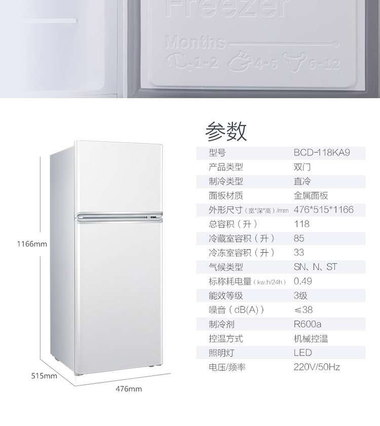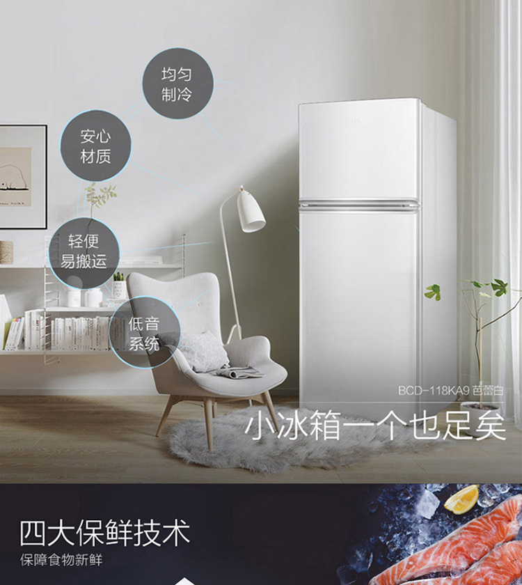 【下单前请先与客服联系】TCL 118升 小型双门电冰箱 LED照明 迷你小冰箱 冰箱小型便捷 节能低音(芭蕾白)BCD-118KA9
