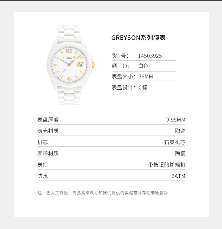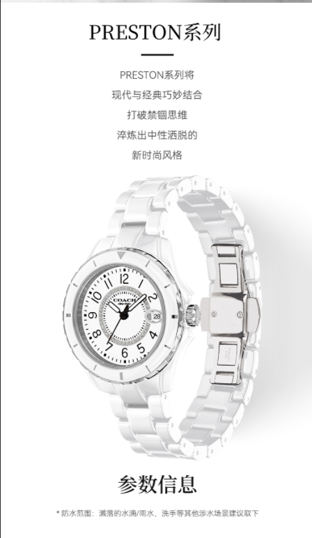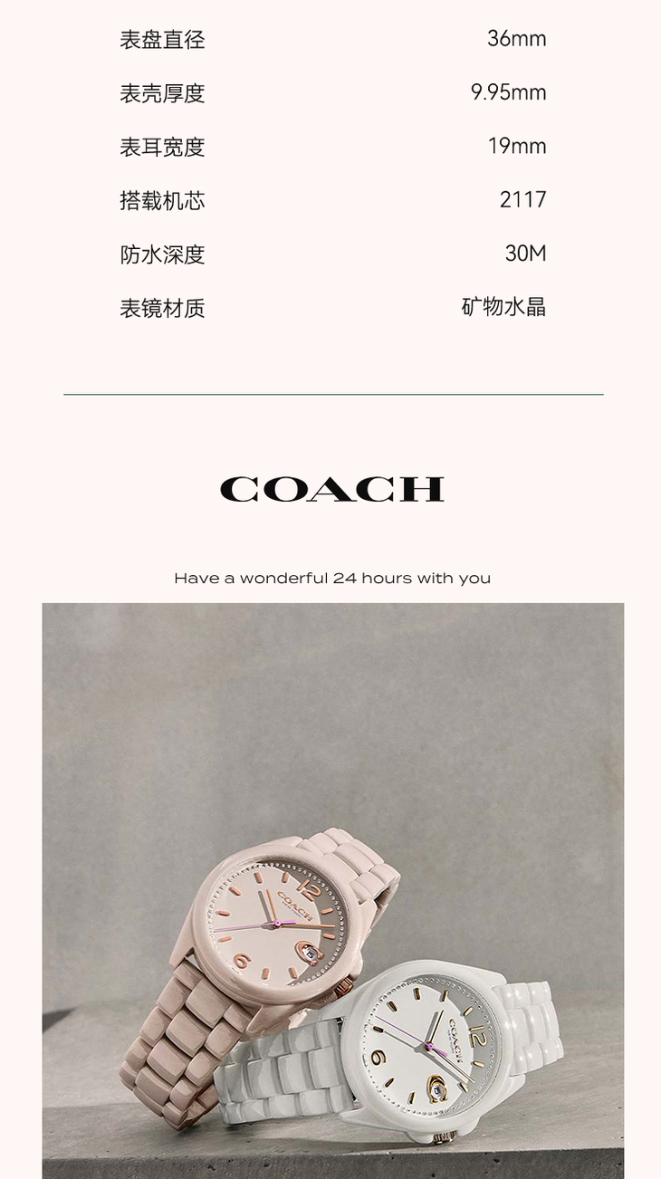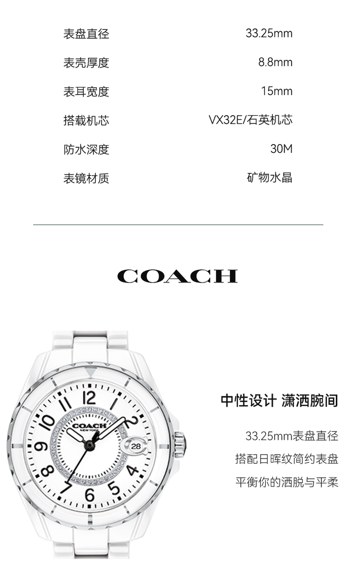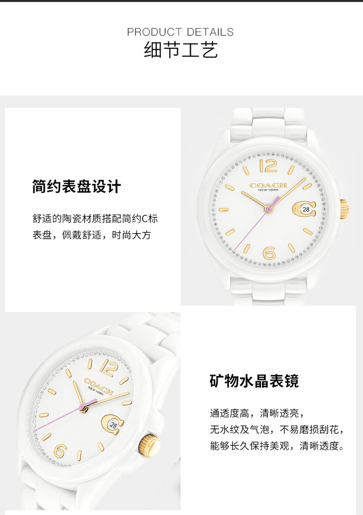 COACH蔻驰 GREYSON 腕表 石英机芯 陶瓷表带