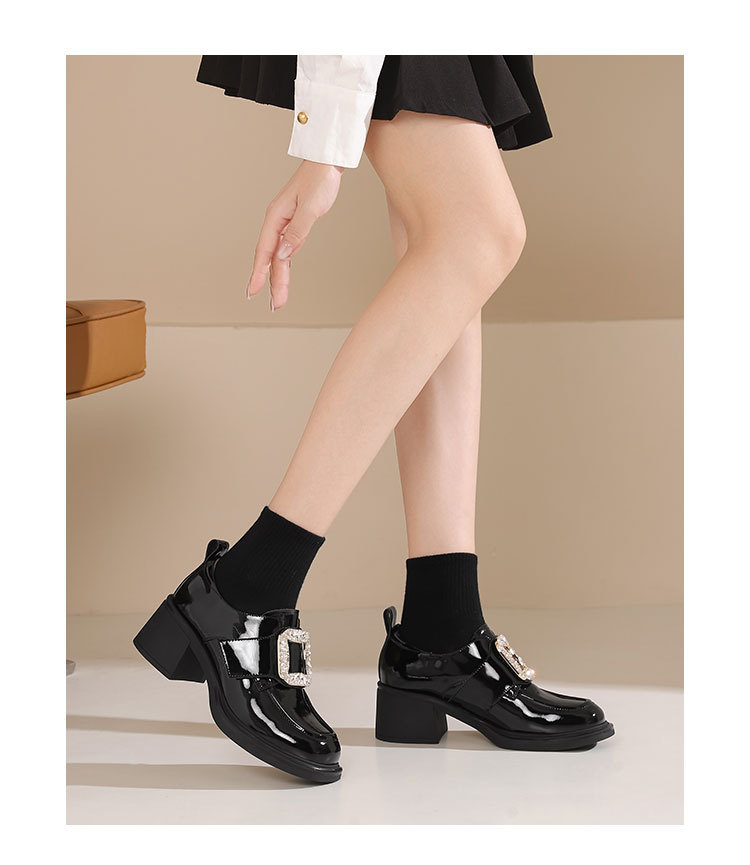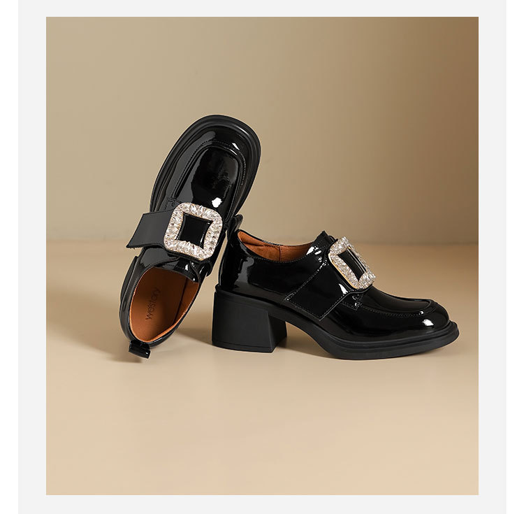 westory2023秋季新款粗跟中跟方头时尚百搭搭扣单鞋S23CE72031