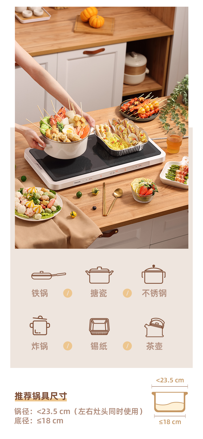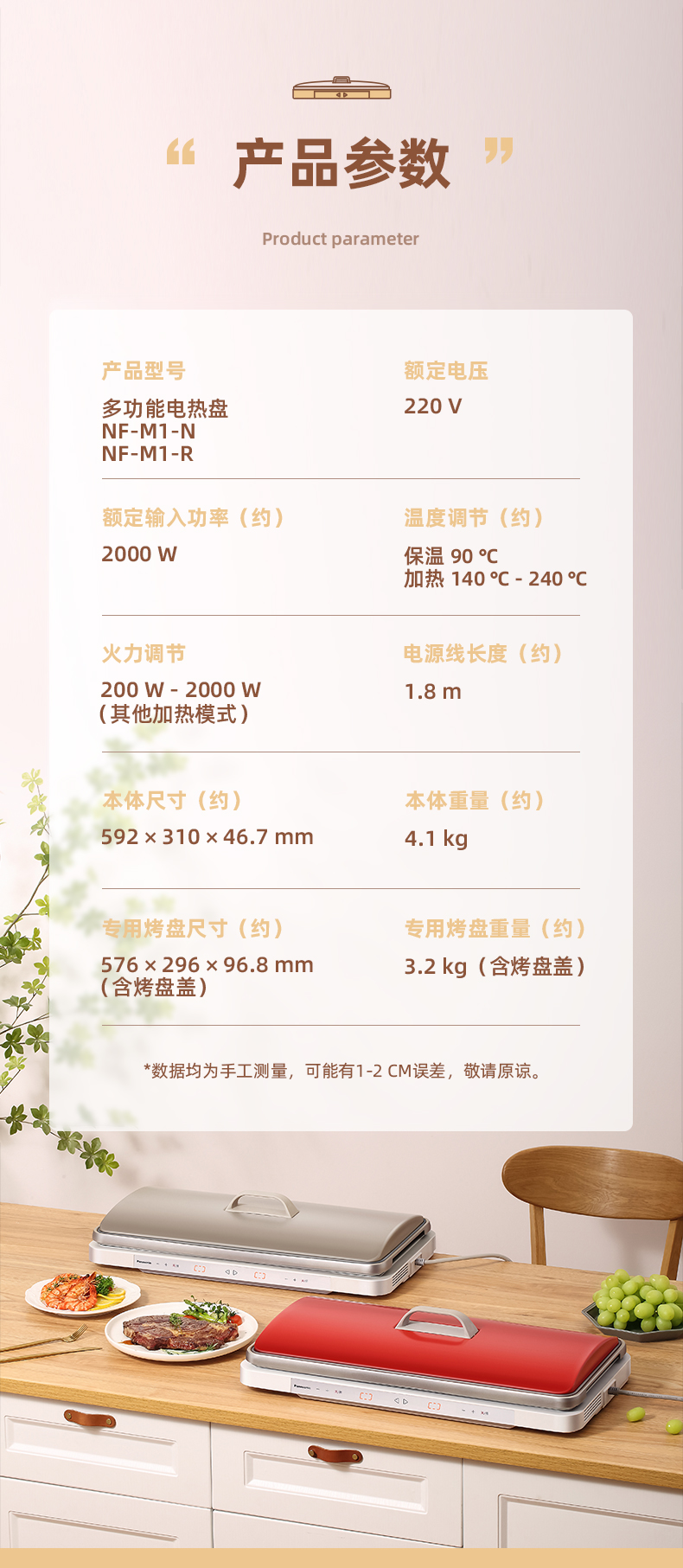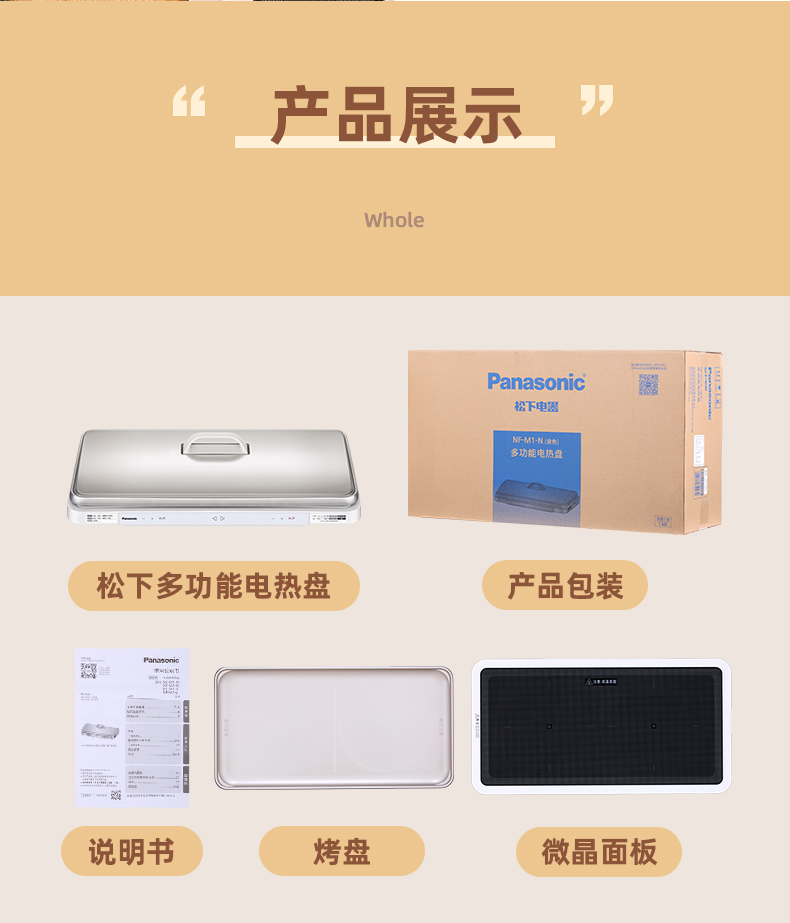 松下聚嗨盘NF-M1-W多功能料理锅电烤盘家用烤肉盘烧烤火锅一体聚嗨锅