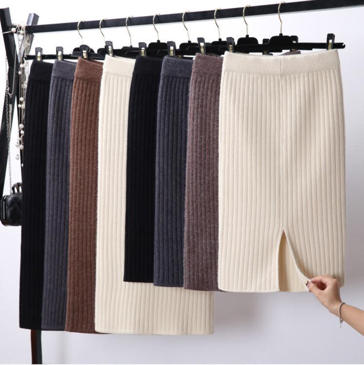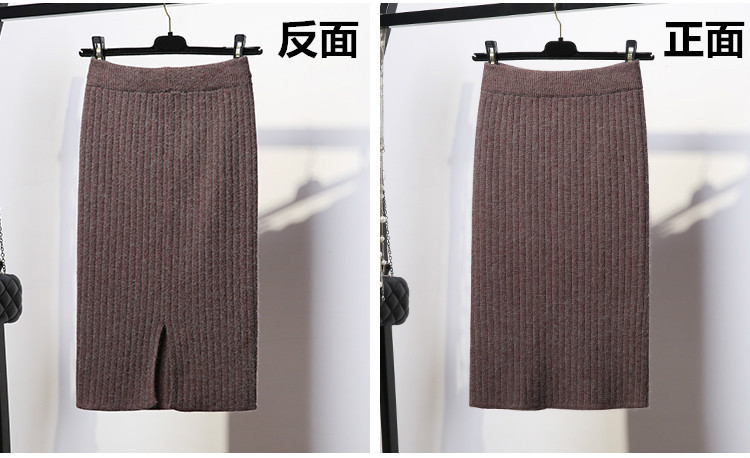 加厚开叉针织半身裙包臀一步裙女中长款秋冬长裙毛线裙子