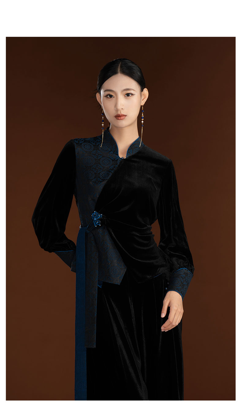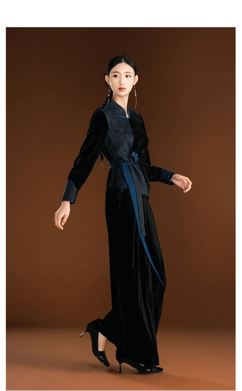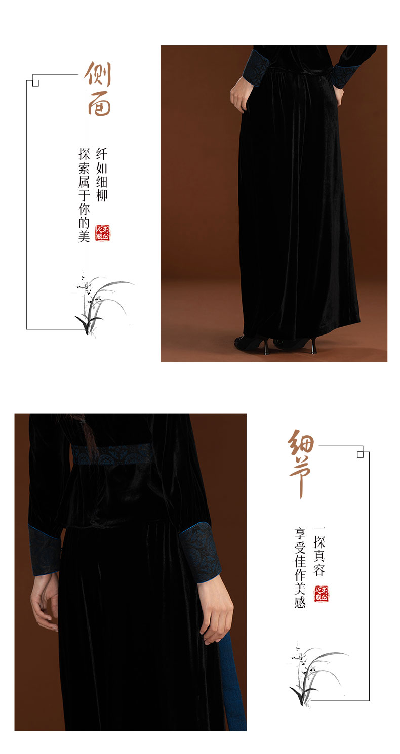 吉祥衣家弹力时尚气质新中式提花阔腿裤云容漫卷裤子