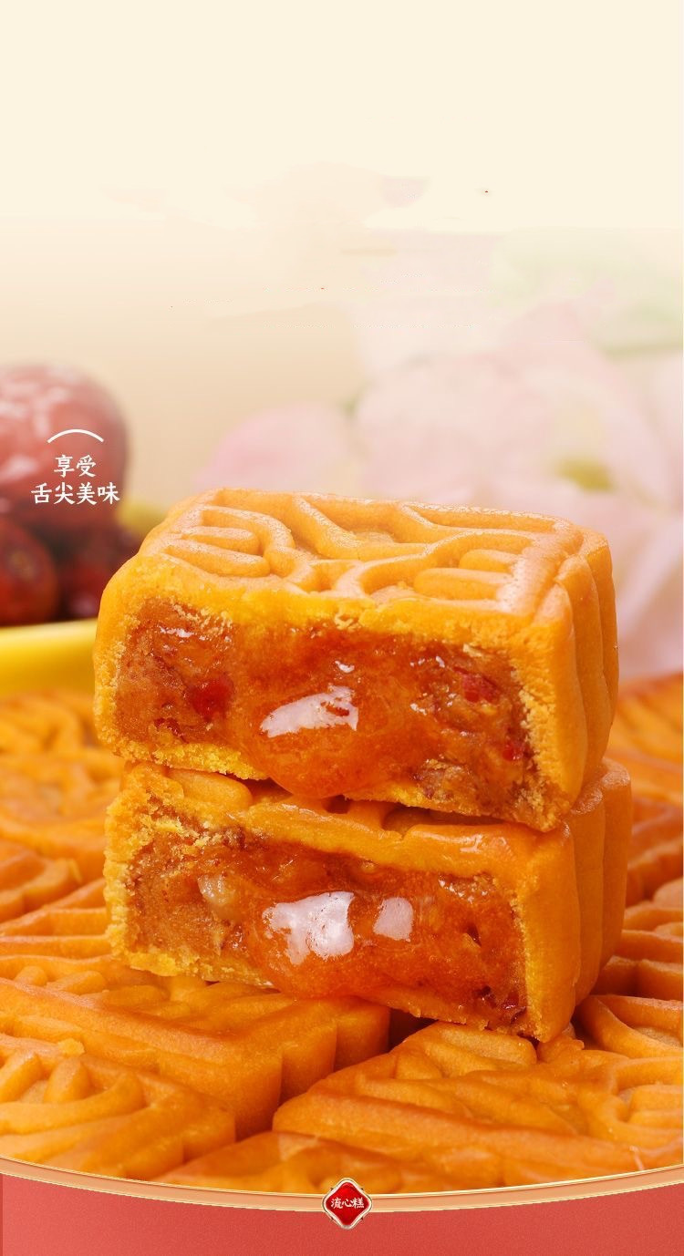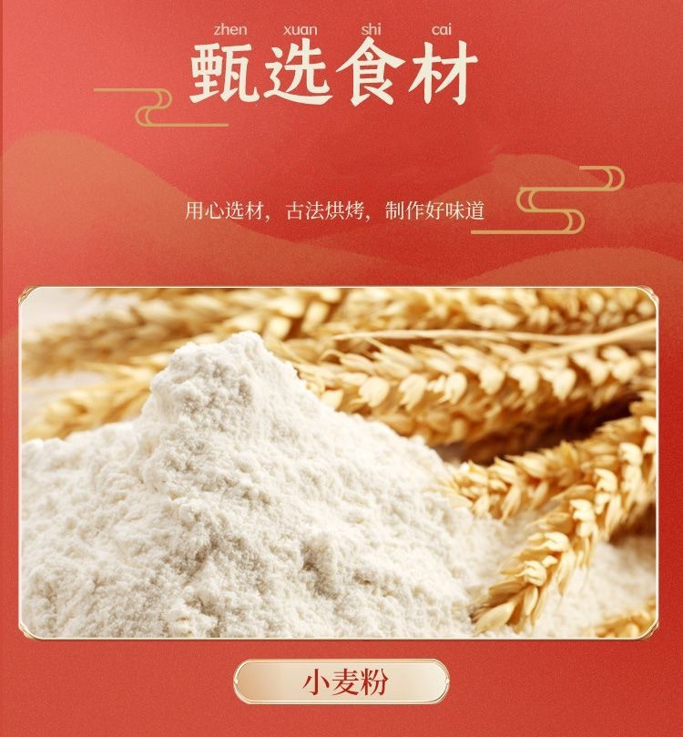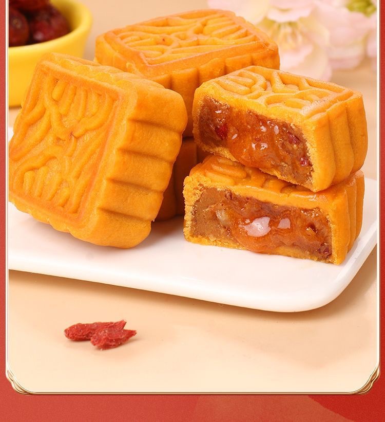 配料:小麦粉、白砂糖、食用植物油、麦芽糖浆、豌豆、绿豆、生活饮用水、枸杞、红枣、食品添加剂(B-胡萝卜素、山梨酸钾)