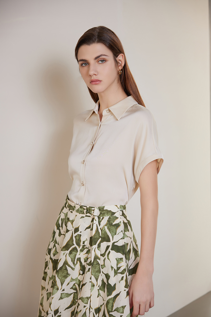 【桑蚕丝短袖衬衫】24年春夏女士新品薄款纯色雪纺真丝上衣