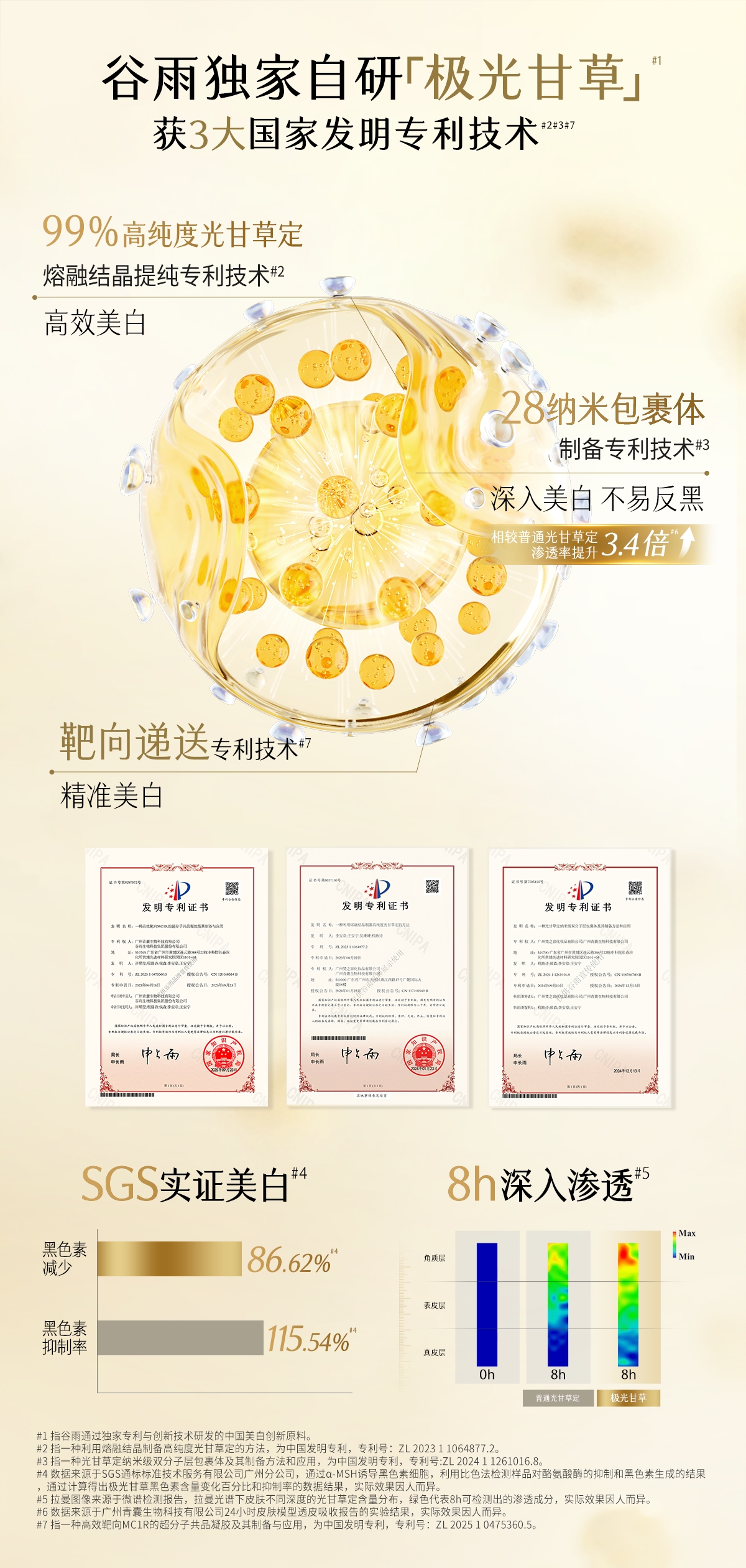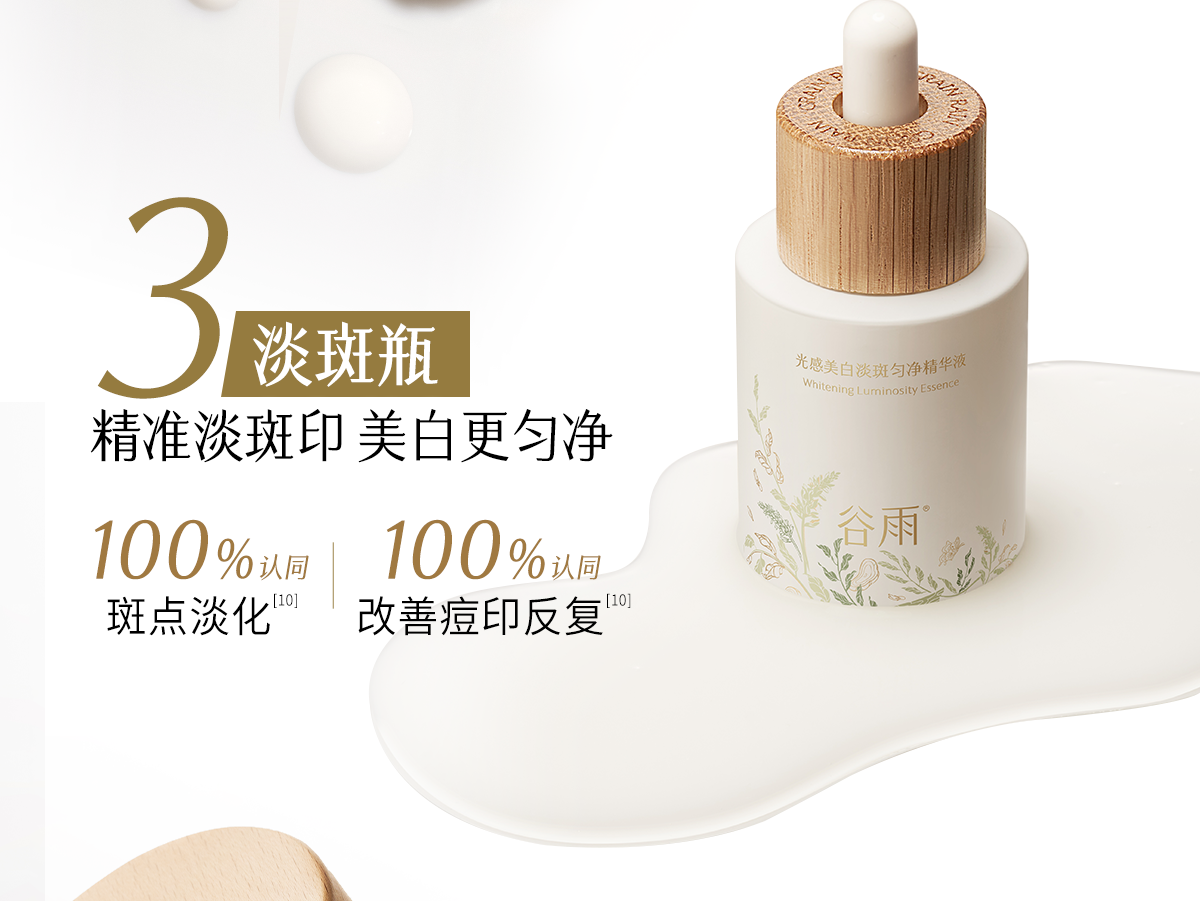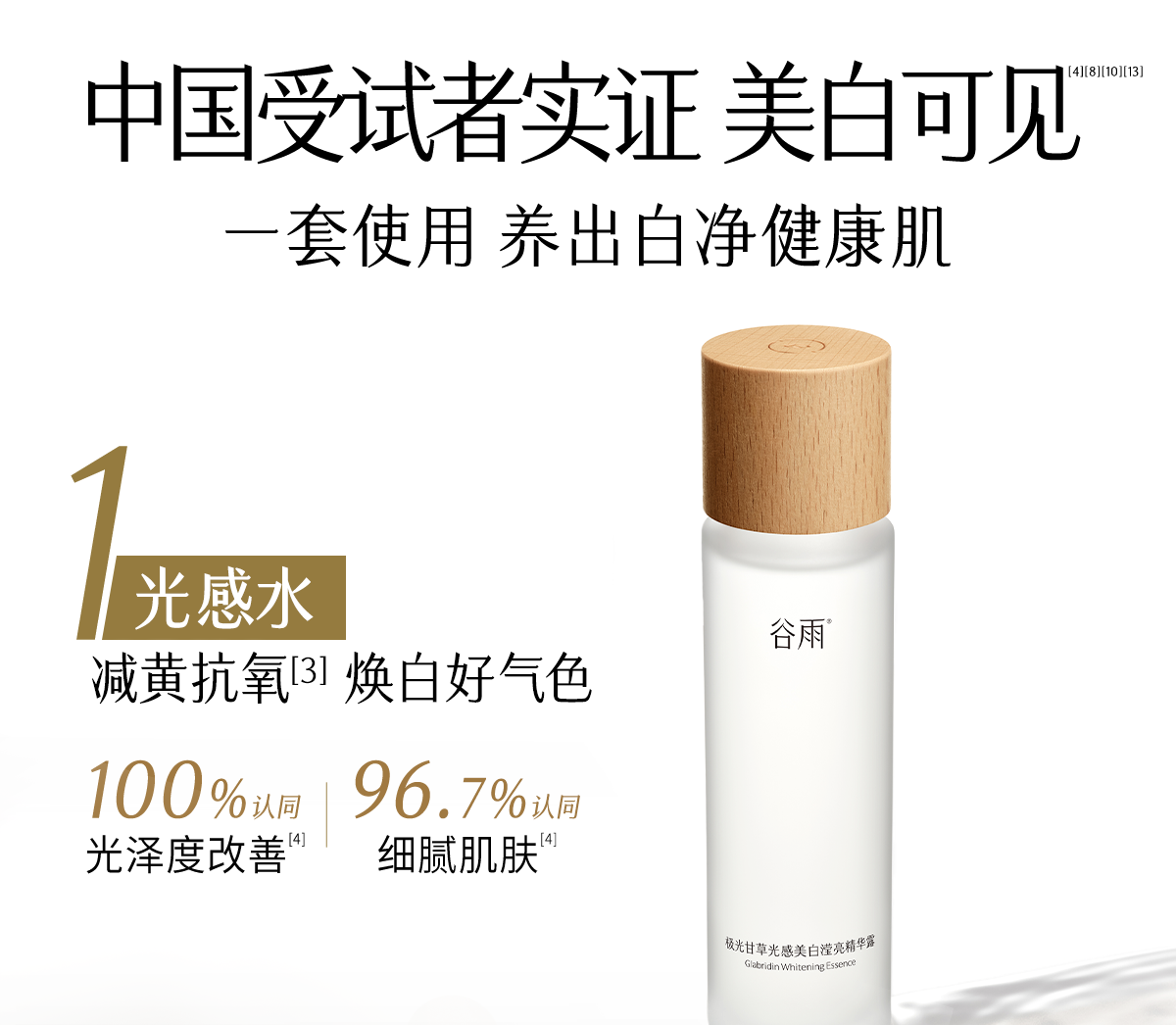 - 谷雨,更适合中国人肤质的植萃美白。专研中华珍稀美白植萃光甘草定,深入研究中国人肤质特点,打造中国女性独有的仙气白。