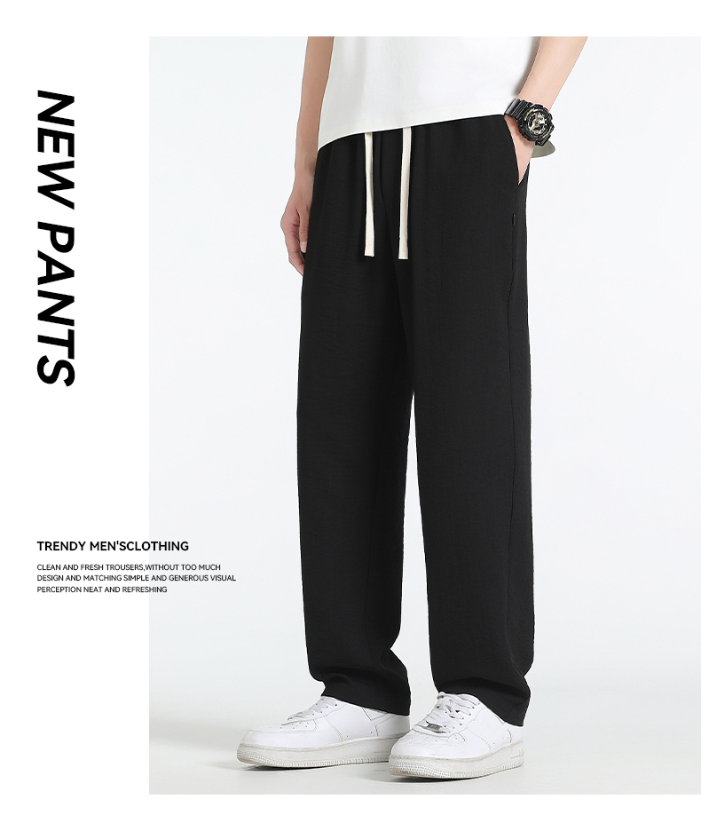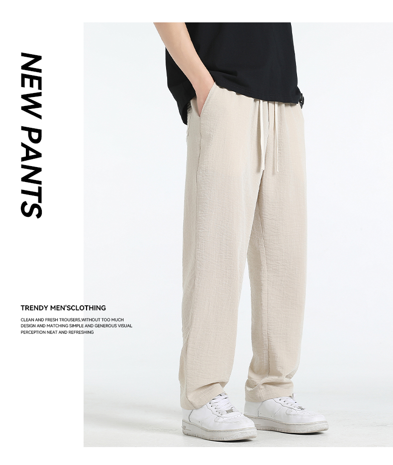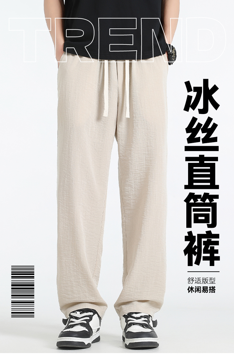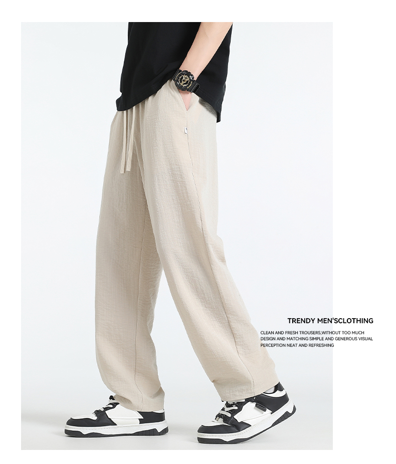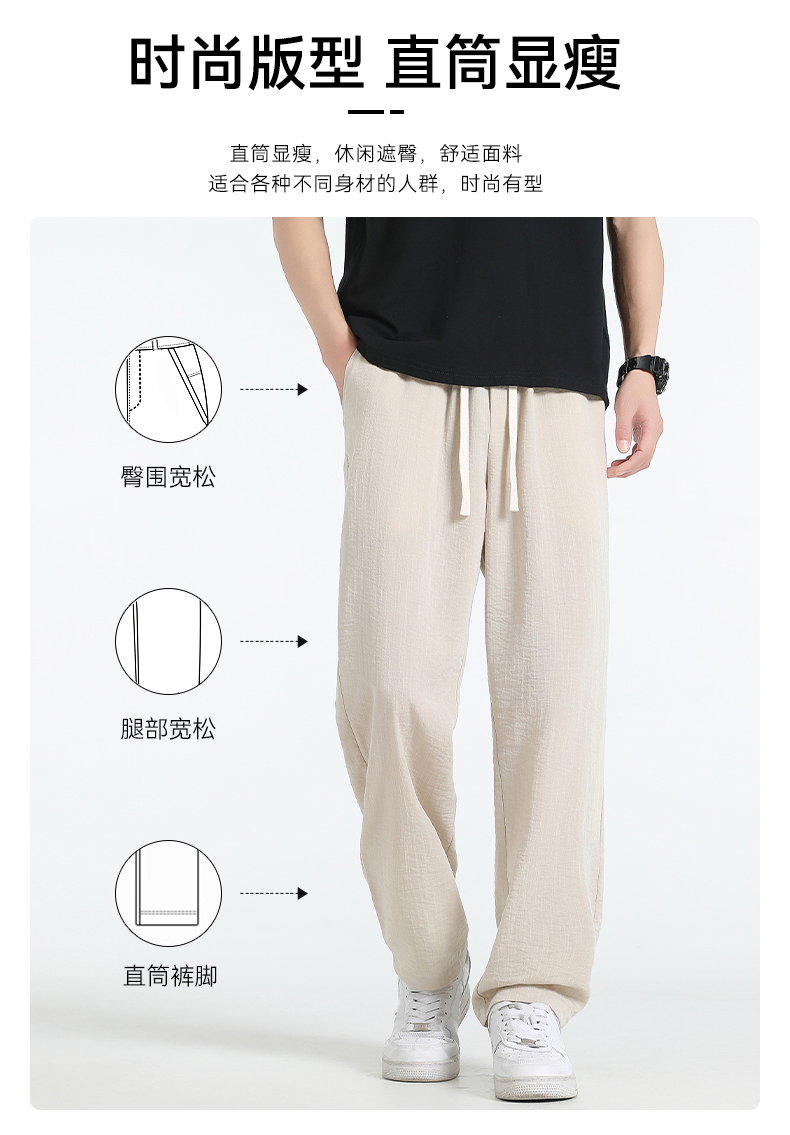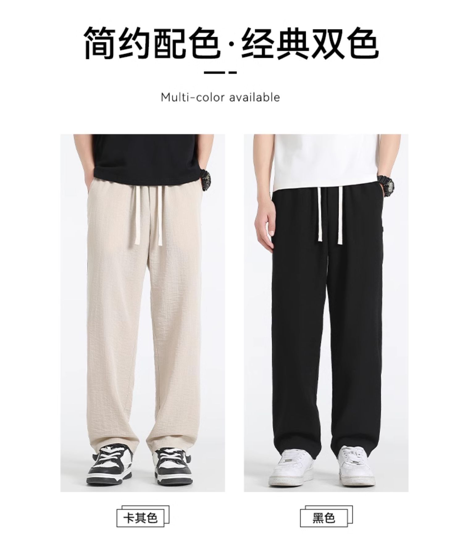 回力冰丝裤男夏季薄款2025运动休闲透气长裤仿亚麻直筒宽松裤子男