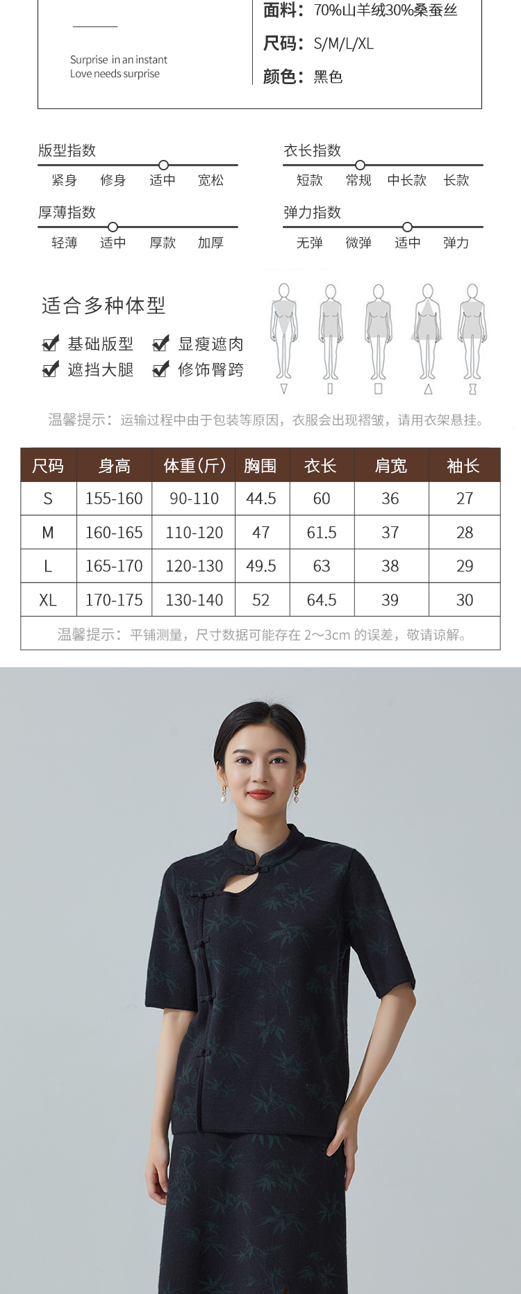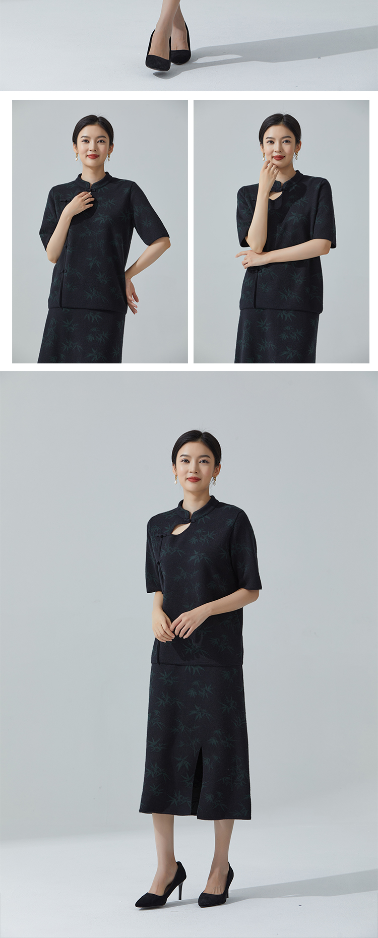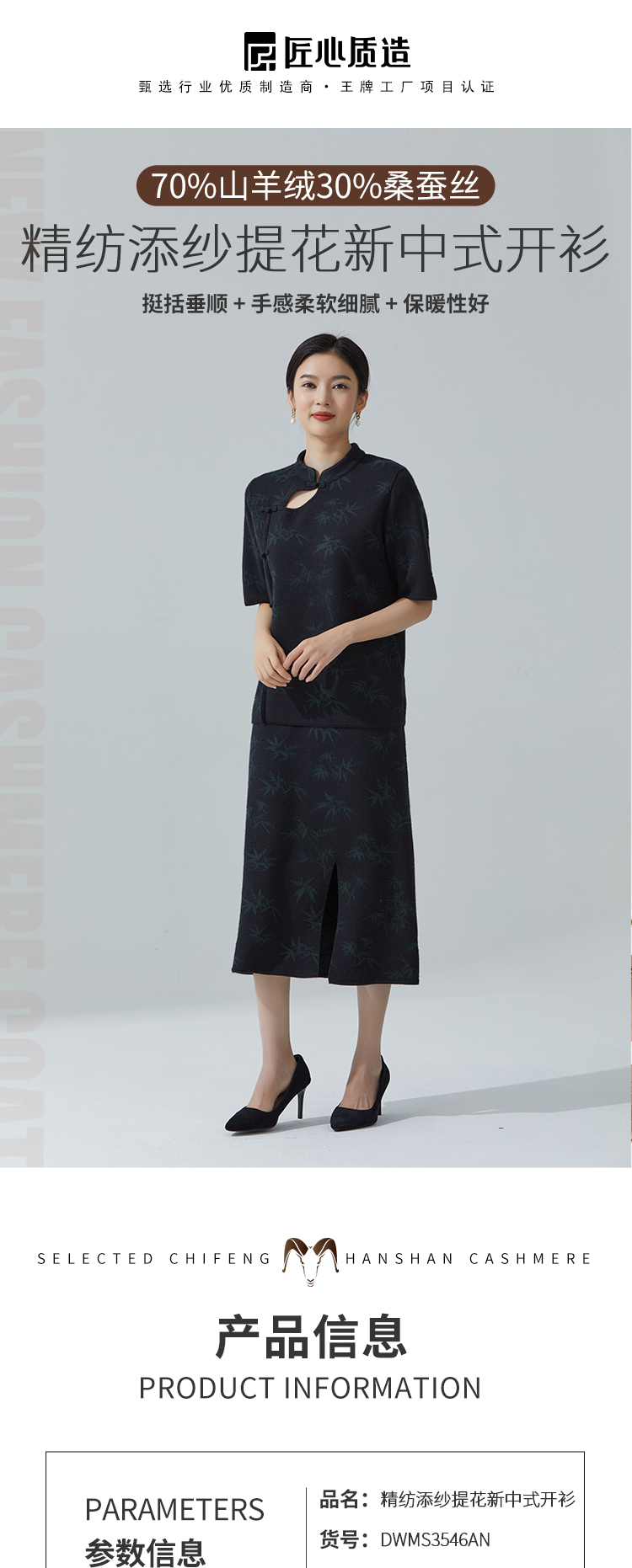东黎 • 丝绒款新中式女士针织精纺斜襟复古中国风提花短袖 3546