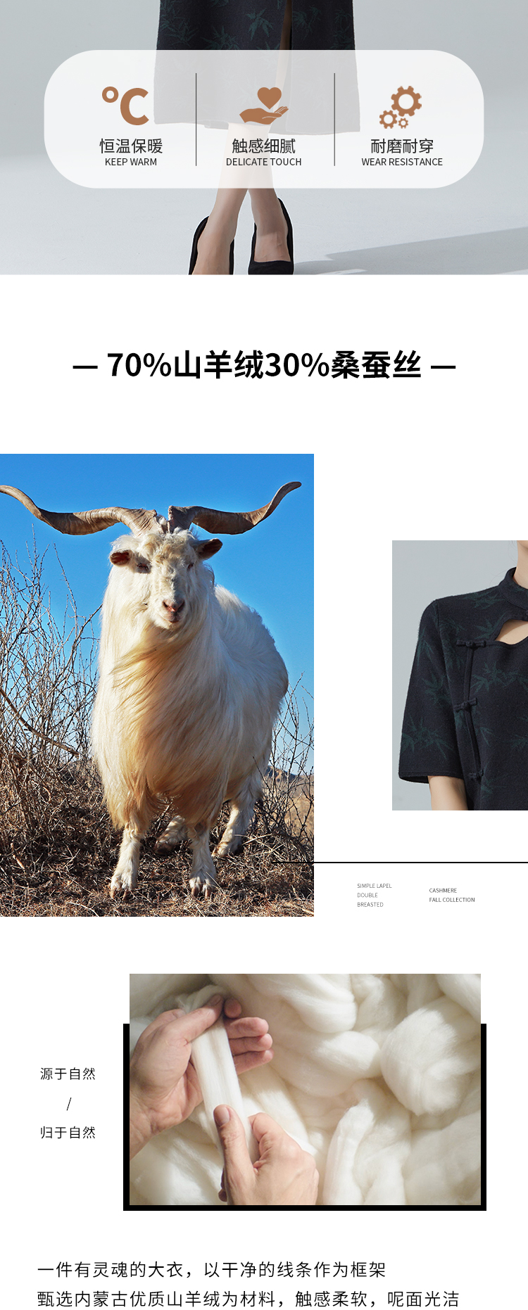 东黎羊绒是赤峰东荣集团自主品牌,自有牧场/羊绒制品全产业链优势,实现了羊绒从“牧场”到“商场”的华丽转变。