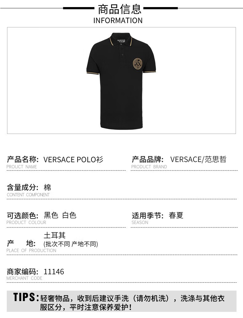 【特惠秒】VERSACE 范思哲 男士刺绣字母logo夏季短袖Polo T恤 11146