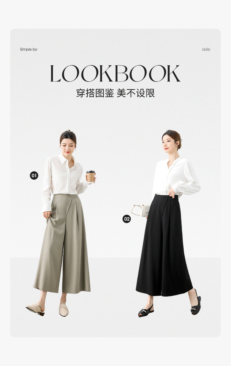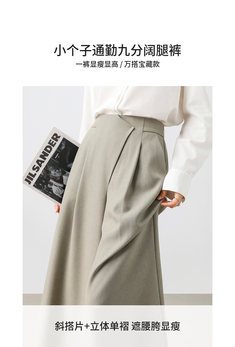 【内购】小个子通勤梨型身材遮肉显瘦松紧高腰九分阔腿裤-151K54738