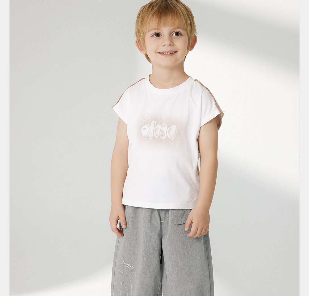 英氏儿童裤子夏季薄透气宽松纯棉2025新款男童七分裤YRKZJ2R057A