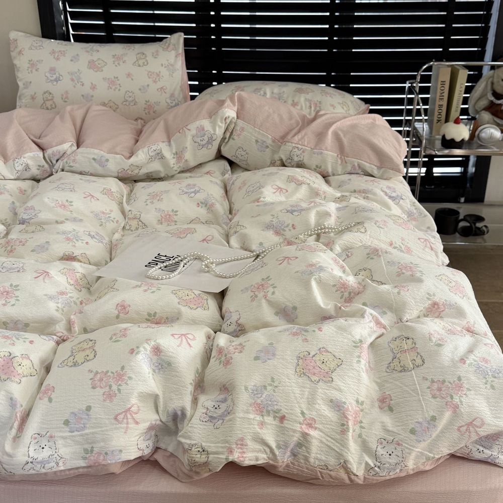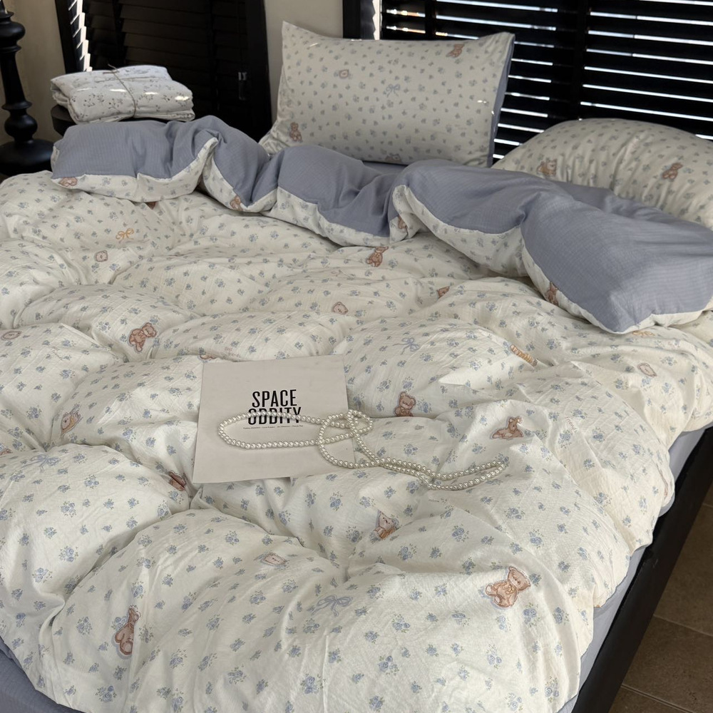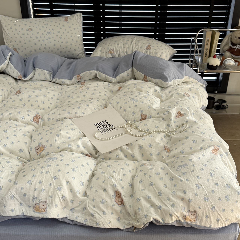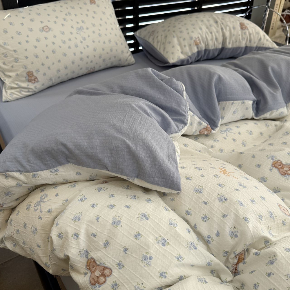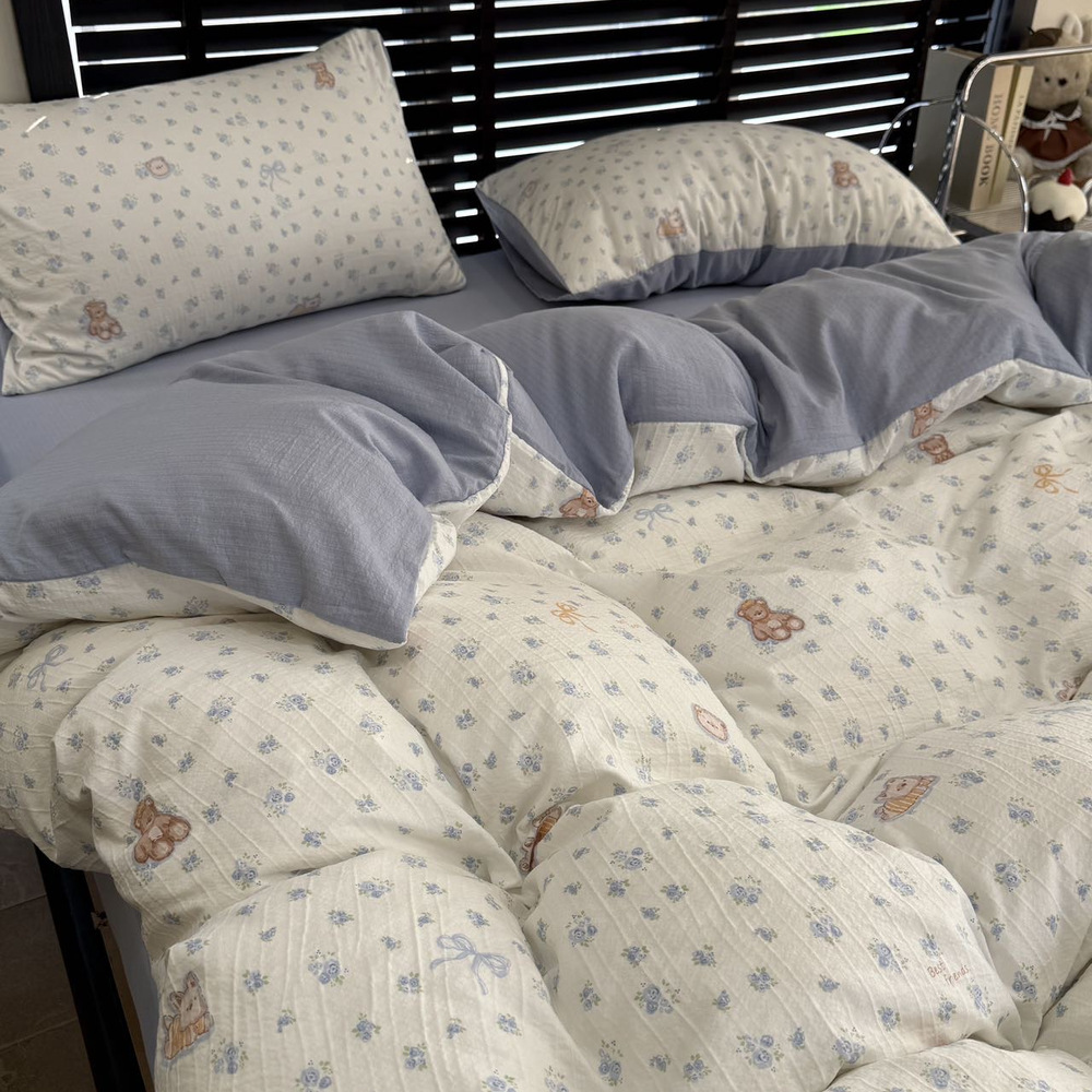 韩国有氧沐纱棉四件套亲肤柔软四季款裸睡双层纱套件