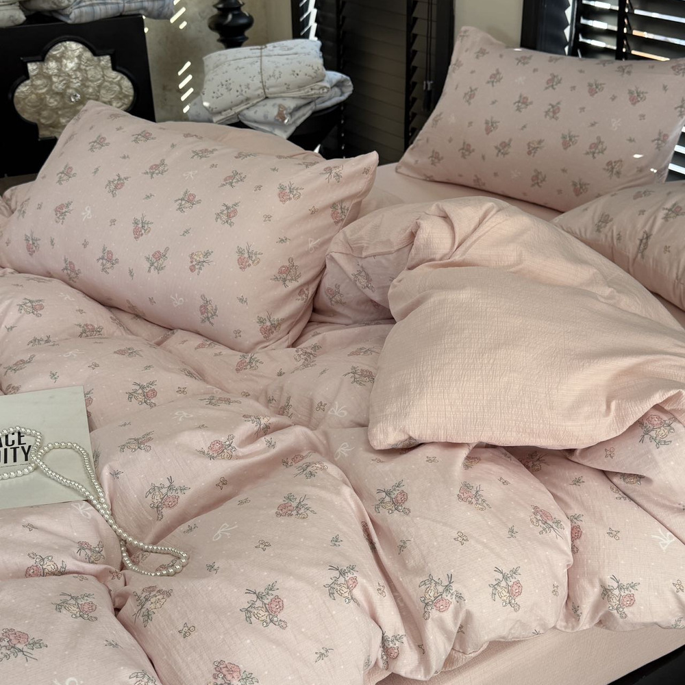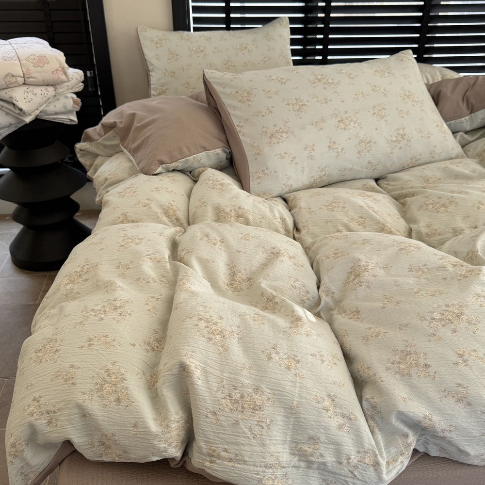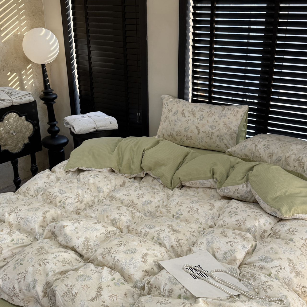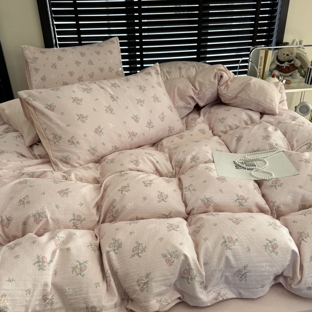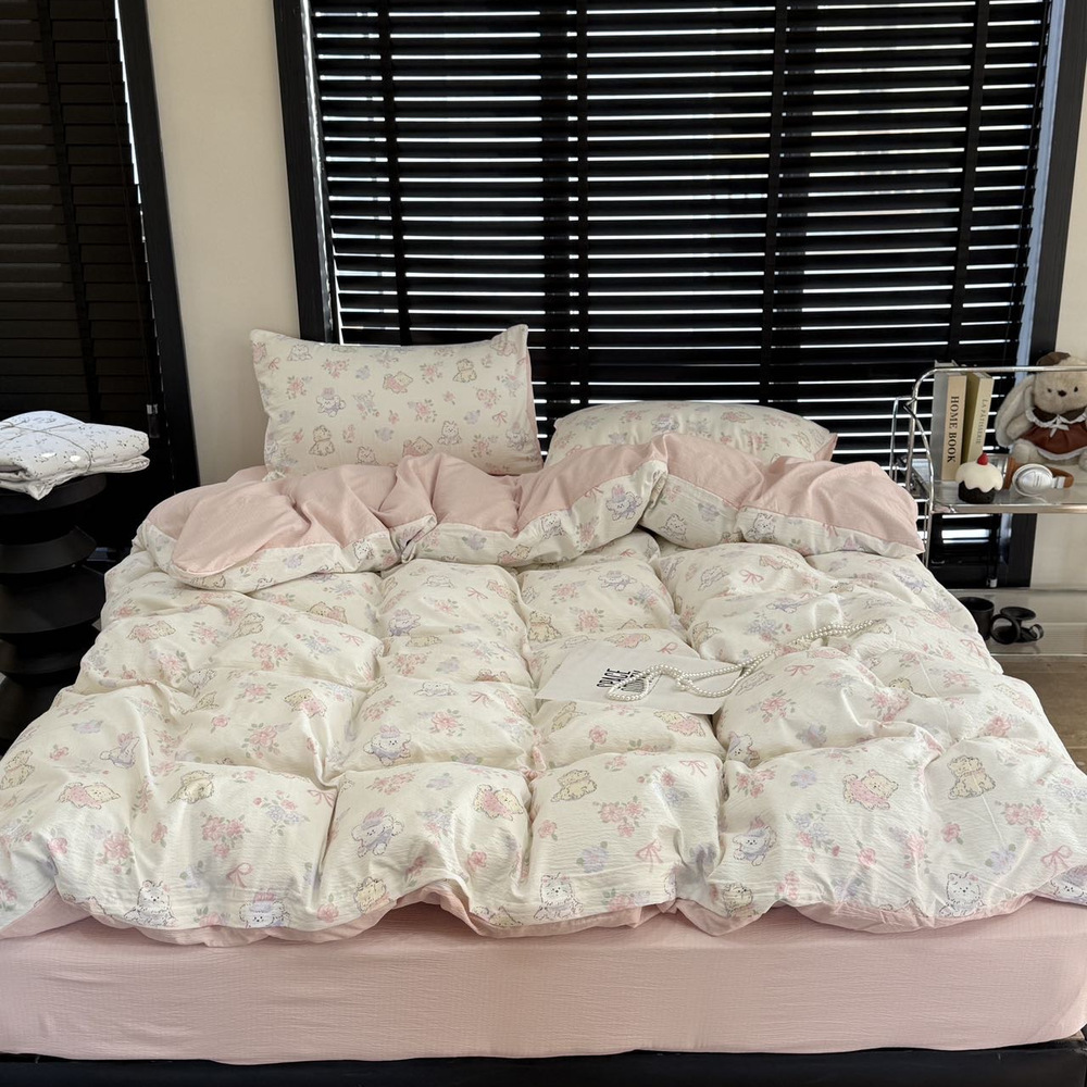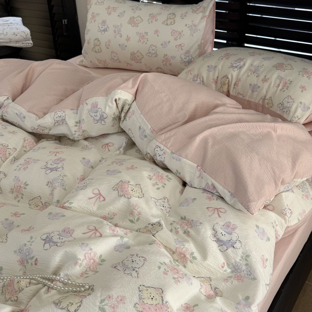 韩国有氧沐纱棉四件套亲肤柔软四季款裸睡双层纱套件