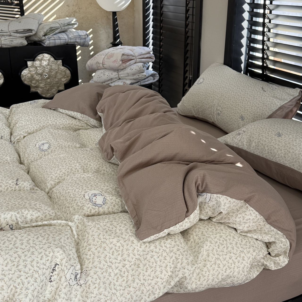 马年首发【韩国KR原创沐纱棉四件套】马年床品换新,闭眼入这款沐纱棉四件套就对了! ✅️匹马棉材质品质超绝,强韧耐用又细腻亲肤 ✅️透气排湿功能超强大,能为你打造一个清爽的睡眠小环境 、 ✅️独特的马年图案,不仅好看还寓意着新岁好运连连。不管是放在主卧彰显品质,还是布置在客房待客,都非常合适。 赶紧入手一套,开启马年的美好睡眠时光,犹豫就会败北哦!