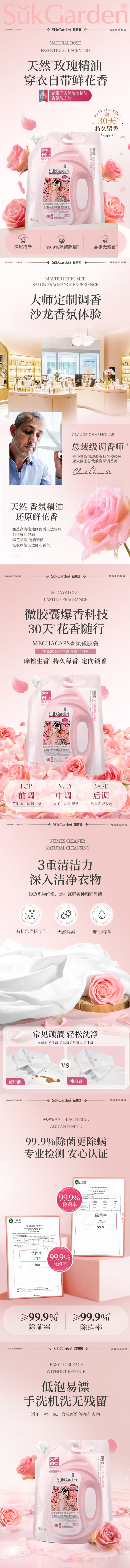 蔬果园天然玫瑰精油香氛洗衣液袋装1kg-5251 爆香科技30天花香随行