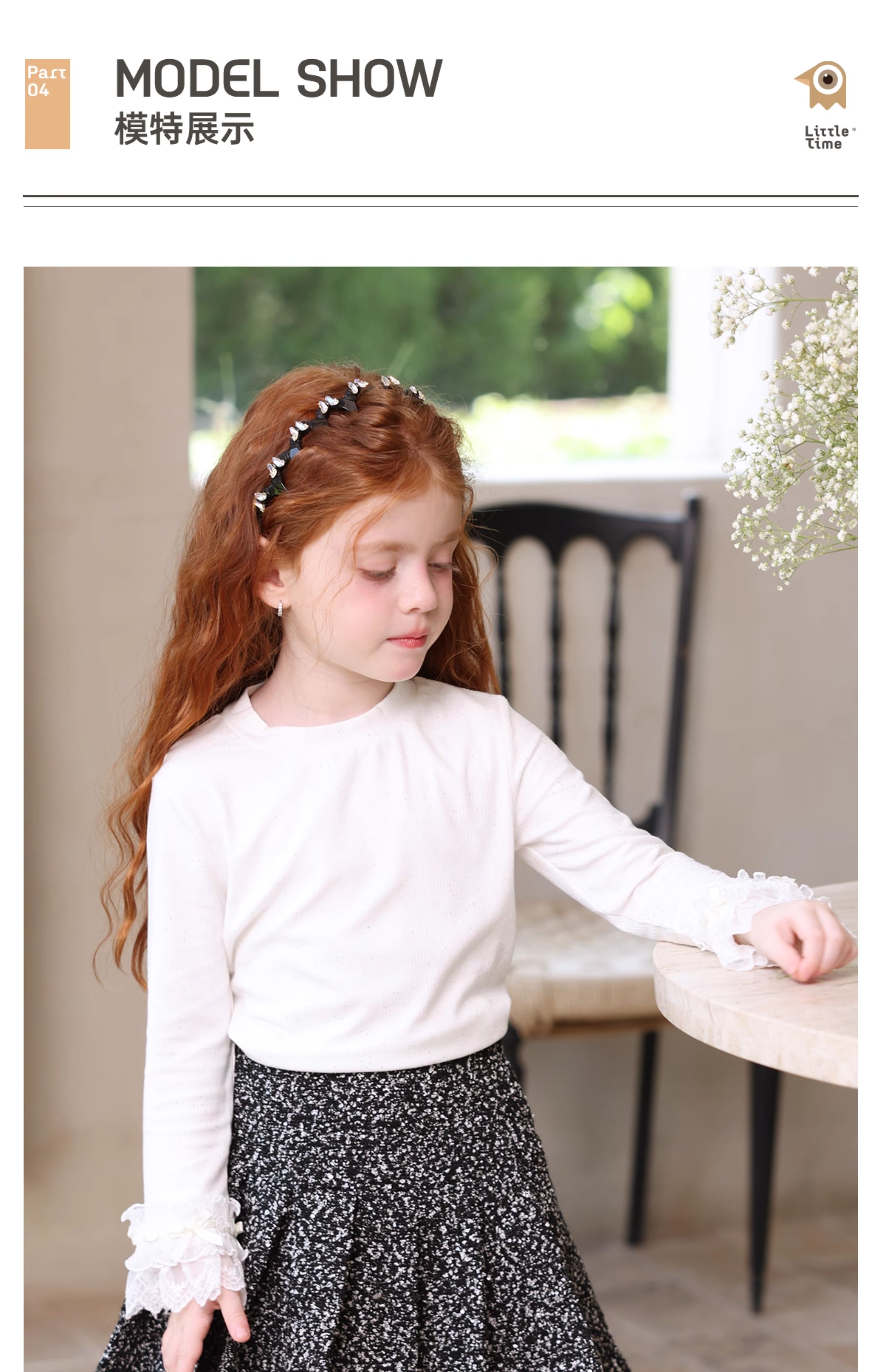 littletime女童打底衫2025新款儿童纯色百搭长袖T恤女孩上衣
