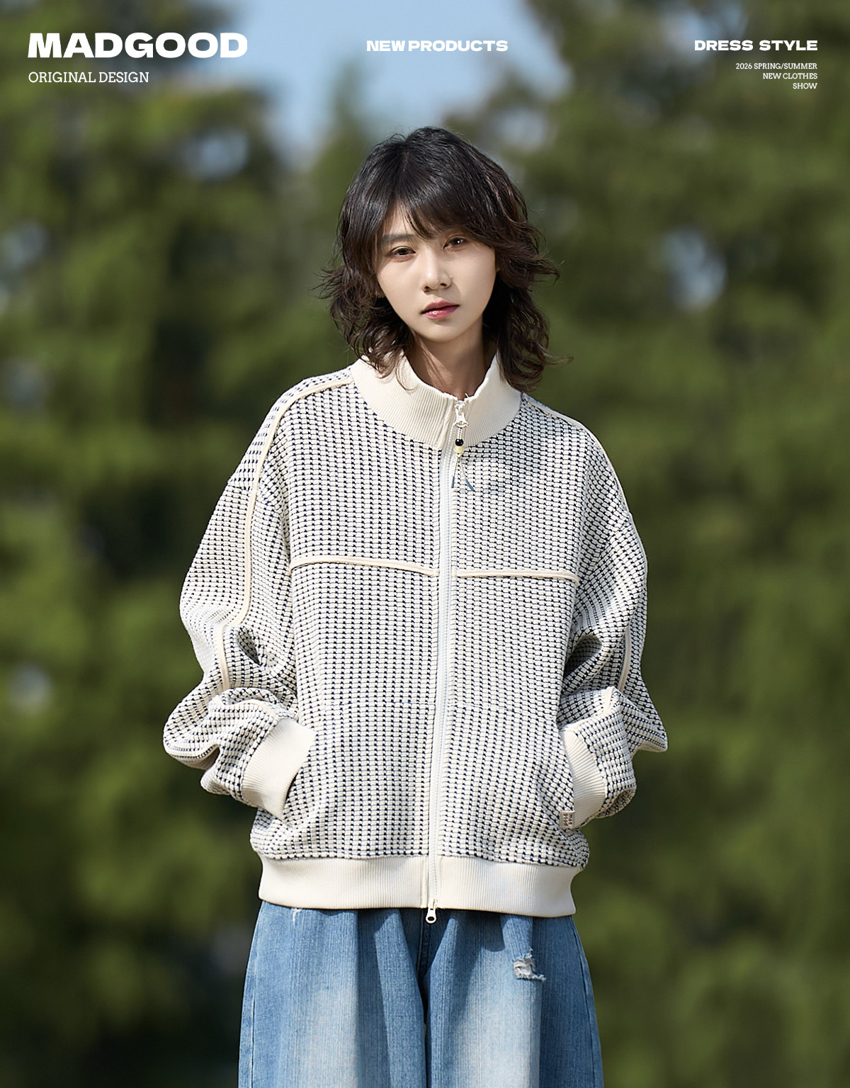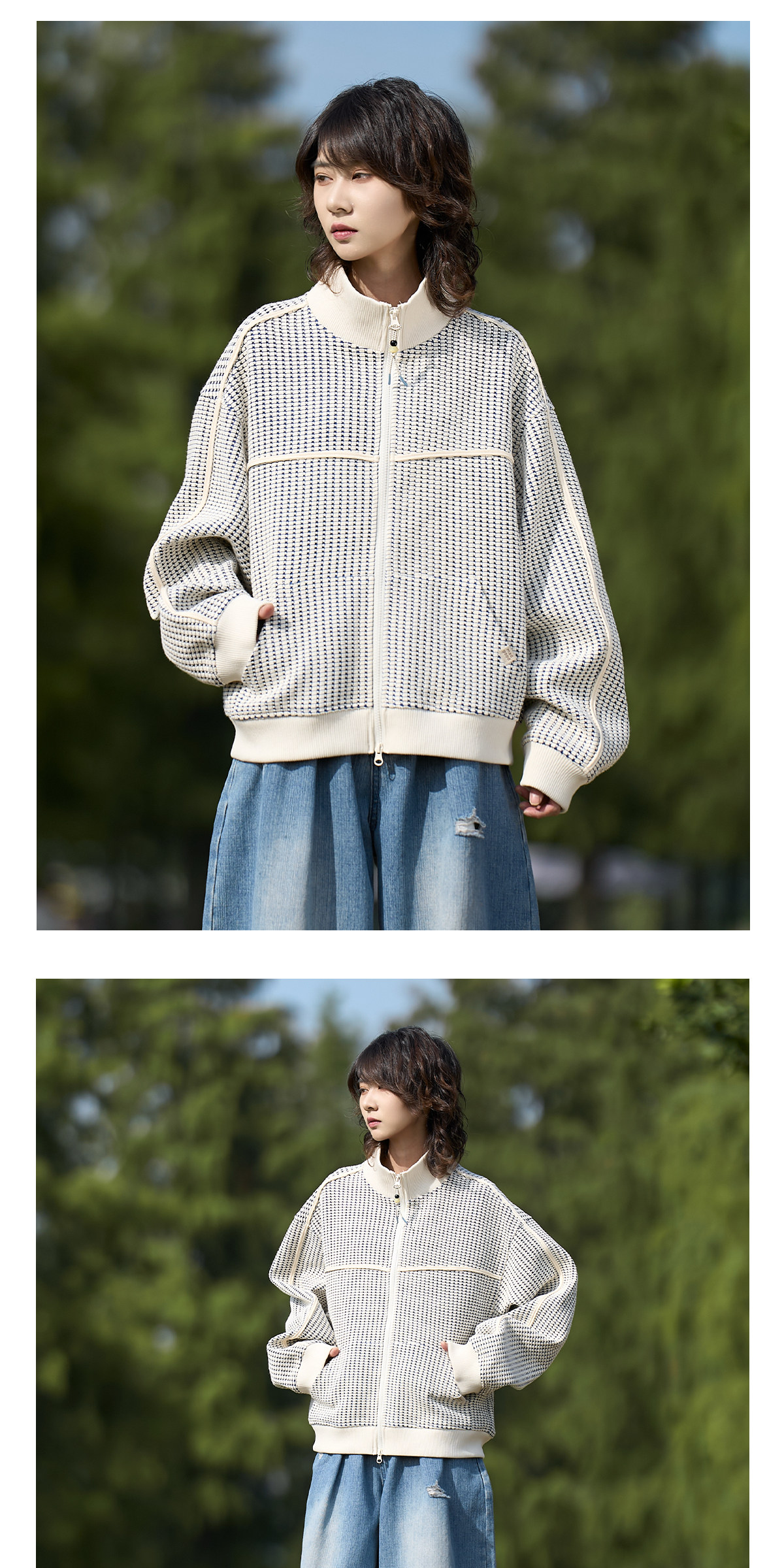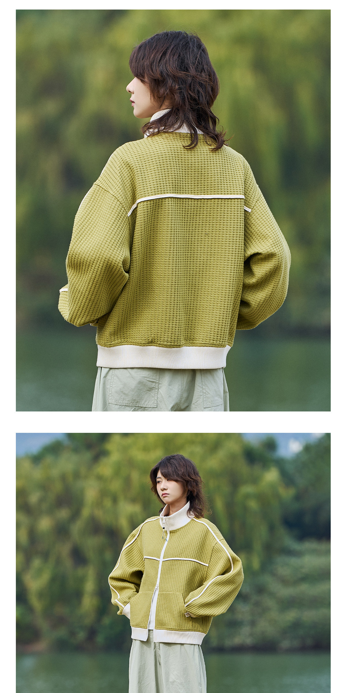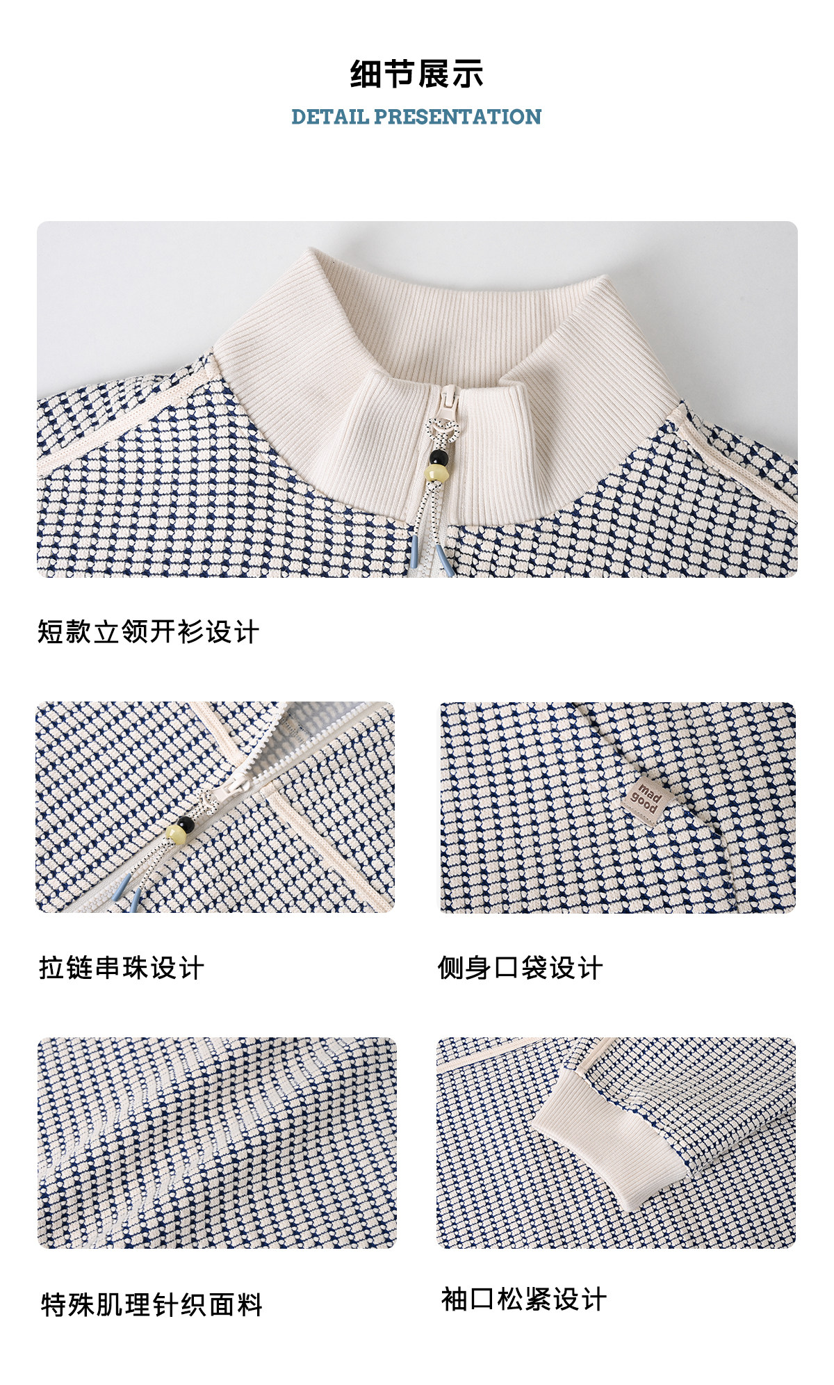 马得工地/MDGDWY212107/肌理撞色立领开衫卫衣