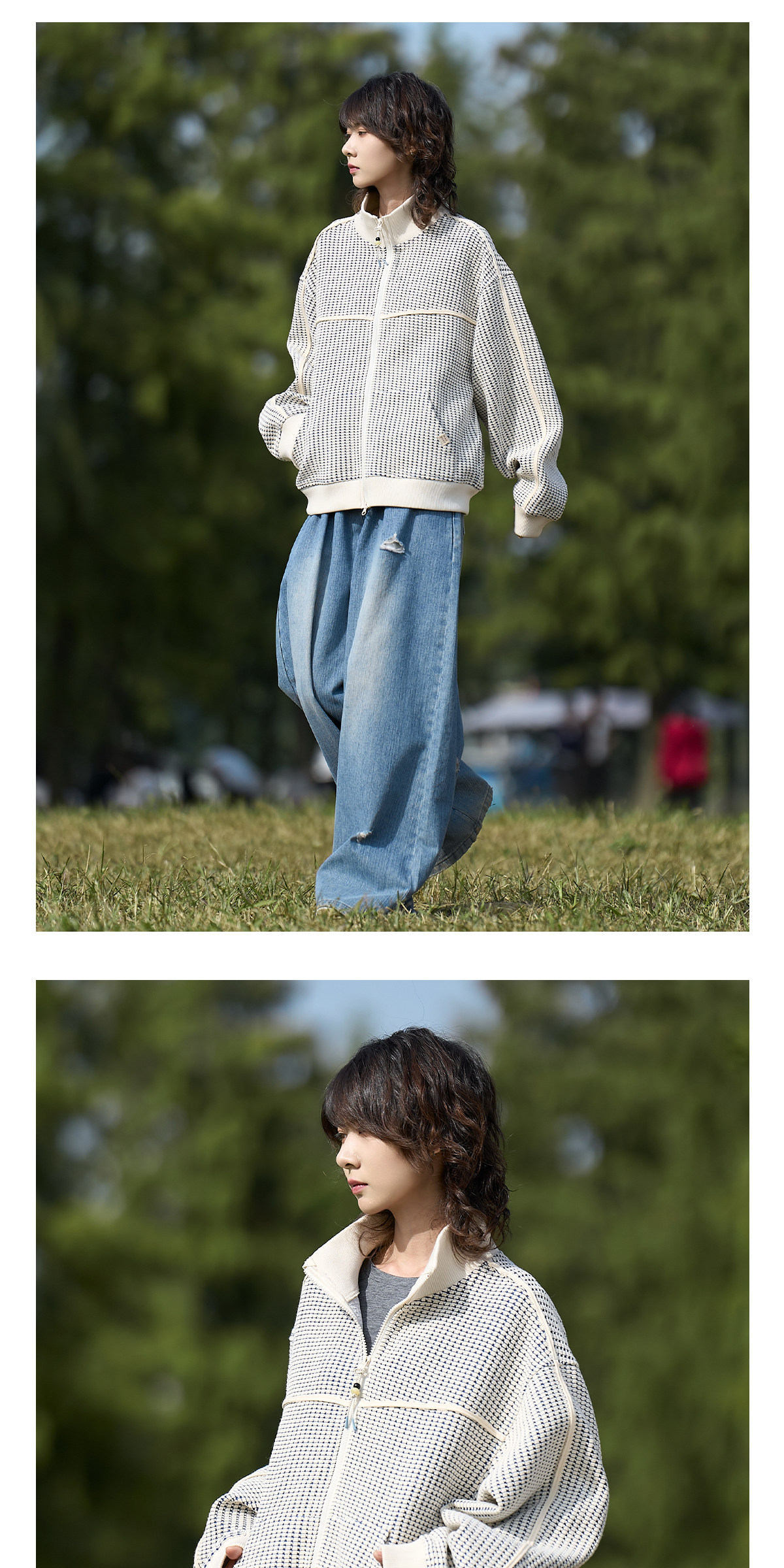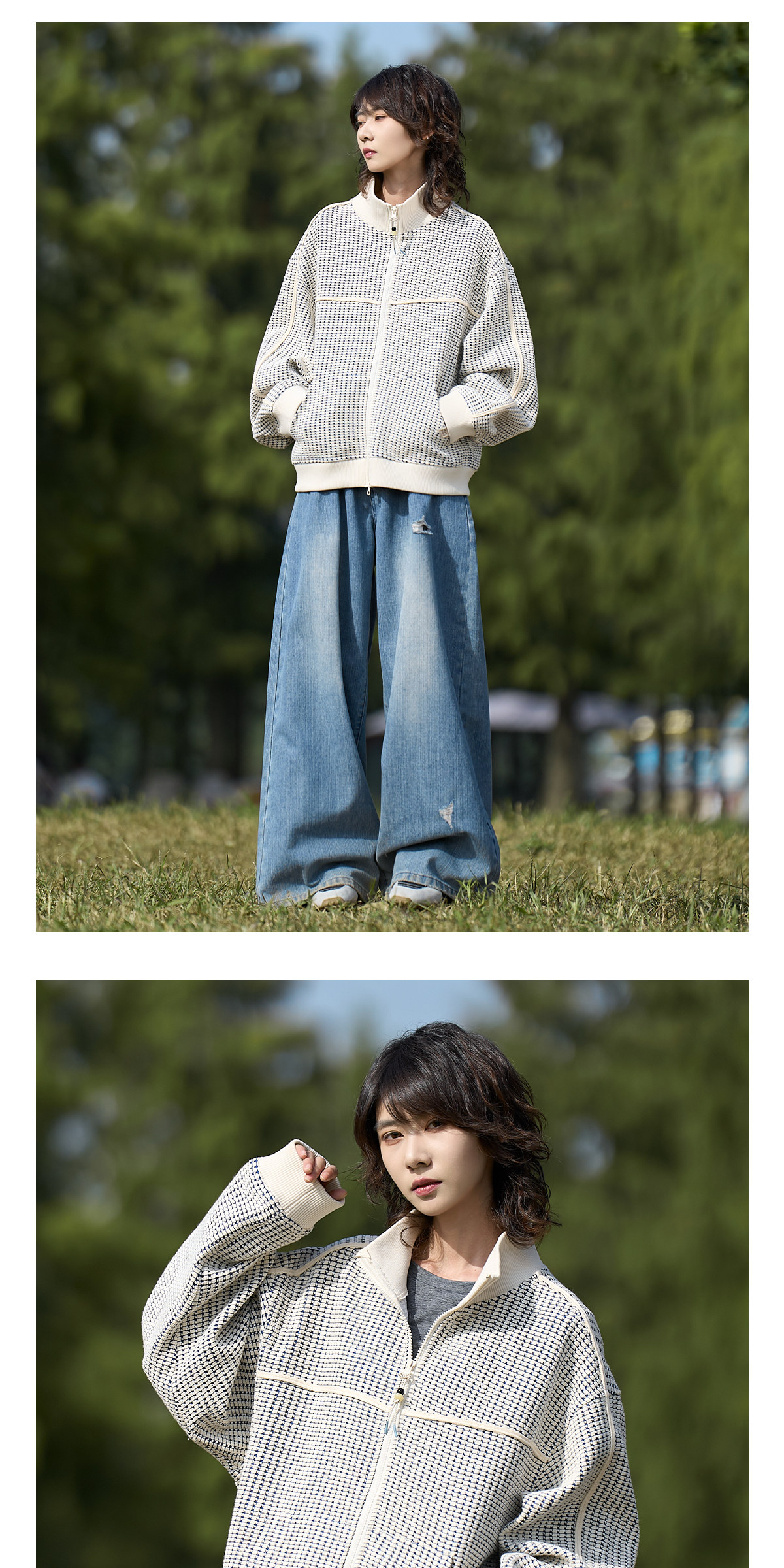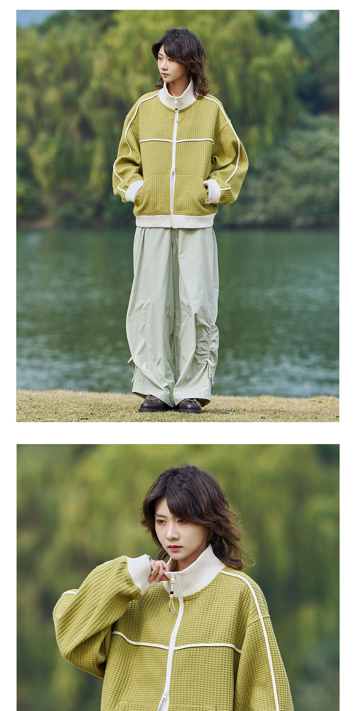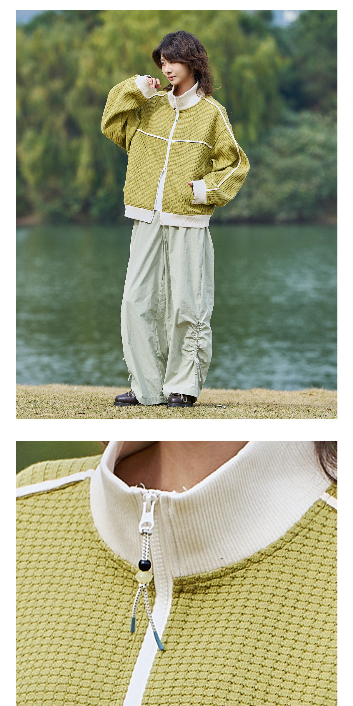 马得工地/MDGDWY212107/肌理撞色立领开衫卫衣