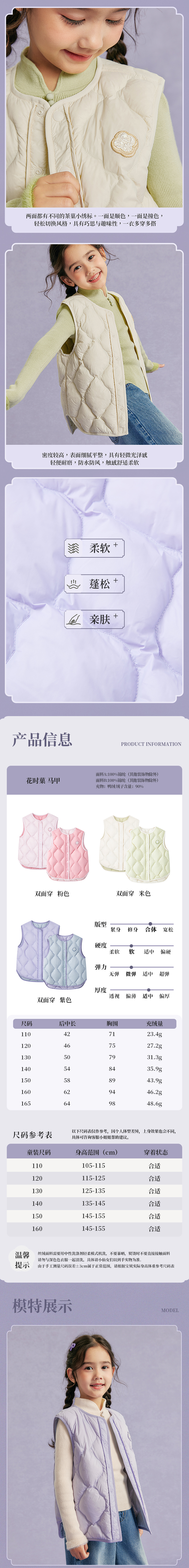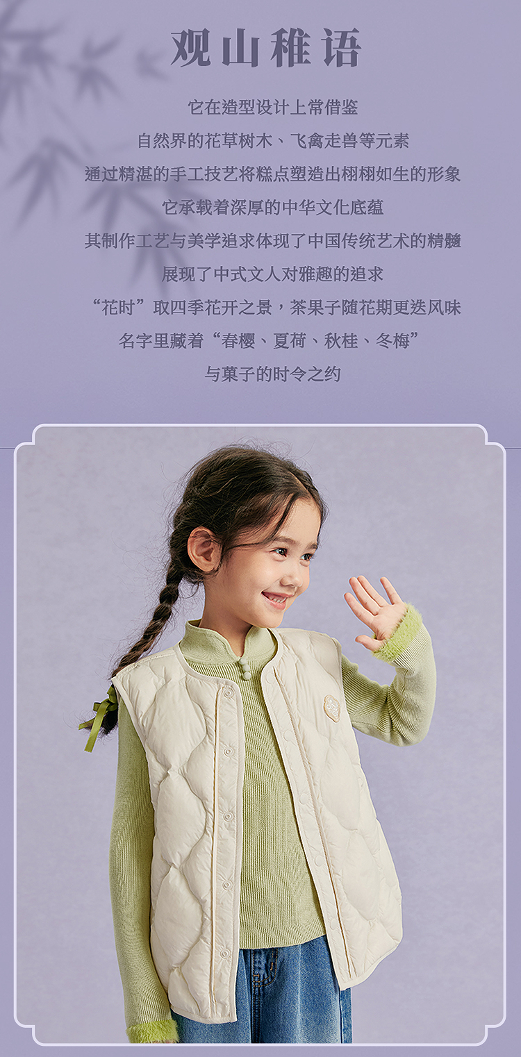 笛莎Deesha观山见女童马甲2025秋女童羽绒马甲
