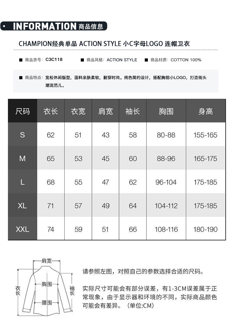 日版 CHAMPION 冠军卫衣 经典单品 ACTION STYLE 小C字母LOGO 连帽衫 男女同款 S码