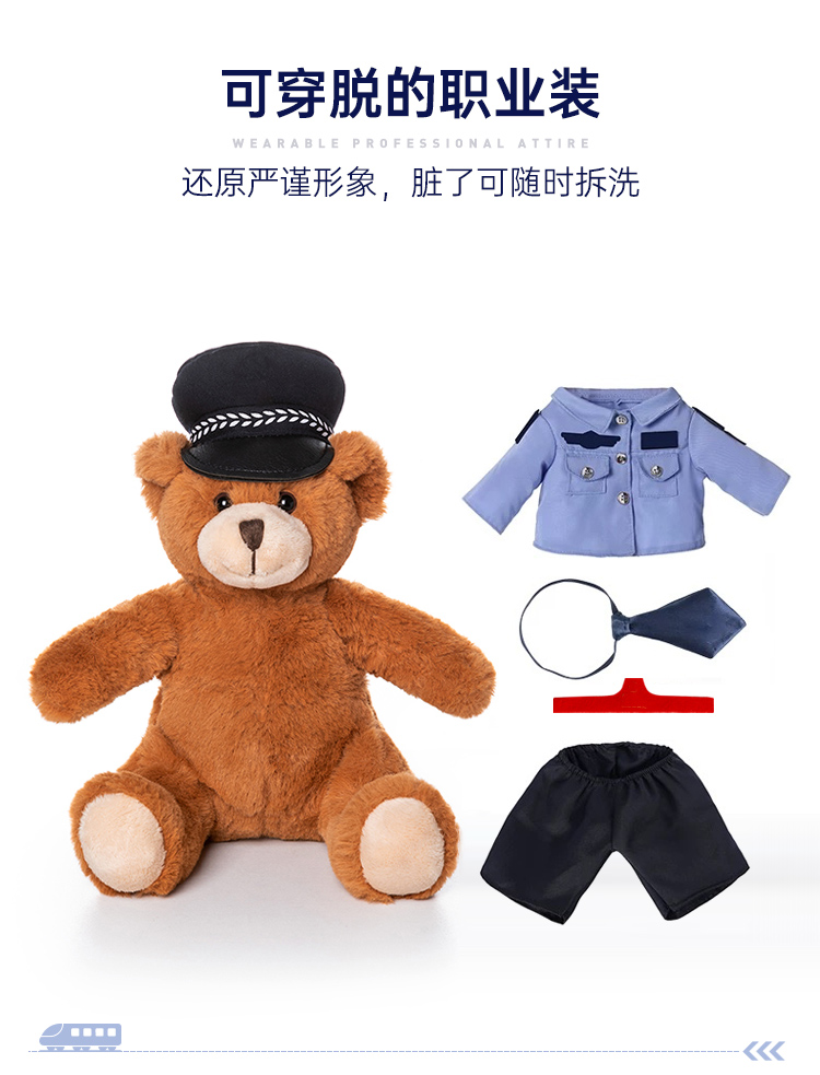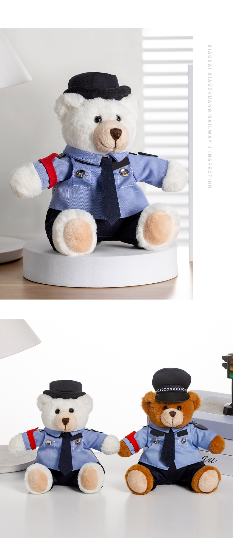 【实付满199送钥匙扣】【小白小壮铁路J察小熊】可定制毛绒公仔玩具儿童毛绒小熊玩偶布娃娃送礼礼品礼物